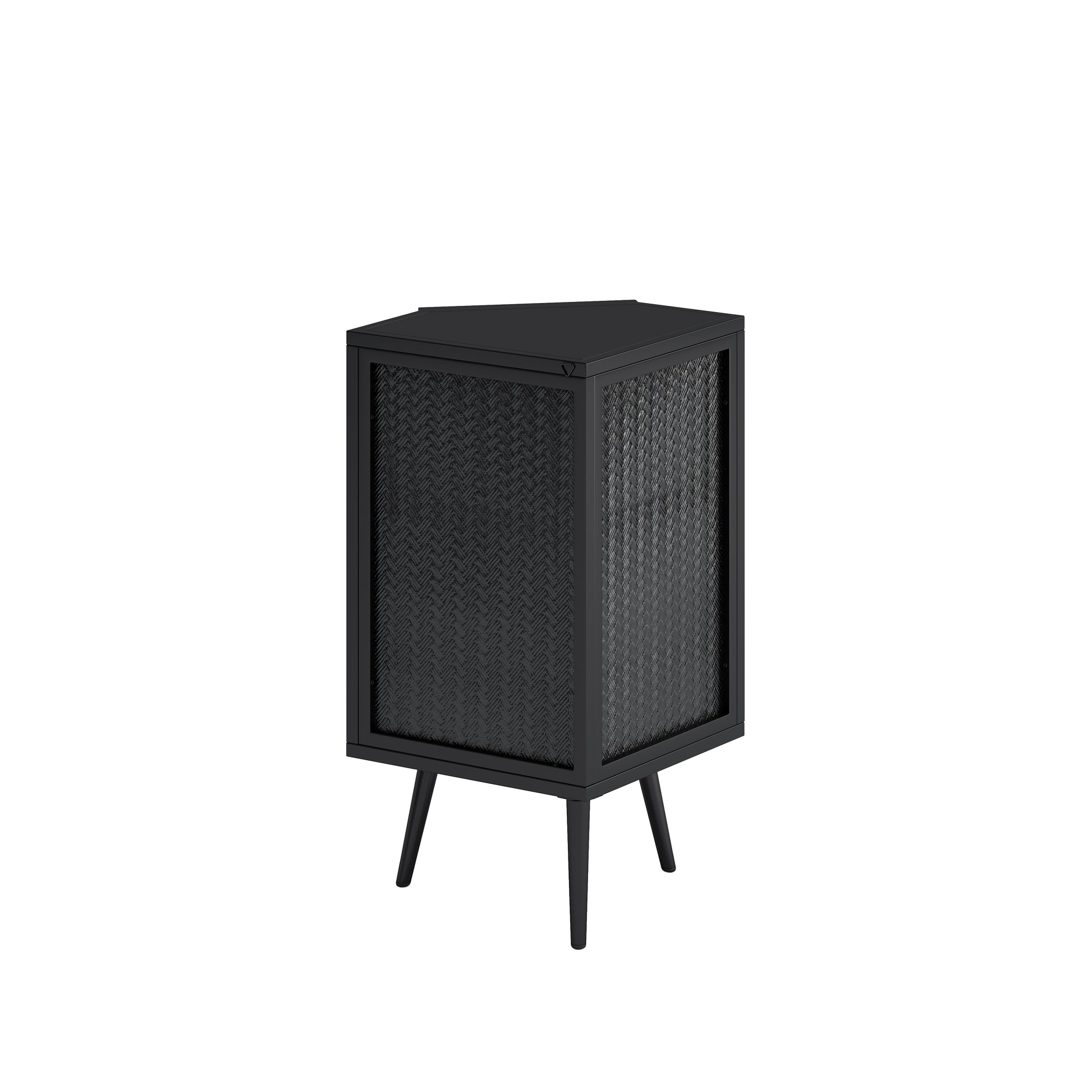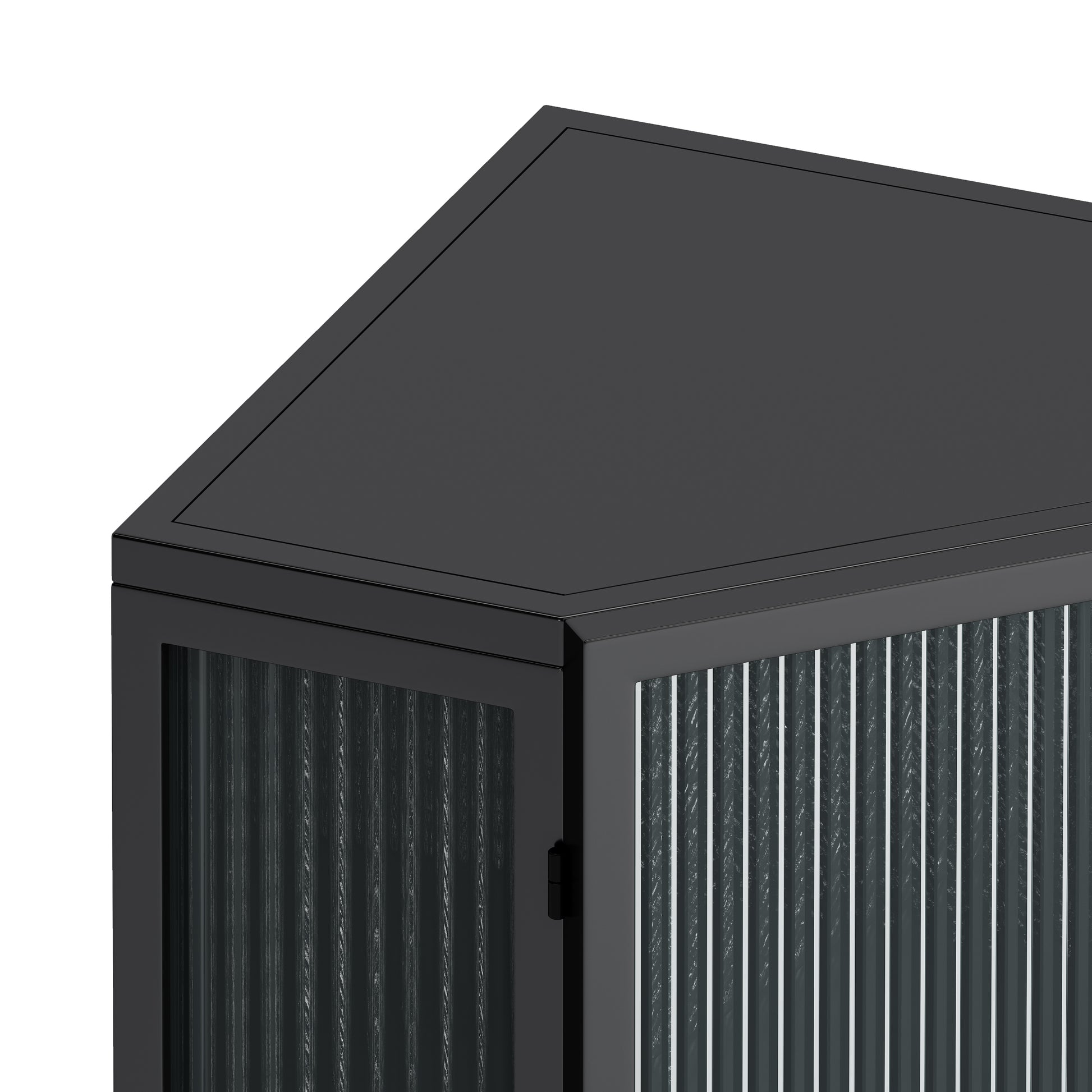 This modern corner cabinet maximizes storage while keeping your living room, bedroom, office, apartment, dorm, home, or small space organized. Designed with a triangular footprint to fit snugly into unused corners, it features a metal frame paired with tempered glass for a clean and contemporary look. The enclosed cabinet with double-layer shelving stores towels, toiletries, and daily essentials, while the smooth top surface displays plants or décor. Durable construction provides stability for long term use, making it a practical storage solution for bathrooms or multipurpose rooms where space efficiency matters.