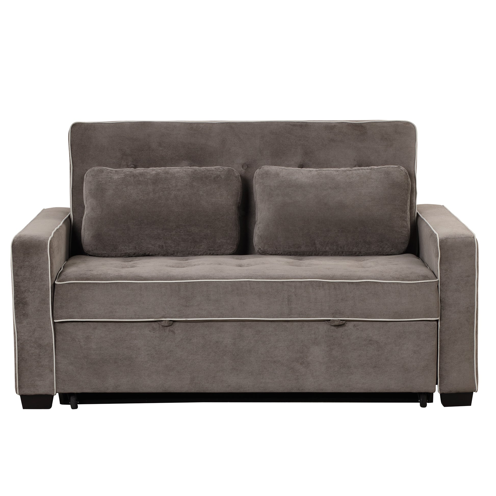Modern Upholstered Sleeper Bed Sofa with Dual USB Charging, Adjustable Backrest, Brown Gray Velvet, 61.4 Inches