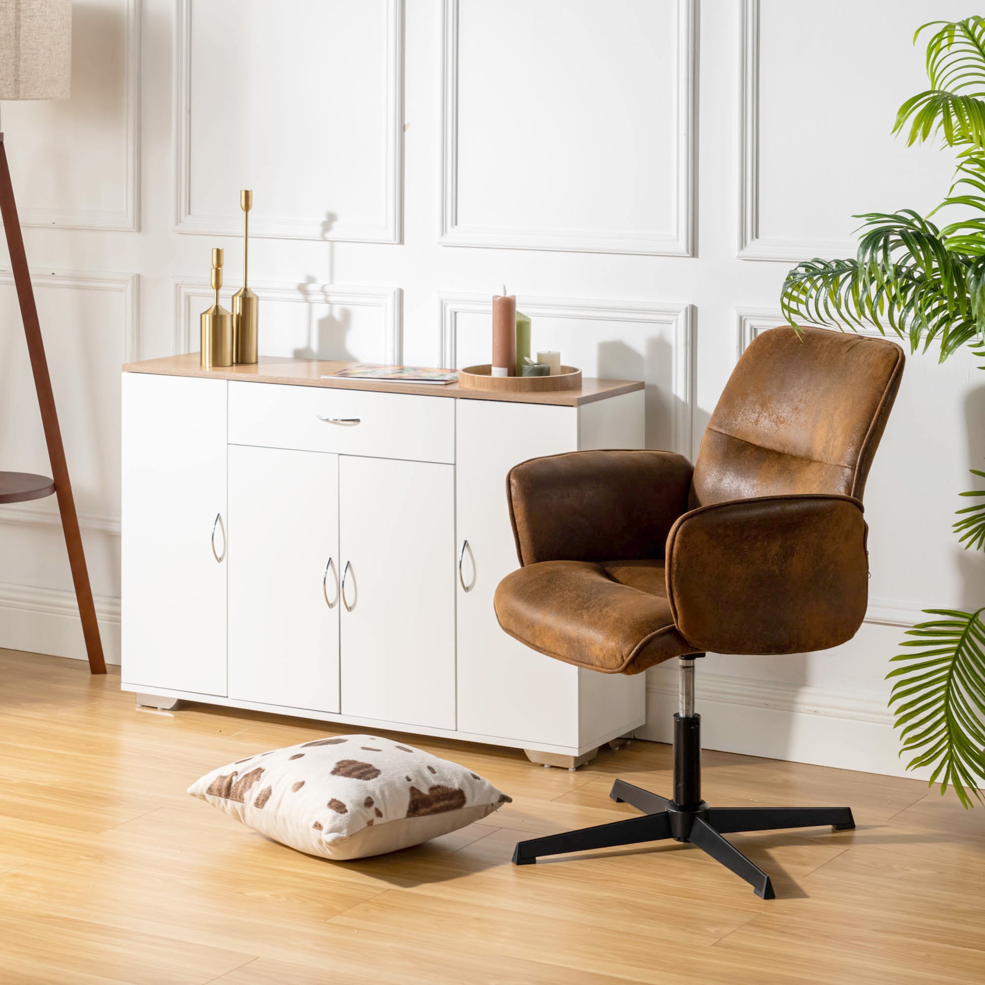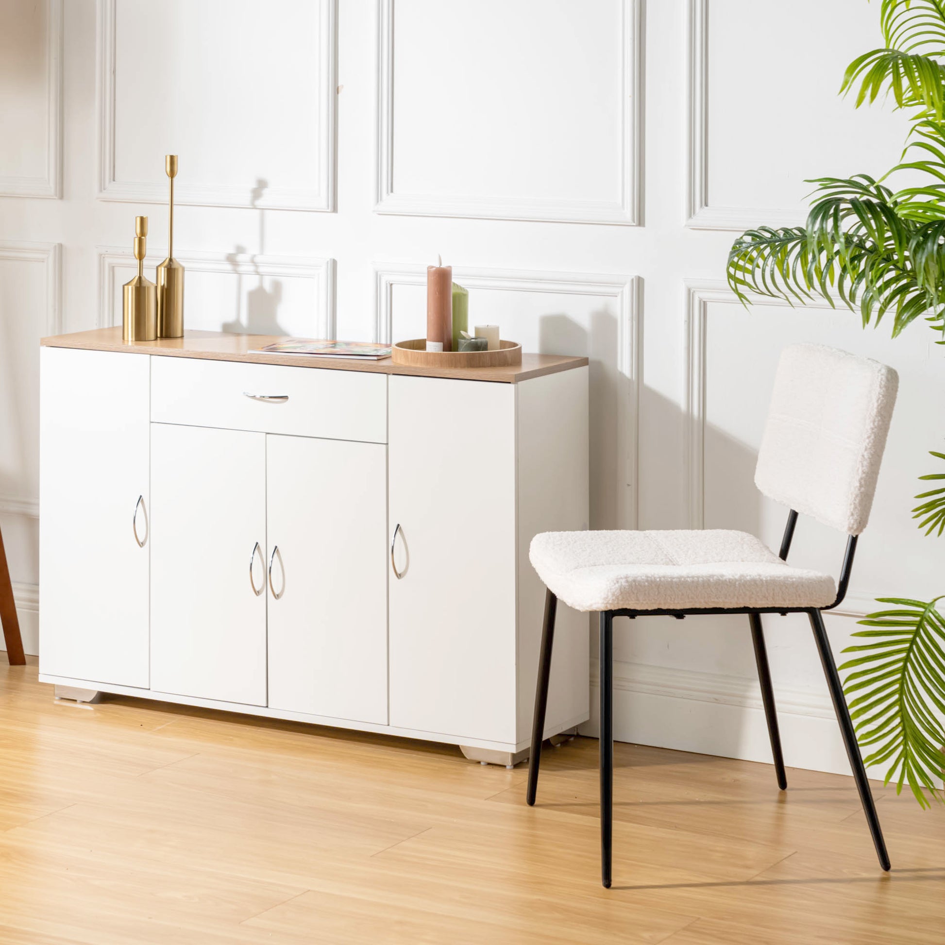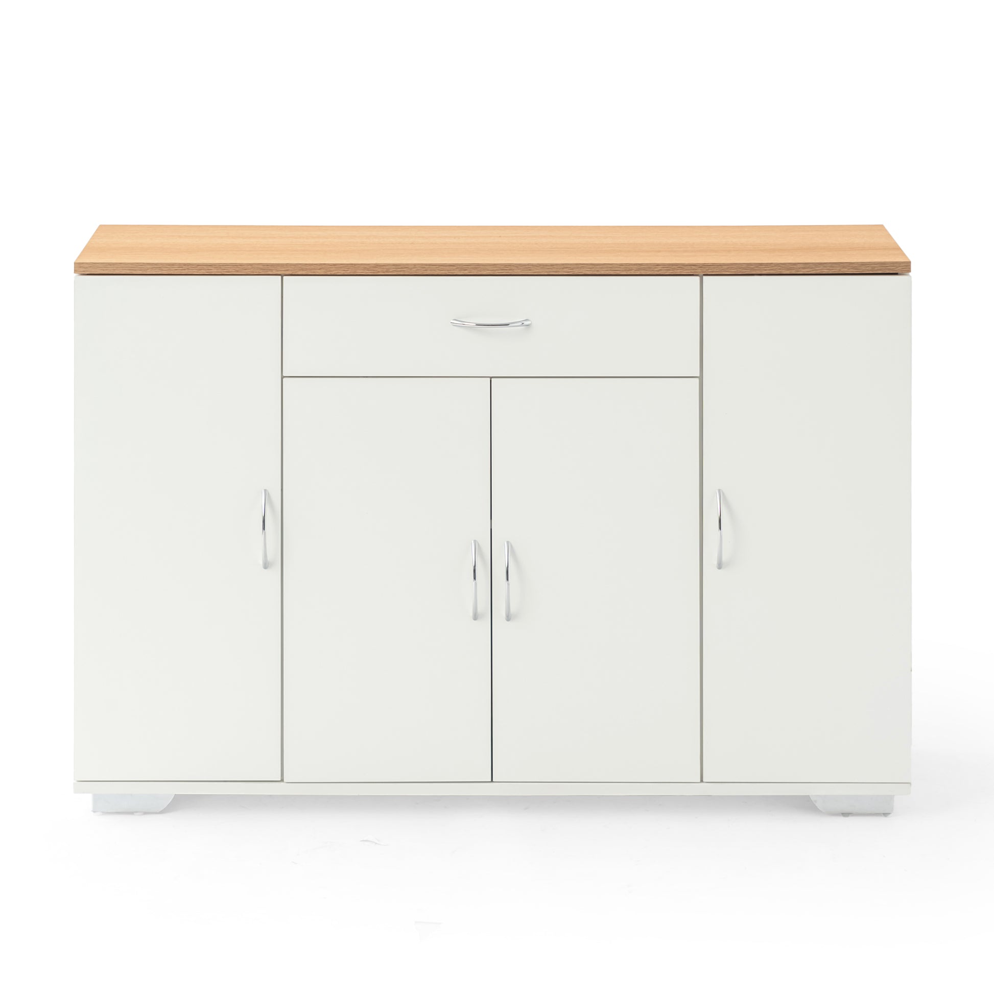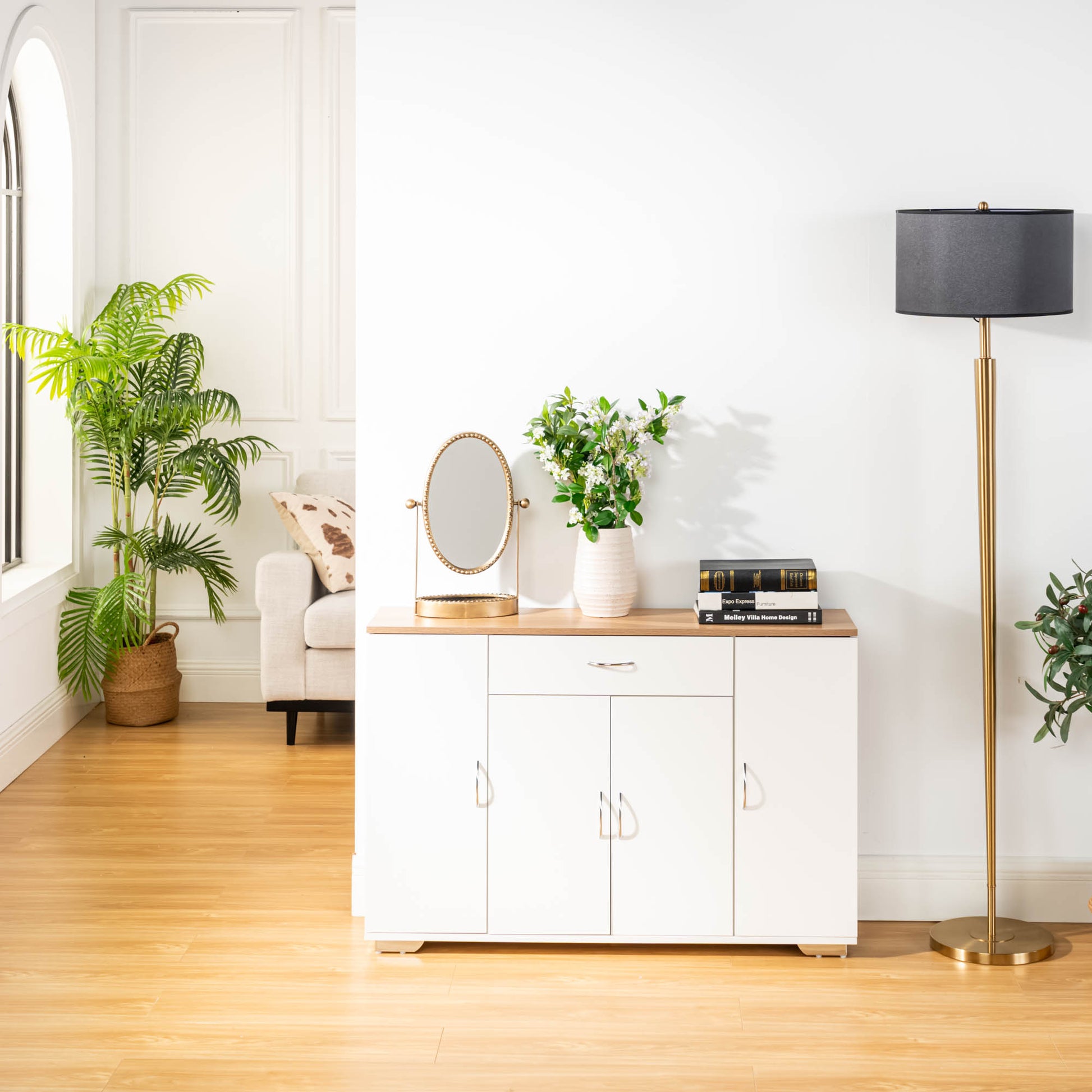 BAFFI White Sideboard Buffet Cabinet with Drawer and 4 Doors, Oak Look Top, Living Room Dining Storage