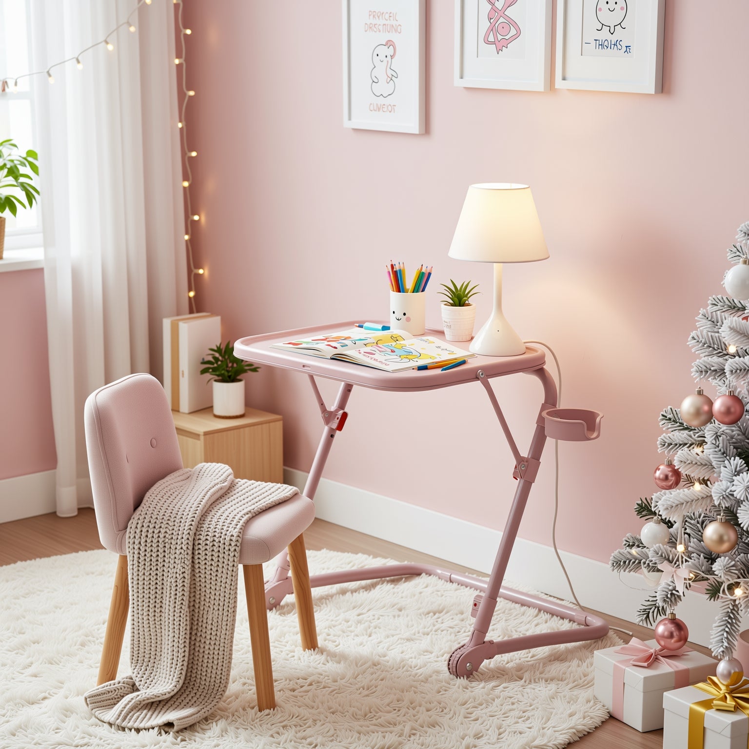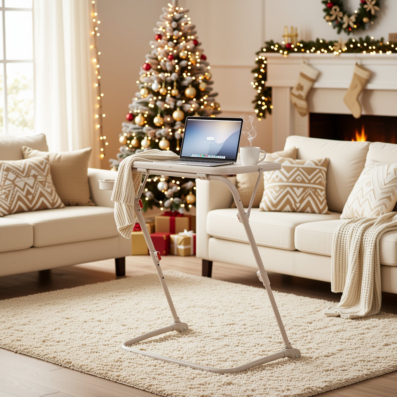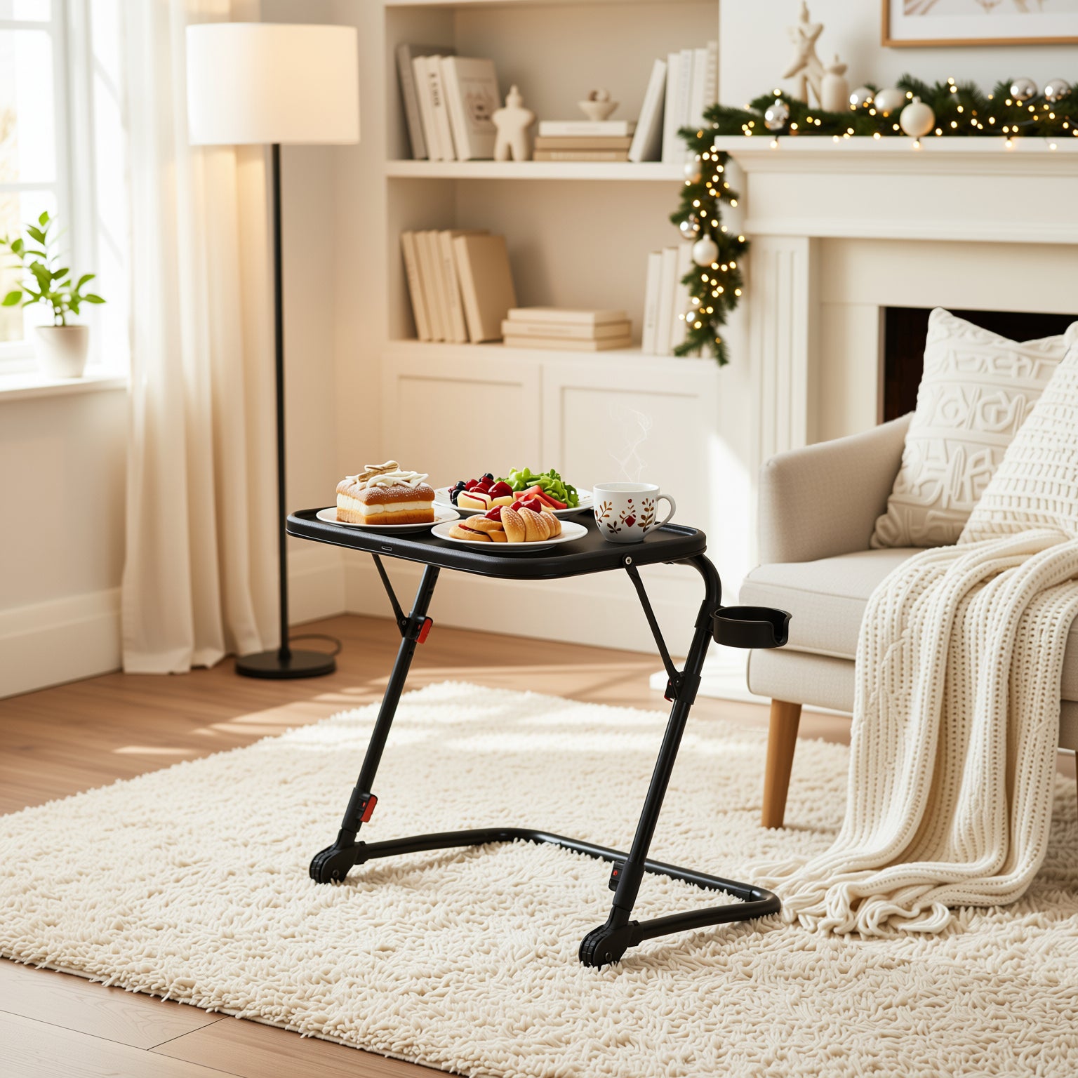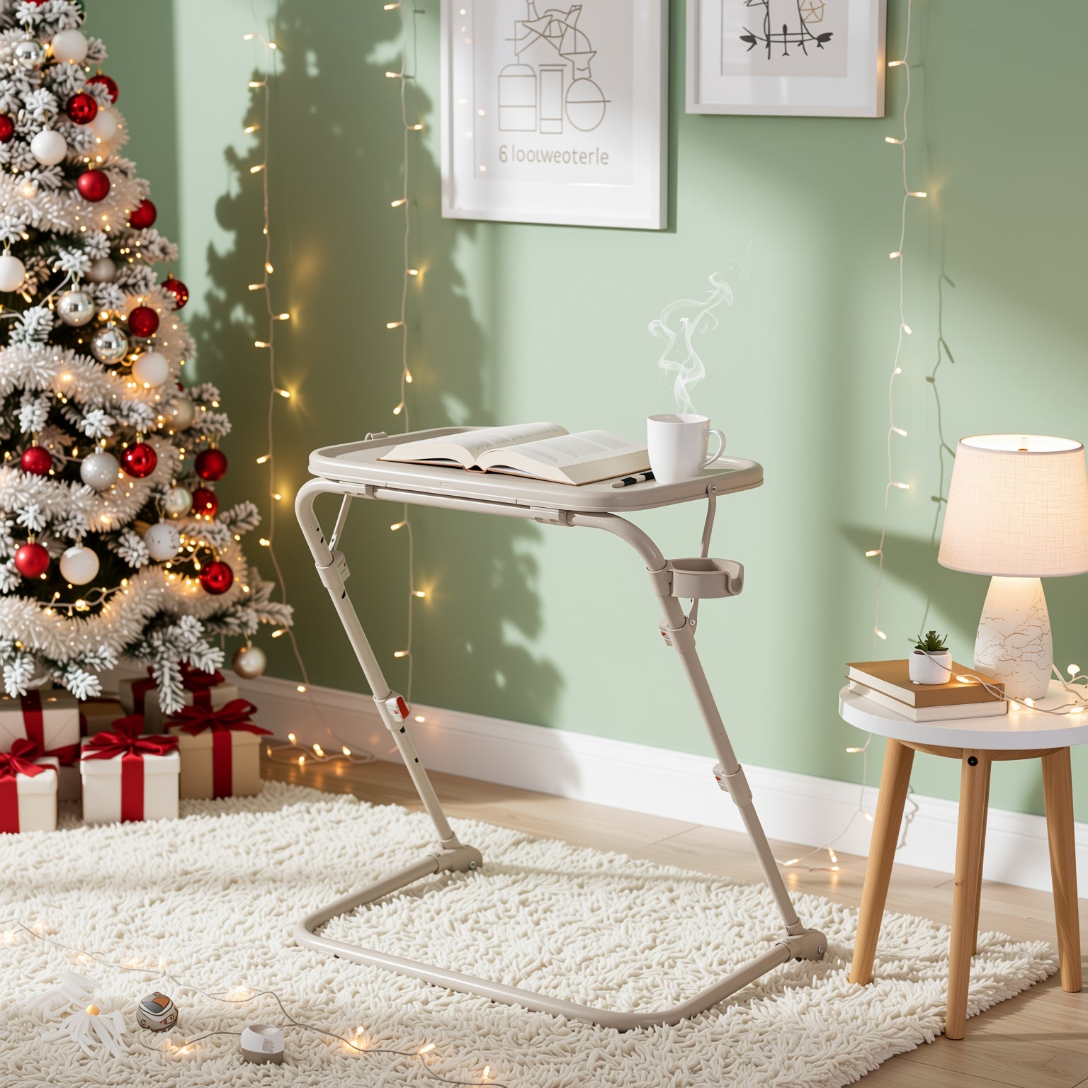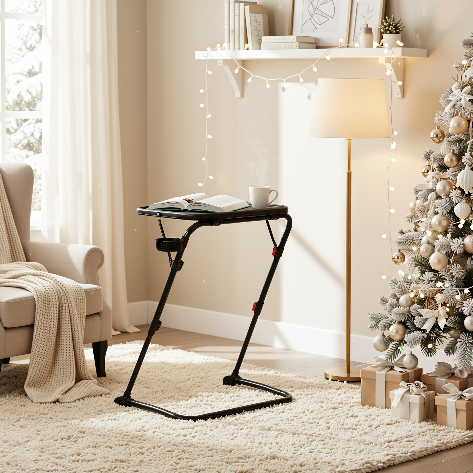 Compact yet versatile, this foldable adjustable tray table is your go-to solution for working, snacking, or crafting anywhere in the home. Lightweight, height-adjustable, and equipped with a built-in cup holder.