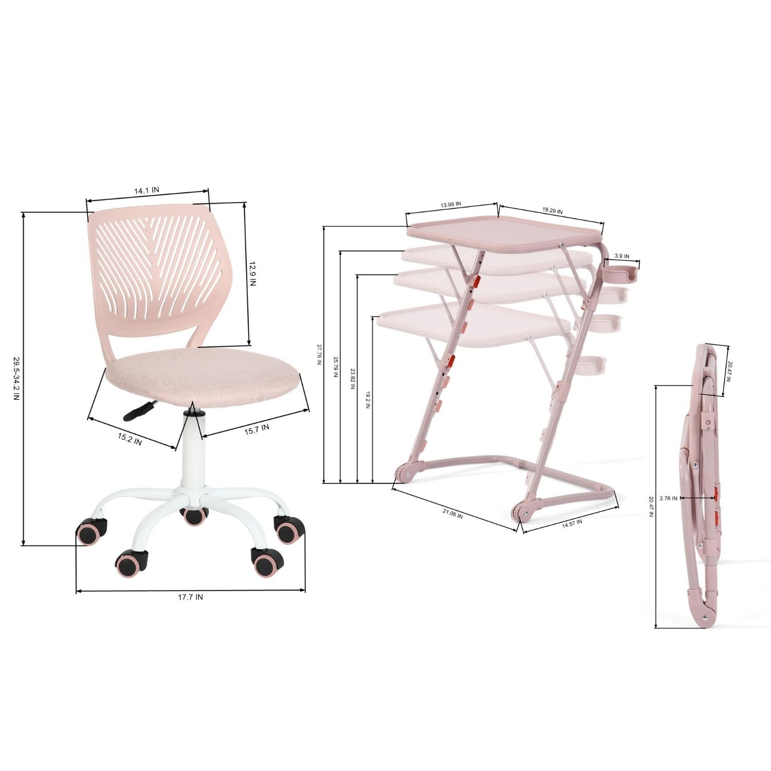 Brighten your child’s study space with this functional pink table and chair set — featuring an adjustable TV tray table and ergonomic swivel chair designed for comfort, focus, and flexibility.
