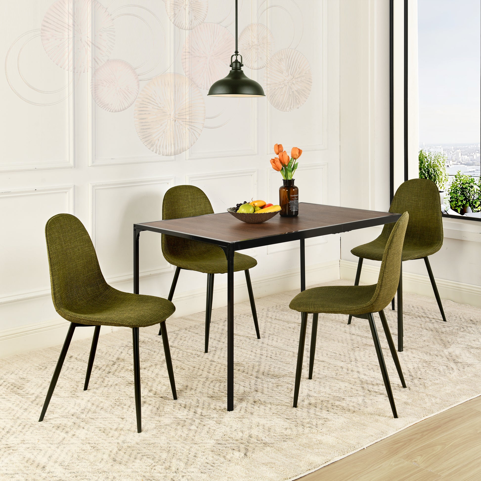 This stylish dining chair features a soft, fabric seat with a sleek black metal frame. Its modern design offers both comfort and durability, making it the perfect addition to your dining room or kitchen. With a weight capacity of 250 lbs, this chair provides long-lasting support for casual dining or extra seating.