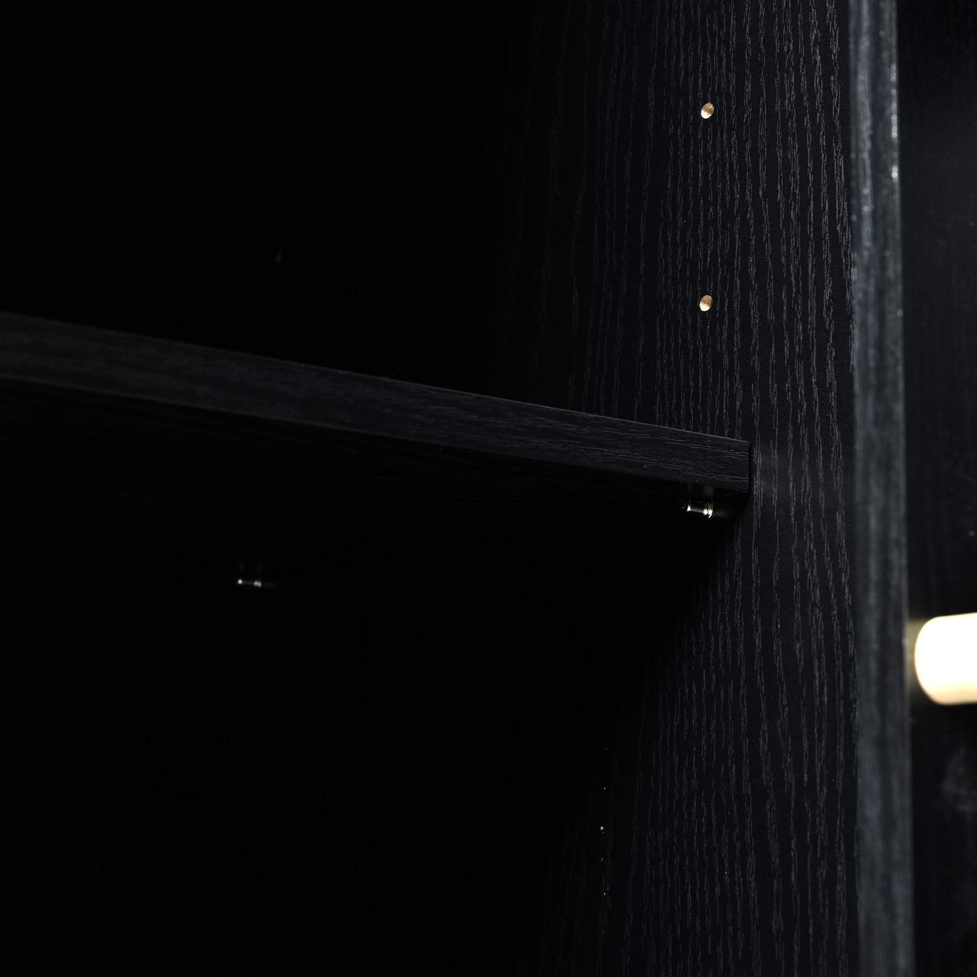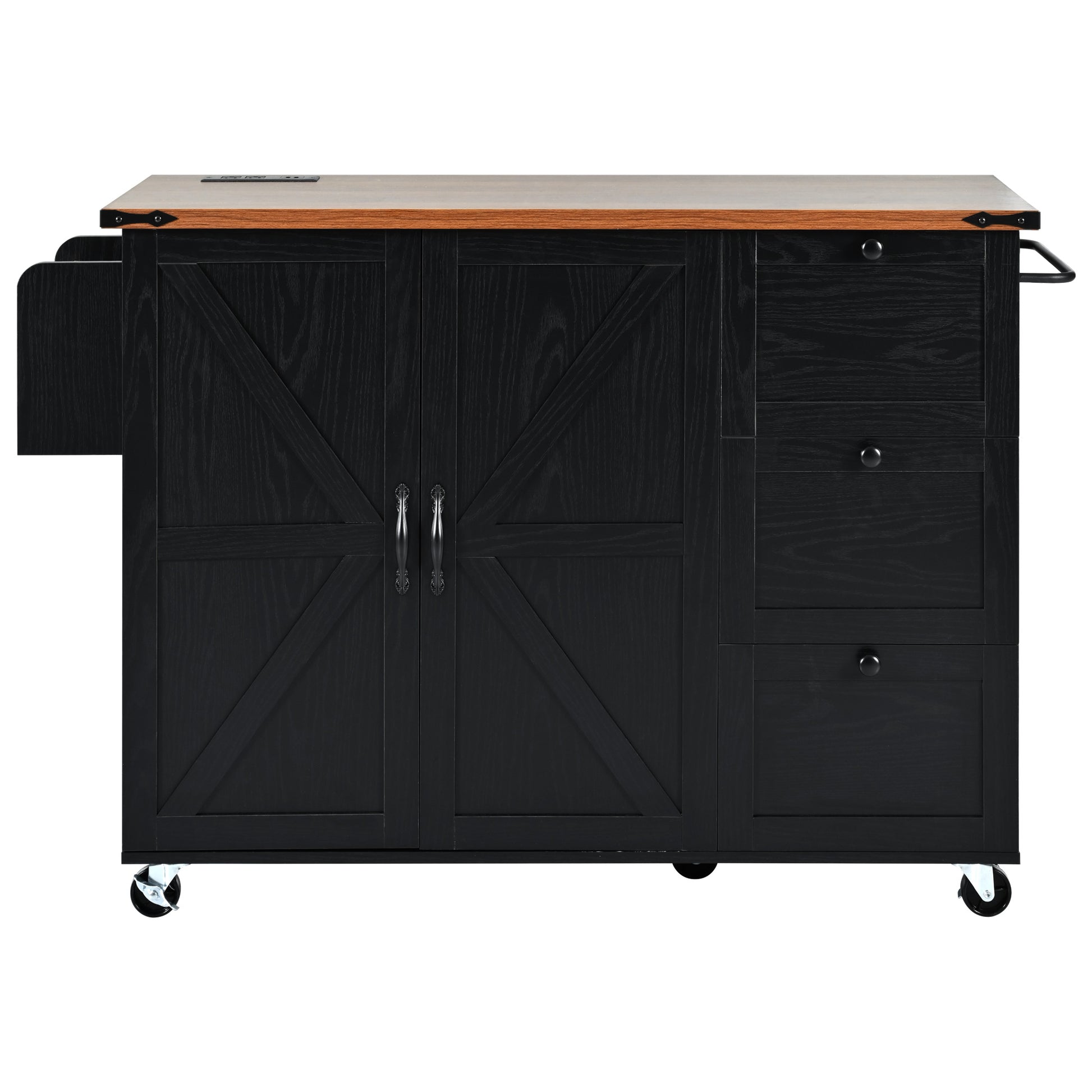 54.5" Farmhouse Kitchen Island with Power Outlet, Kitchen Storage Island with Internal Storage Rack, Drop Leaf, Spice Rack, Rolling Kitchen Cart on Wheels, for Home, Kitchen and Dining Room,Black
