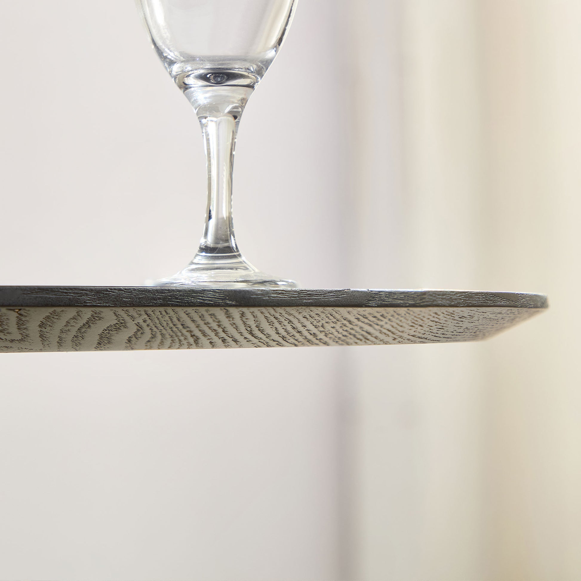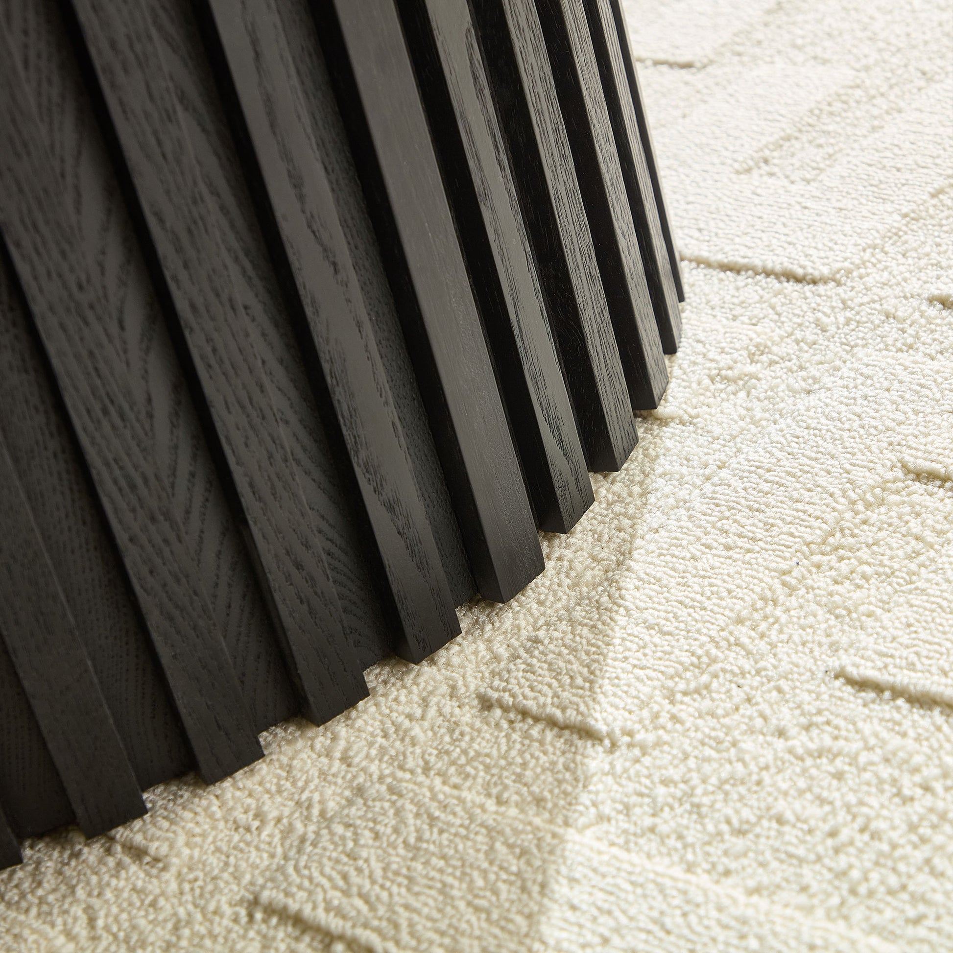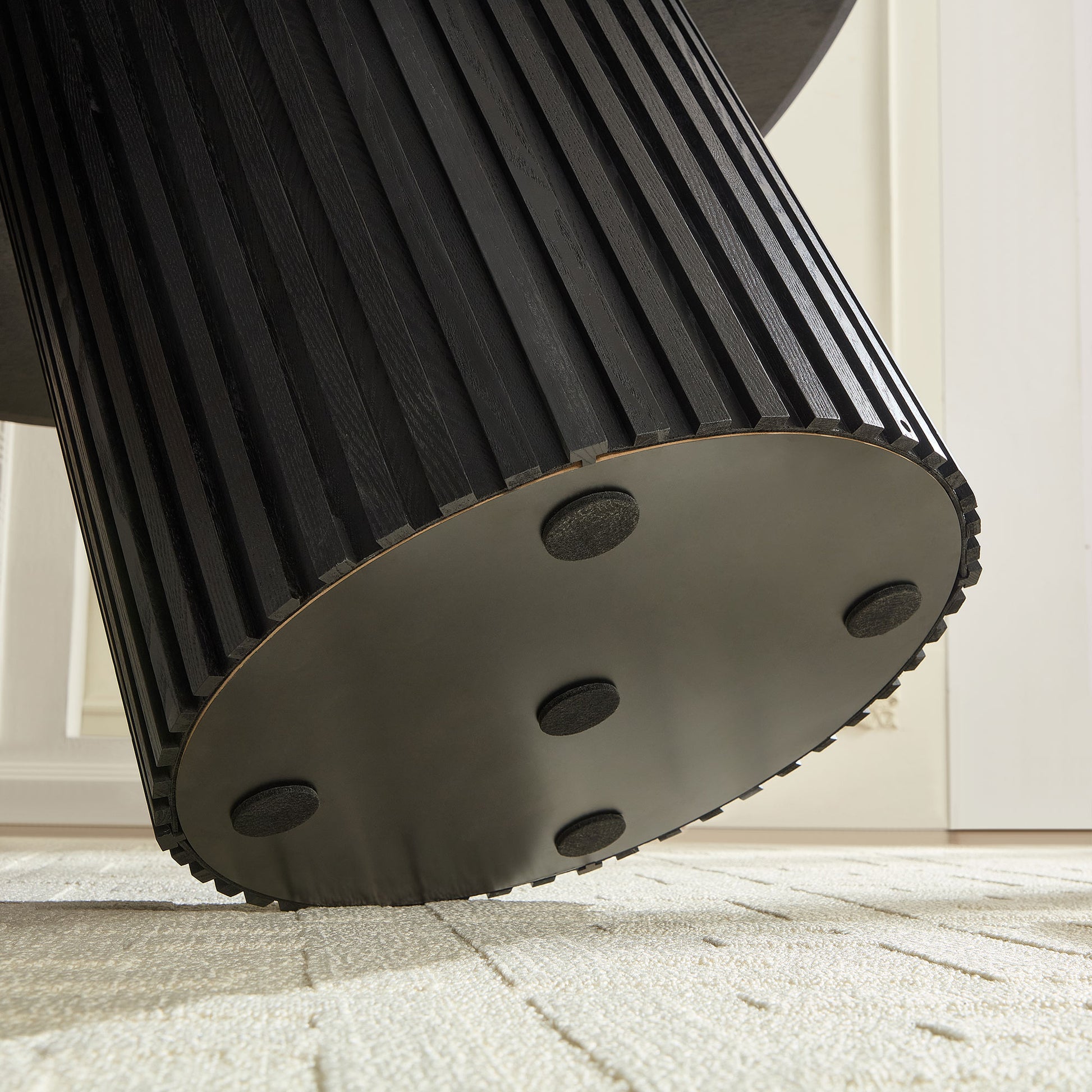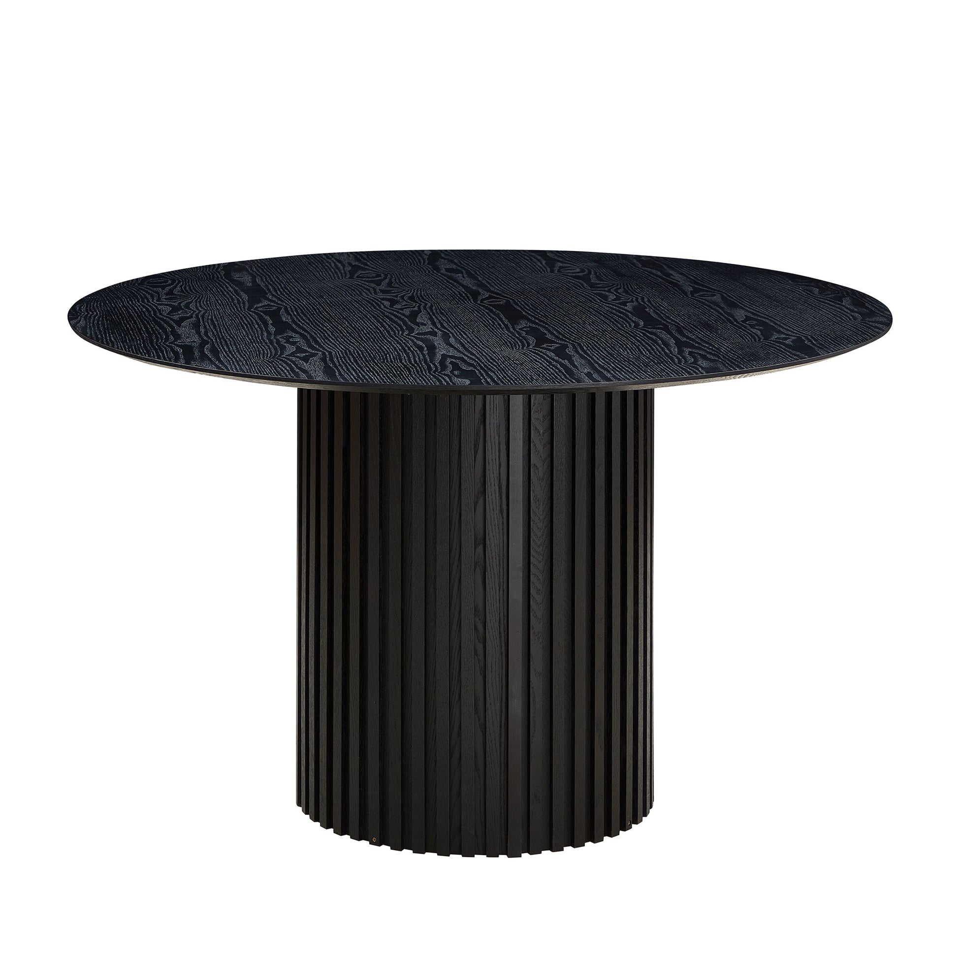 47.24" round MDF dining table with black oak finish, mid-century modern design, and fluted cylindrical base. A versatile dining solution for 4–8 people, perfect for kitchens, dining rooms, or small spaces.