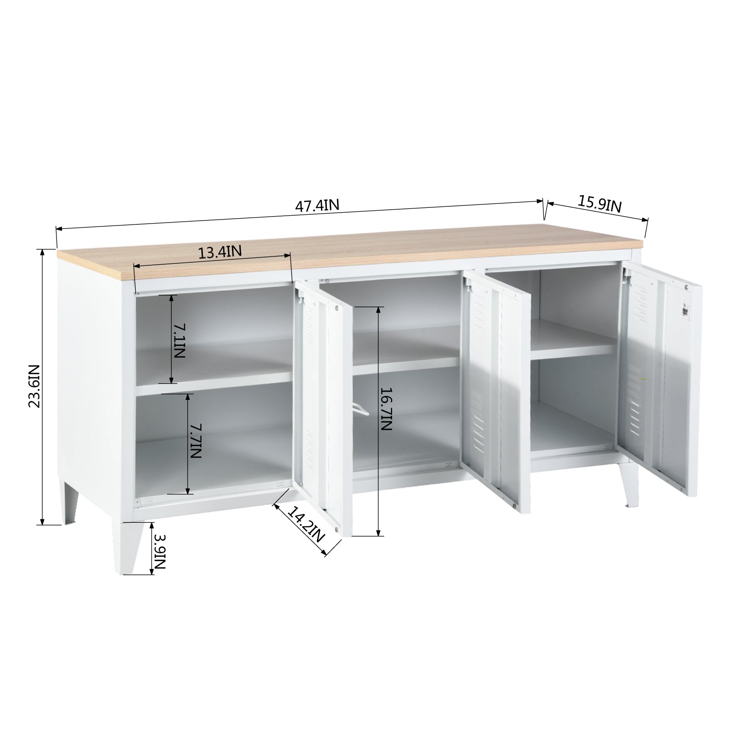 A stylish metal storage bench with a natural wood-look top, perfect for entryways, mudrooms, or modern industrial interiors.