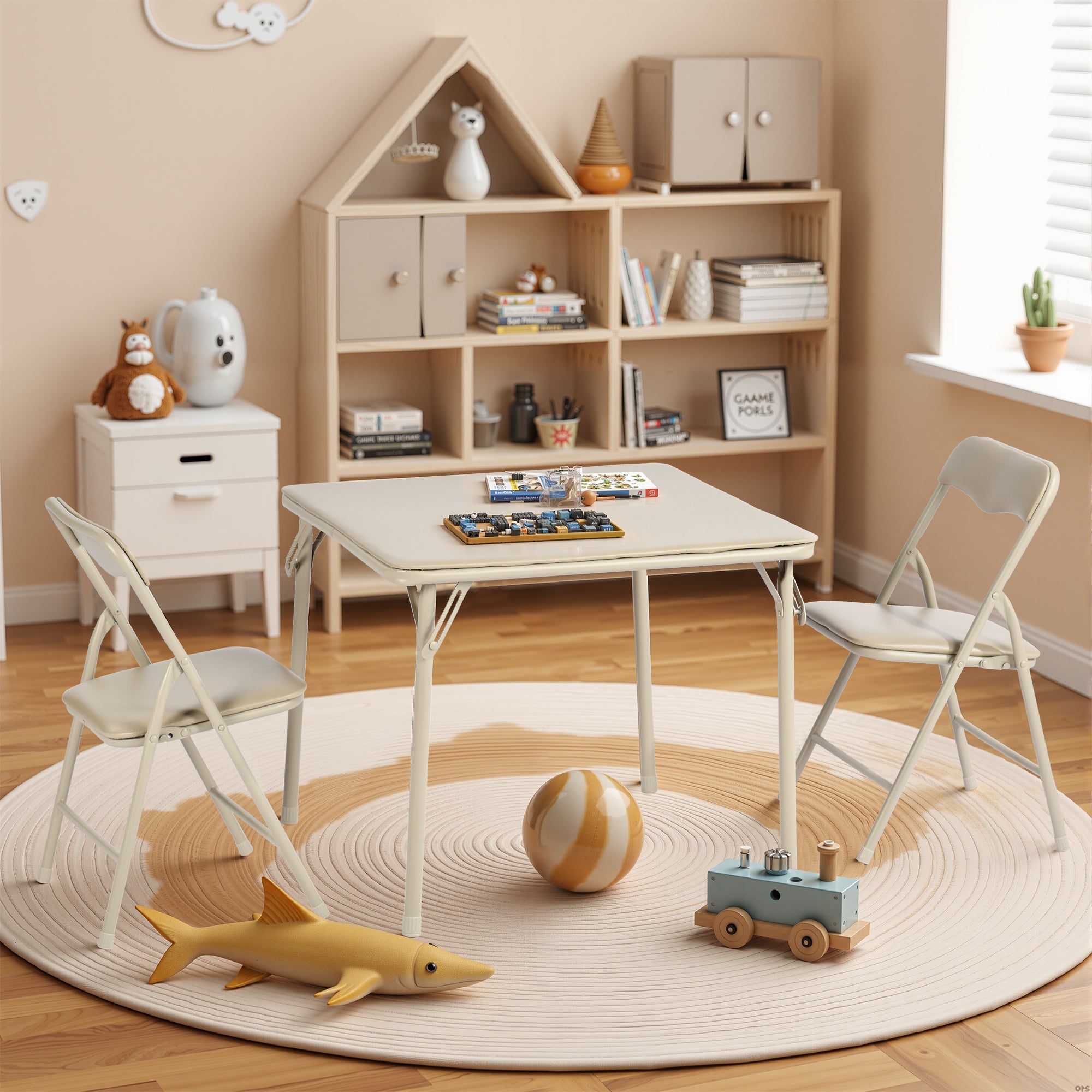 This foldable table and chair set available in 3 sleek solid colors styles - black, camel, and grey; is ideal for modern playrooms, study corners, or family events. Designed with safety and space-saving in mind, the sturdy structure and neutral tones make it a perfect fit for minimalist or contemporary interiors.