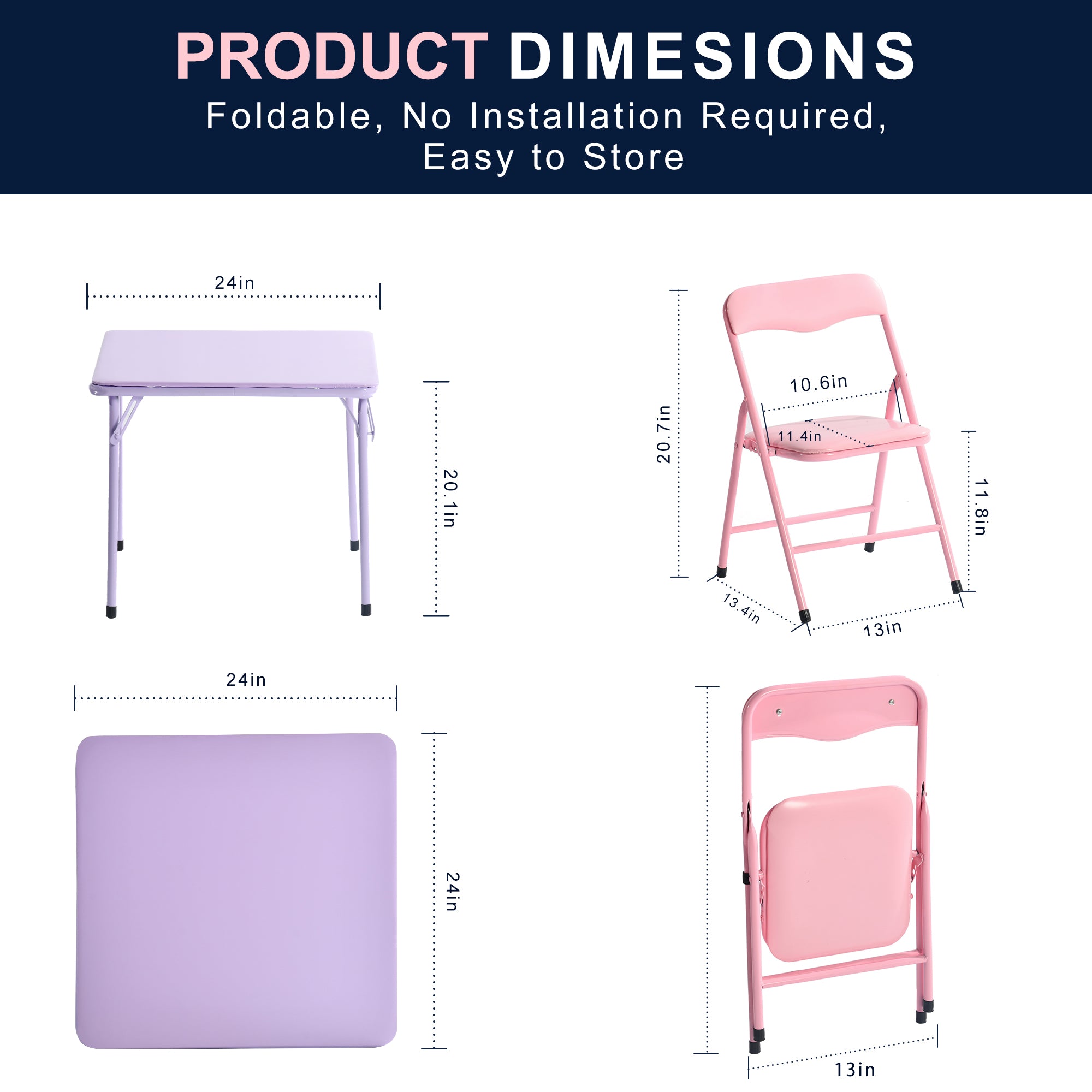 Page Solid Color Kids Folding Table and Chair Set, Set of 3 or 5