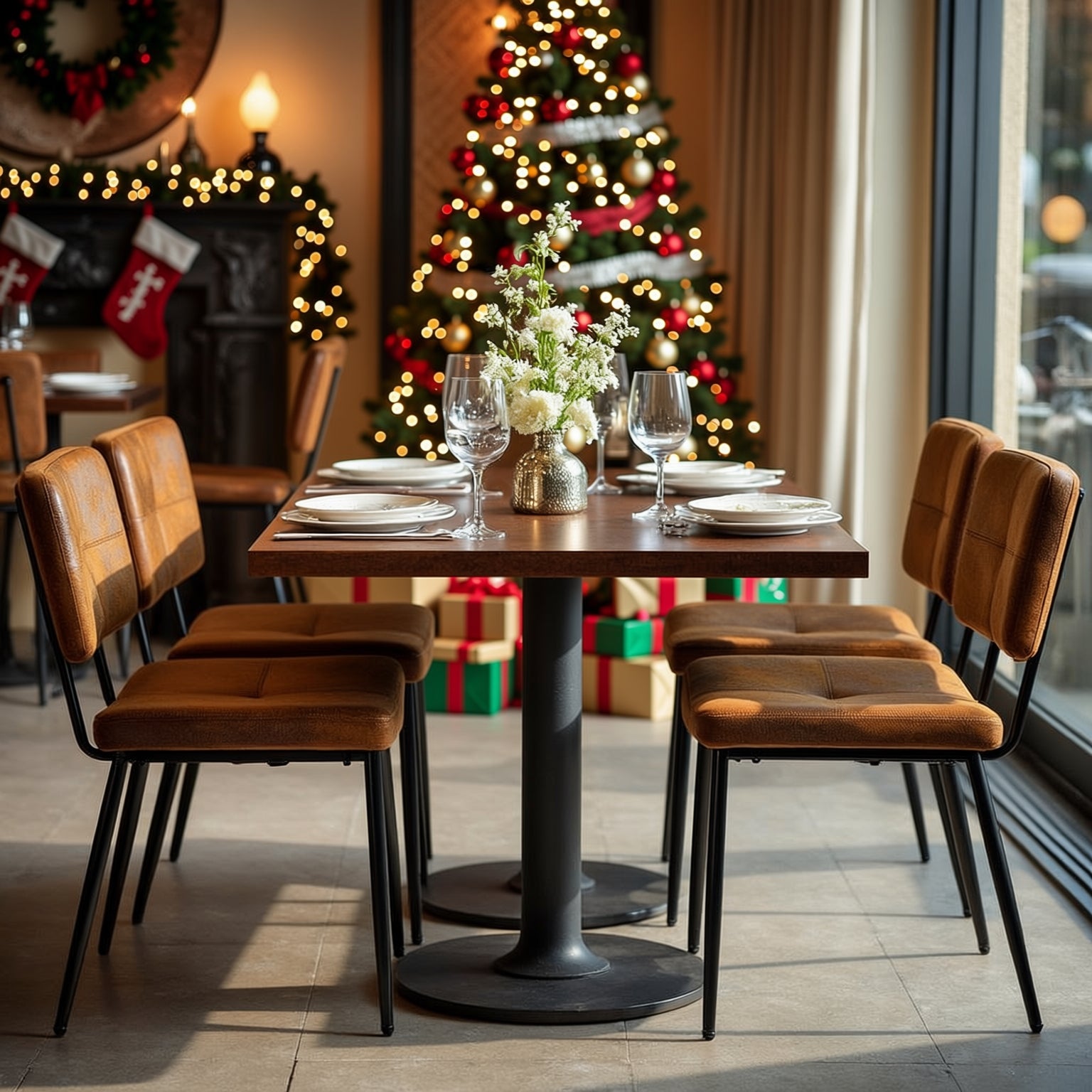 Pomona dining chair Set blend ergonomic comfort with industrial charm. Upholstered in beige or suede brown, perfect for modern dining rooms, home offices, or cafés.