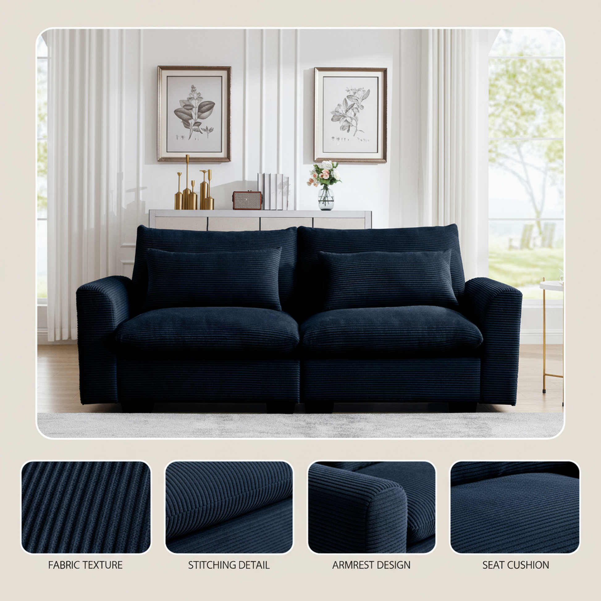 1-Pack Blue Modern Sofa 2 Seater, Contemporary Corduroy Upholstery, Ergonomic Armrests, Flexible Modular Design for Apartment Living Room, Easy Assembly, Ultimate Comfort, Durable Space-Saving Furniture by HomyCasa