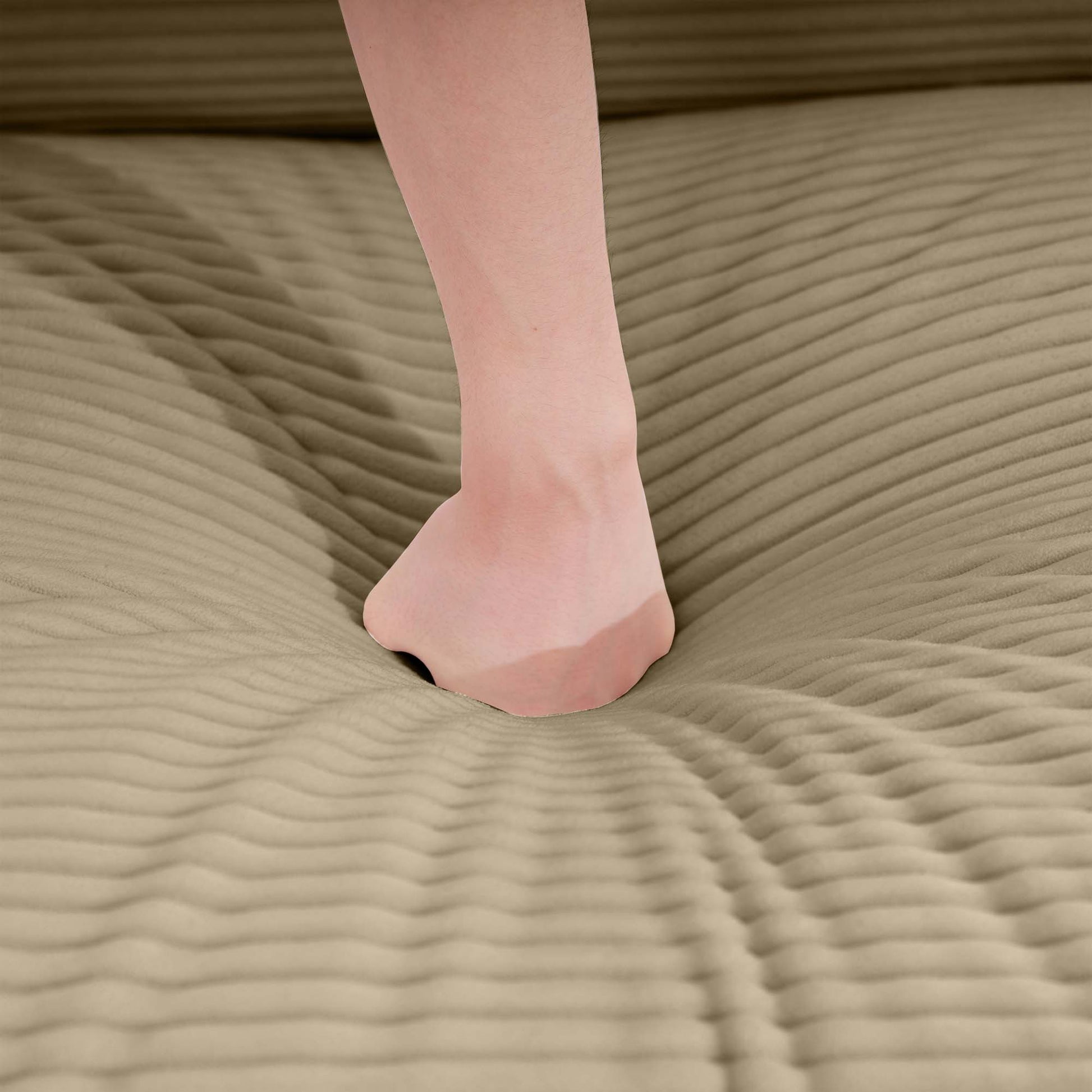 - Upholstered in soft, durable tan corduroy for year-round comfort