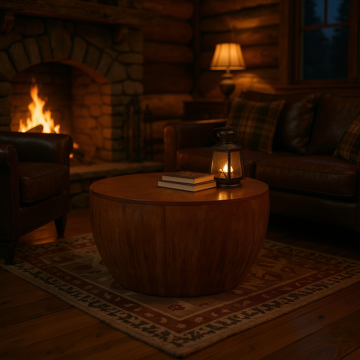 Vintage barrel coffee table in solid fir with hidden storage. 31.5 in round top and 17.7 in height. Oil finish brings warm grain and simple care for daily use in living rooms.