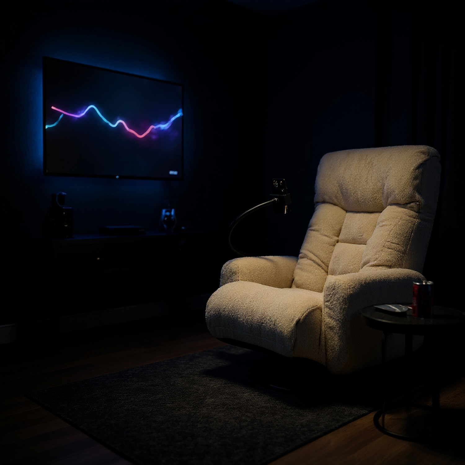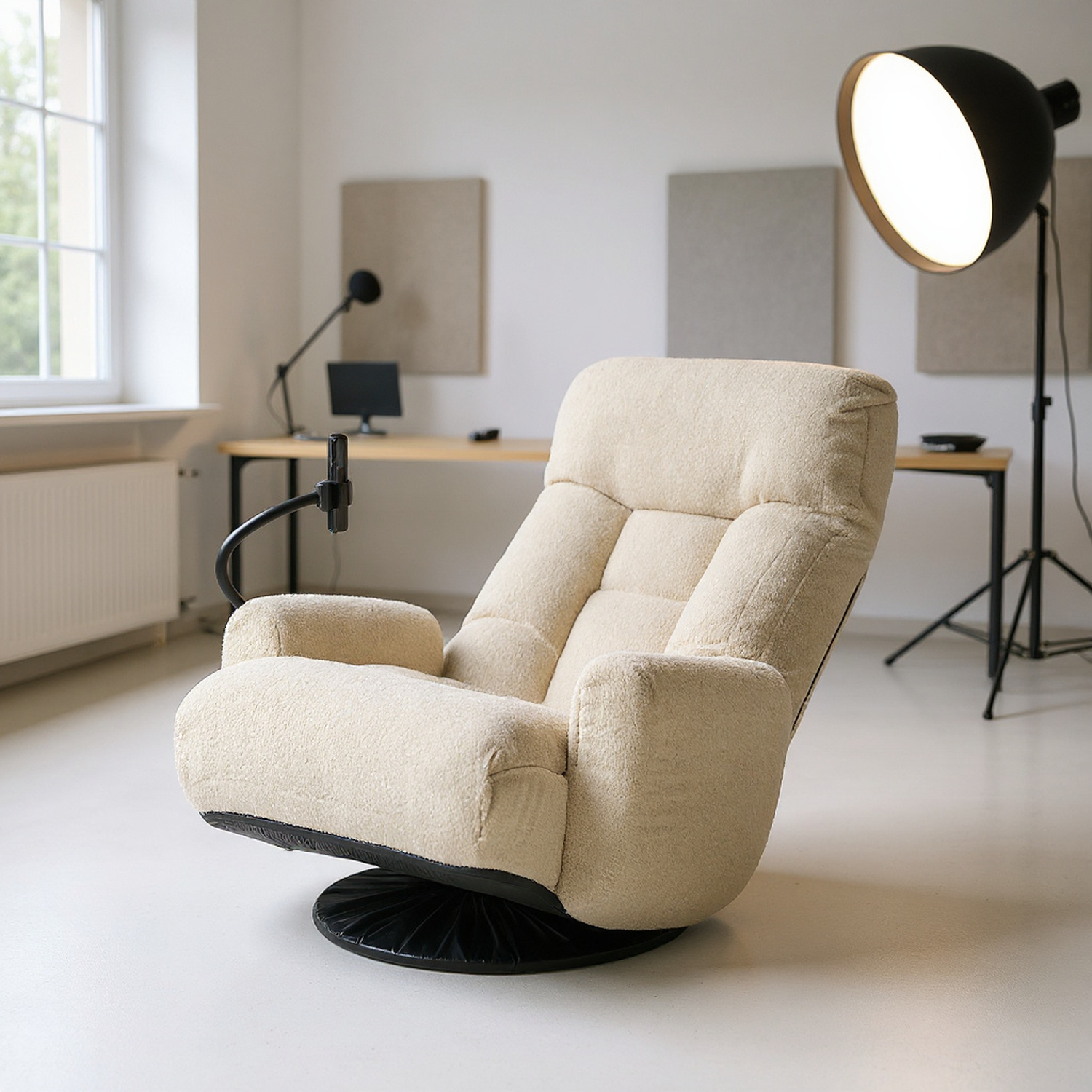 Swivel lounge chair with five angle recline, 360 degree rotation and phone holder. Plush cushioning with spring seat and a sturdy metal frame for everyday relaxing.