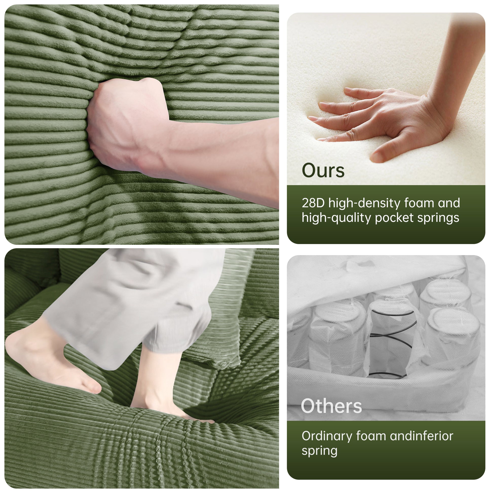 The Albany oversized modular armchair features plush, pet-friendly green corduroy, extra-wide armrests, and deep, thick cushioning for cloud-like comfort. Its flexible modular design and sturdy wood frame make it a standout piece for any modern living space.