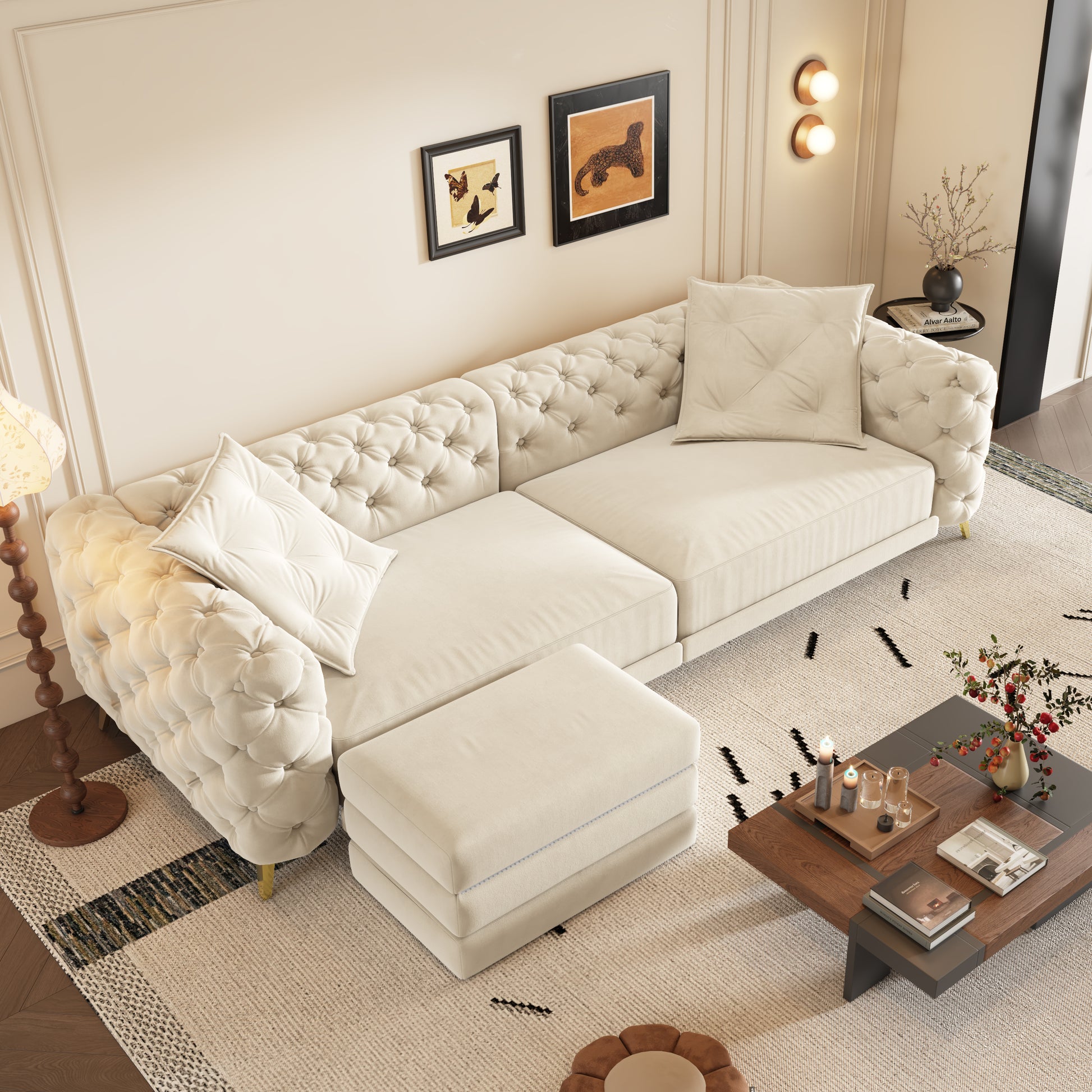 Allentown 98" Velvet Button Tufted 4-Seater Sleeper Sofa Bed with Movable Ottoman