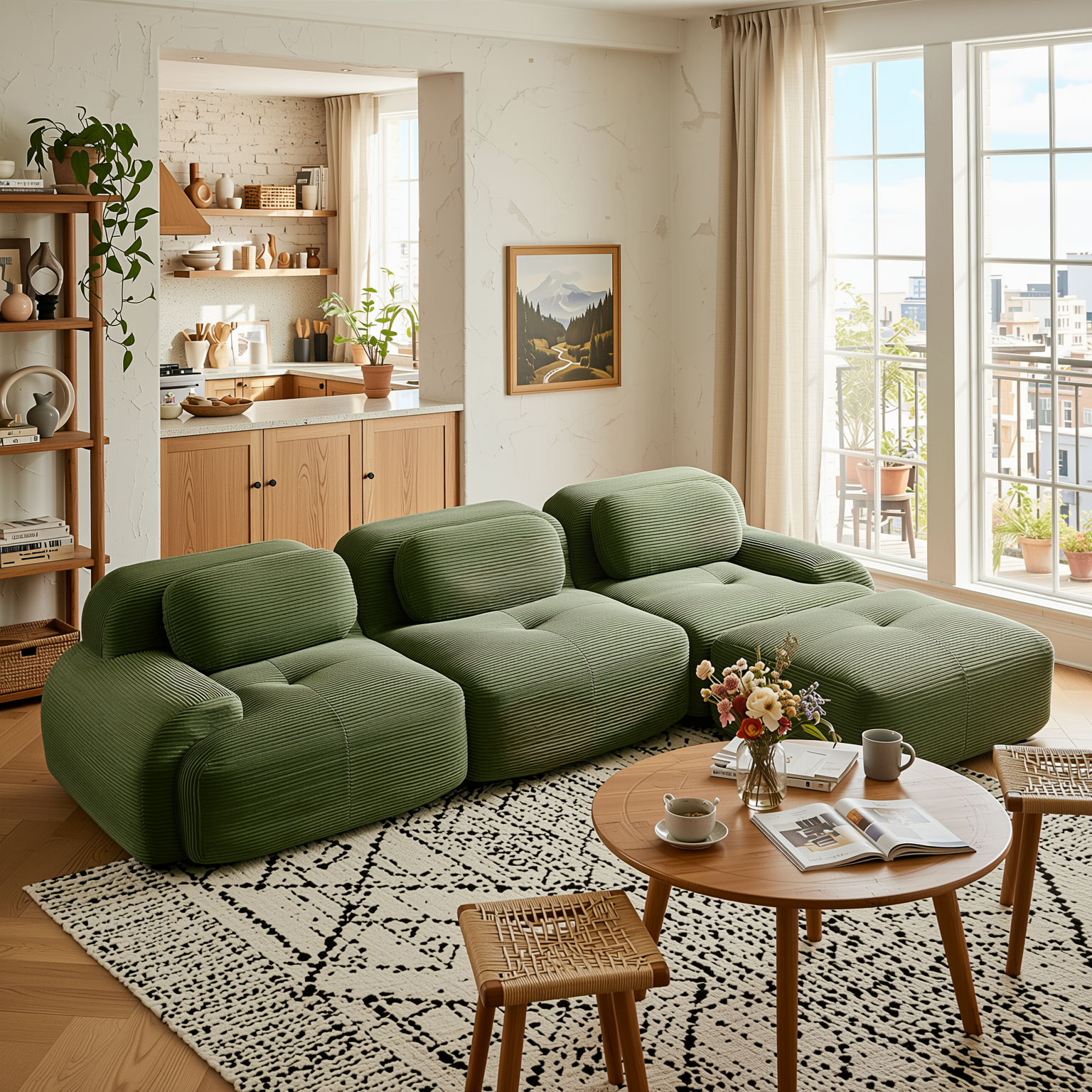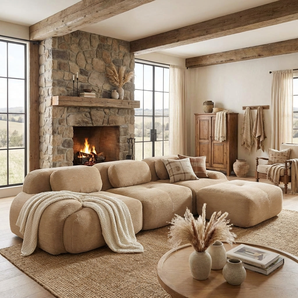 Anchorage 116 inch modular corduroy cloud sectional sofa features deep seats soft ribbed fabric and a flexible L shaped layout with ottoman delivering relaxed comfort for modern living rooms and apartments