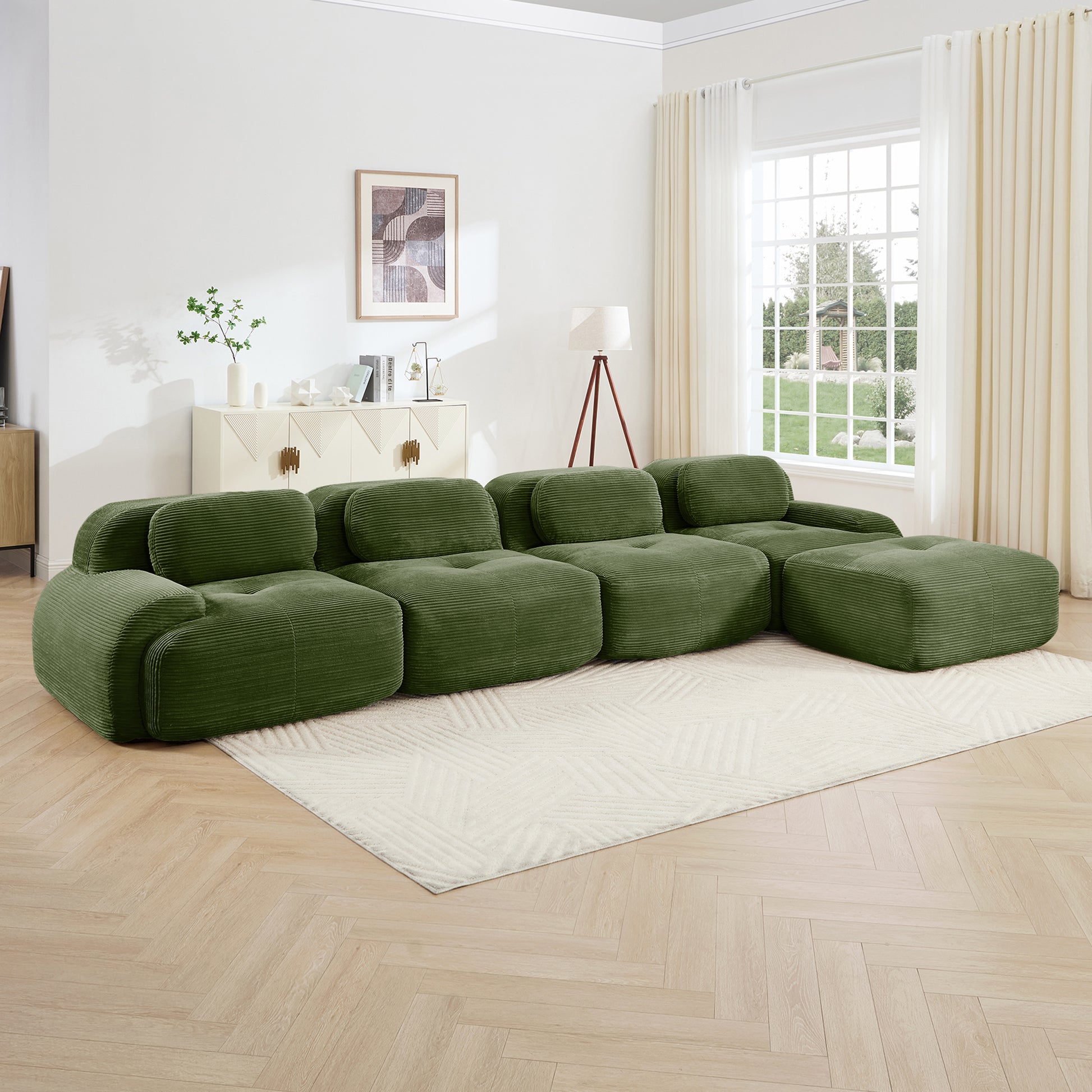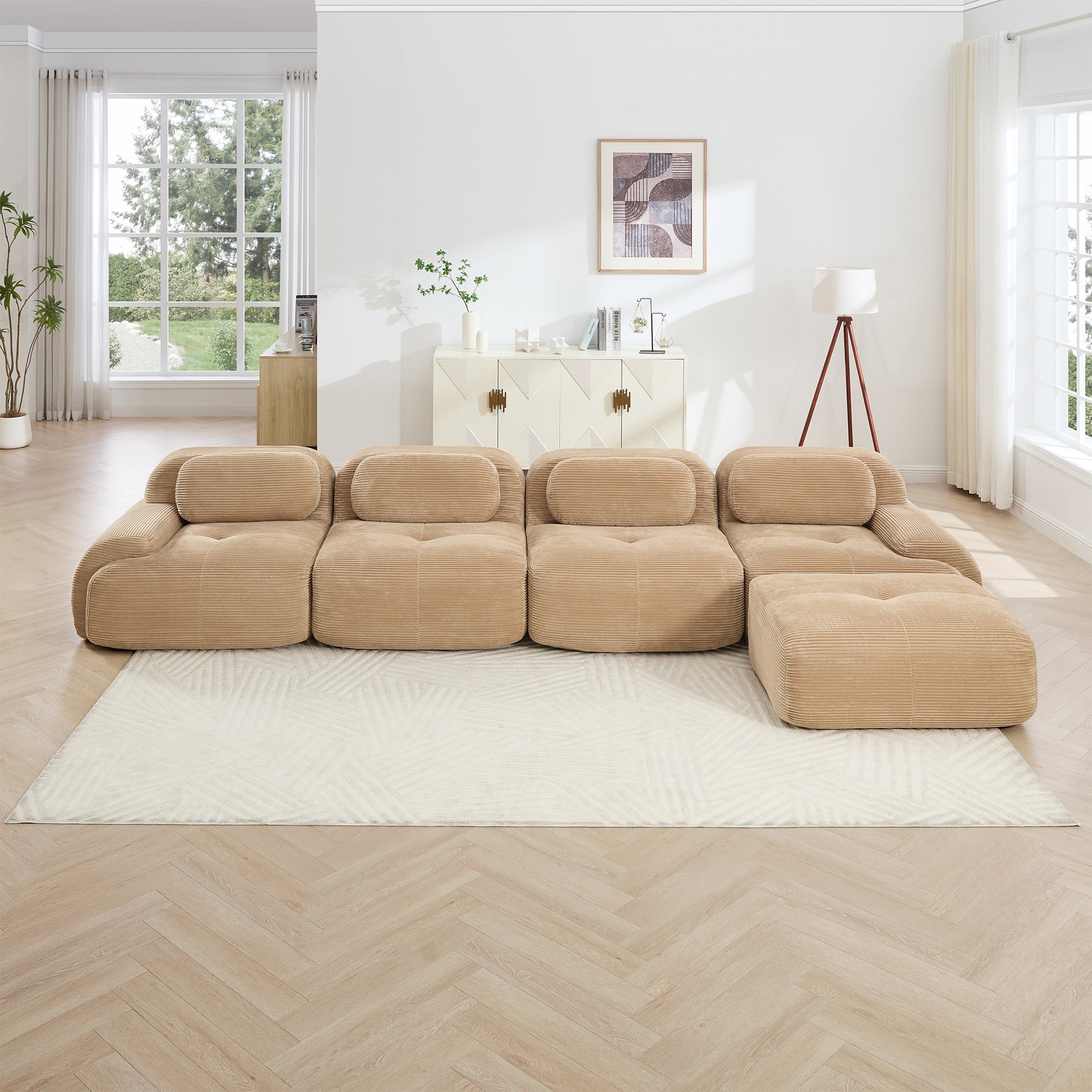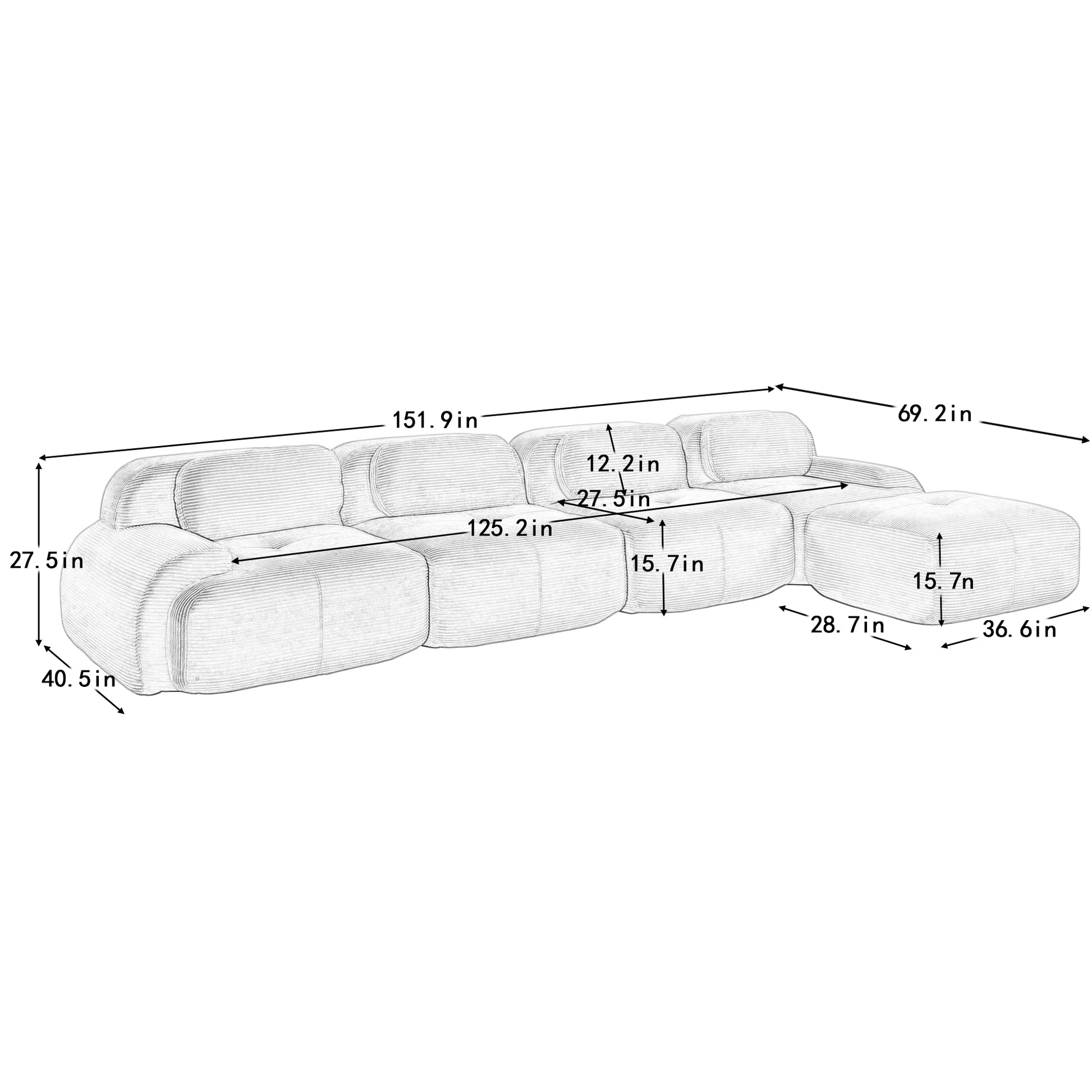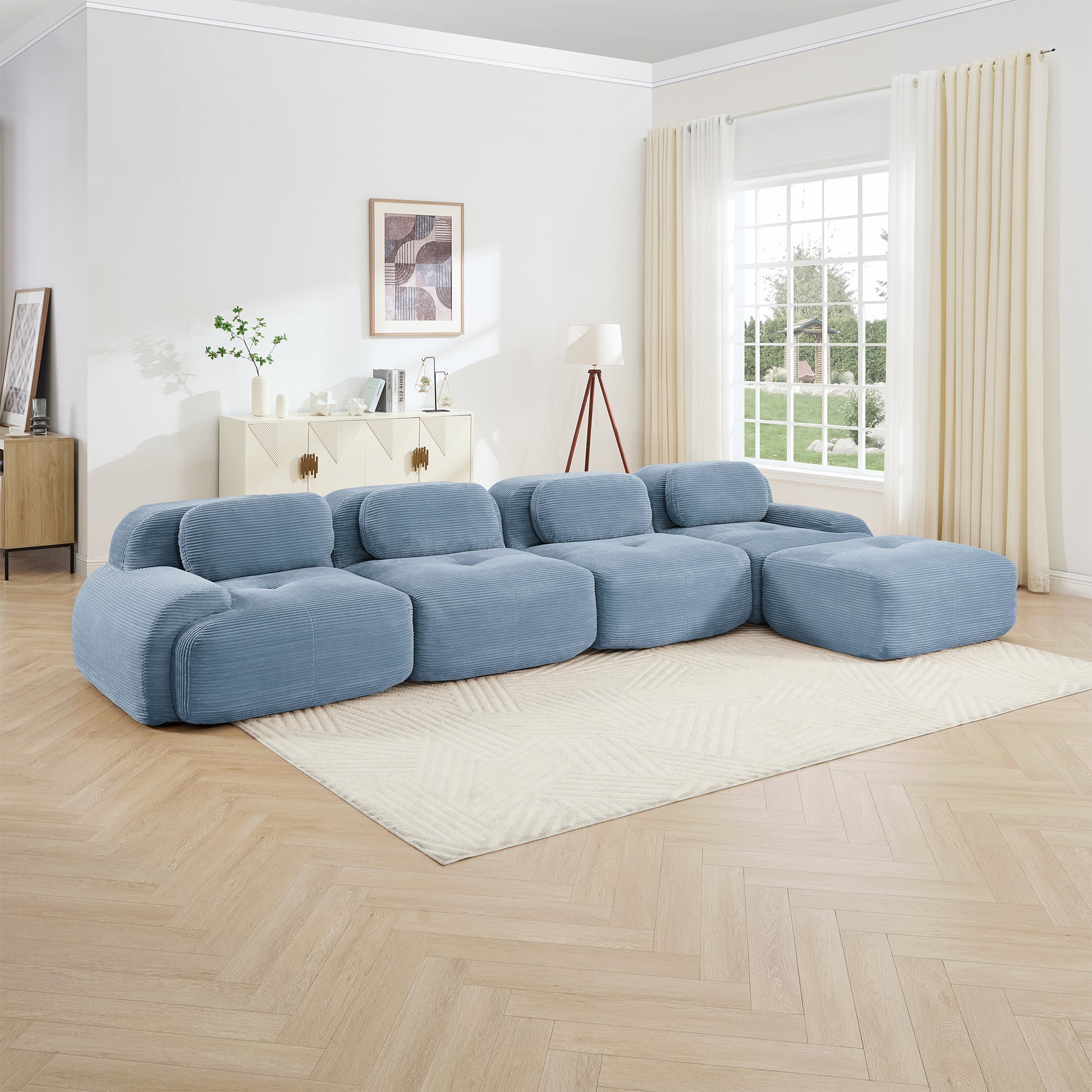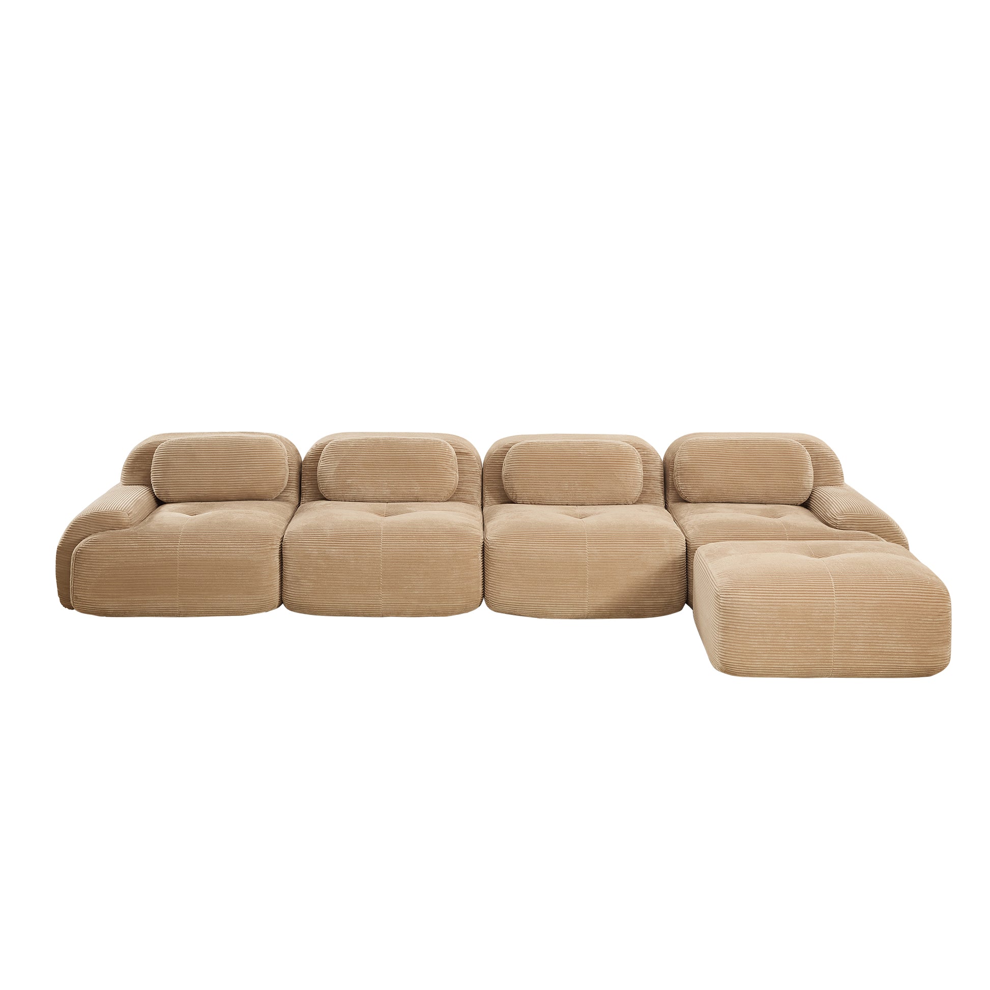 Anchorage 152" Modular Corduroy Cloud L-Shaped Sectional Sofa with Ottoman