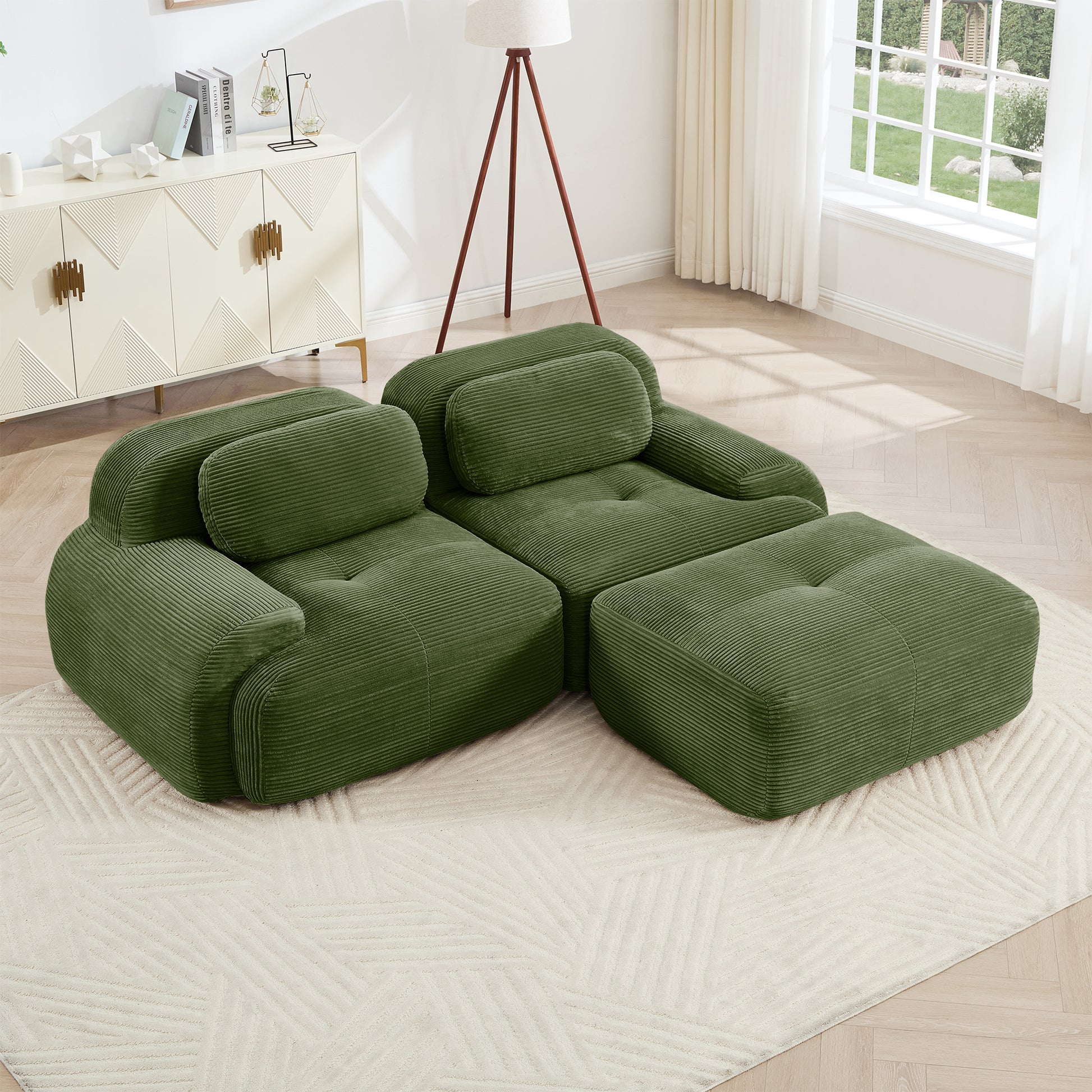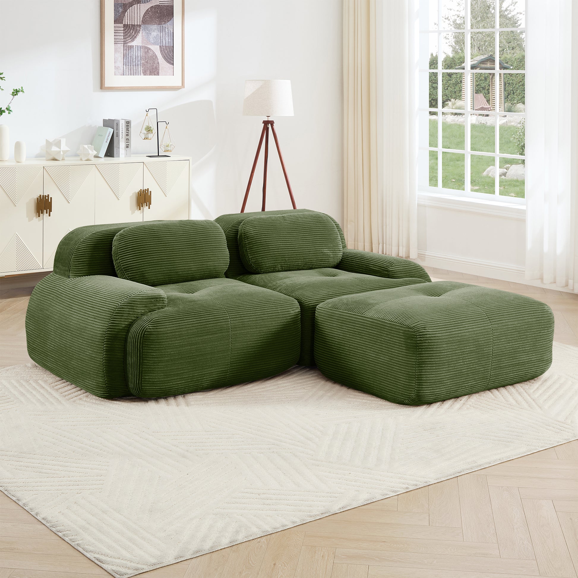 Anchorage 80" L-Shaped Modular Corduroy Cloud Sofa with Ottoman