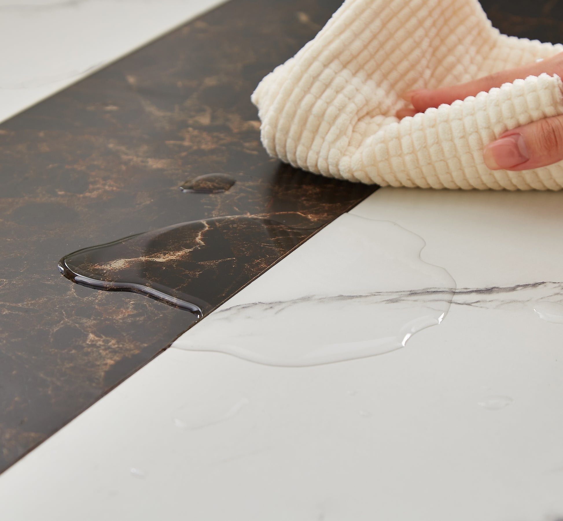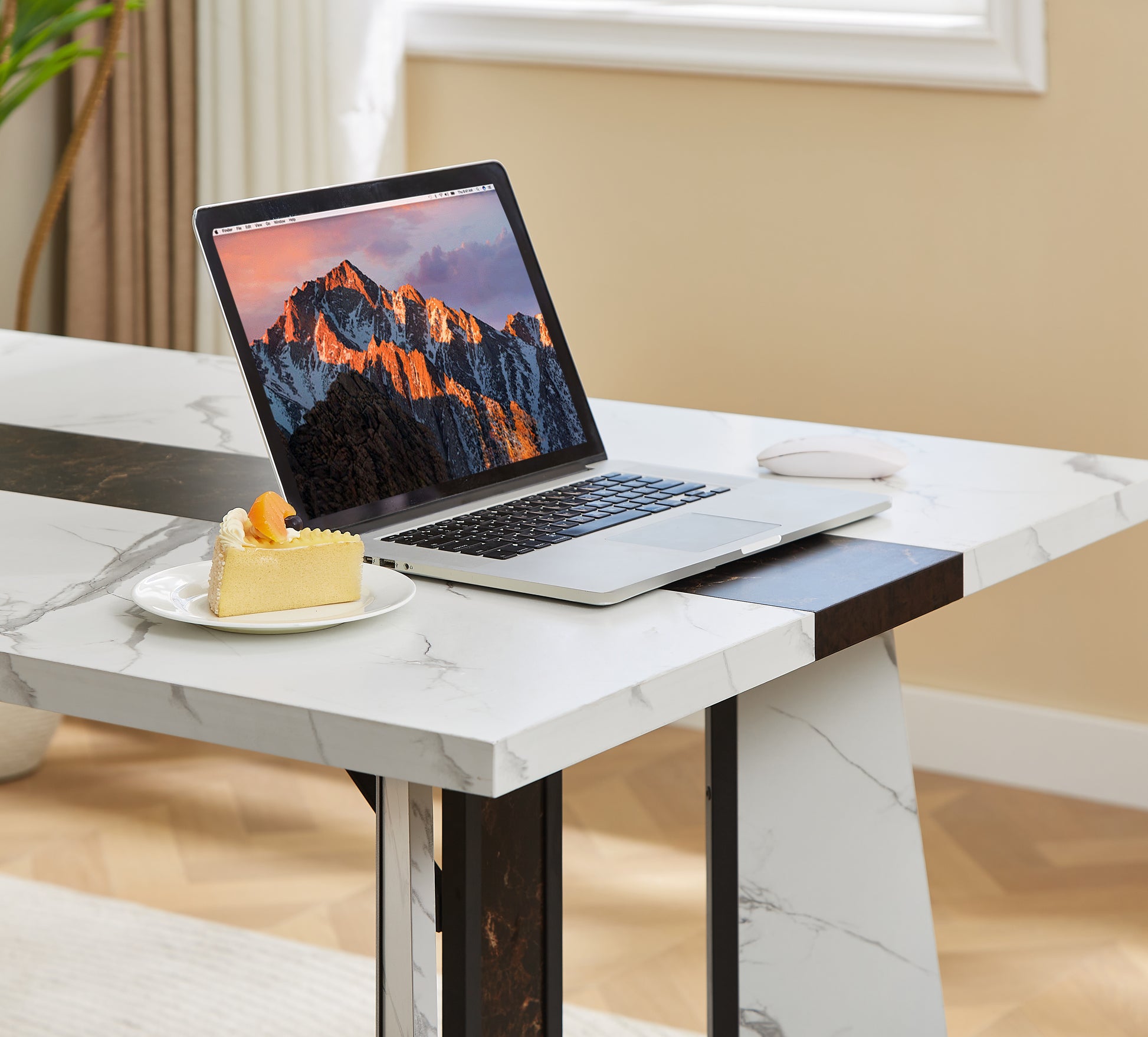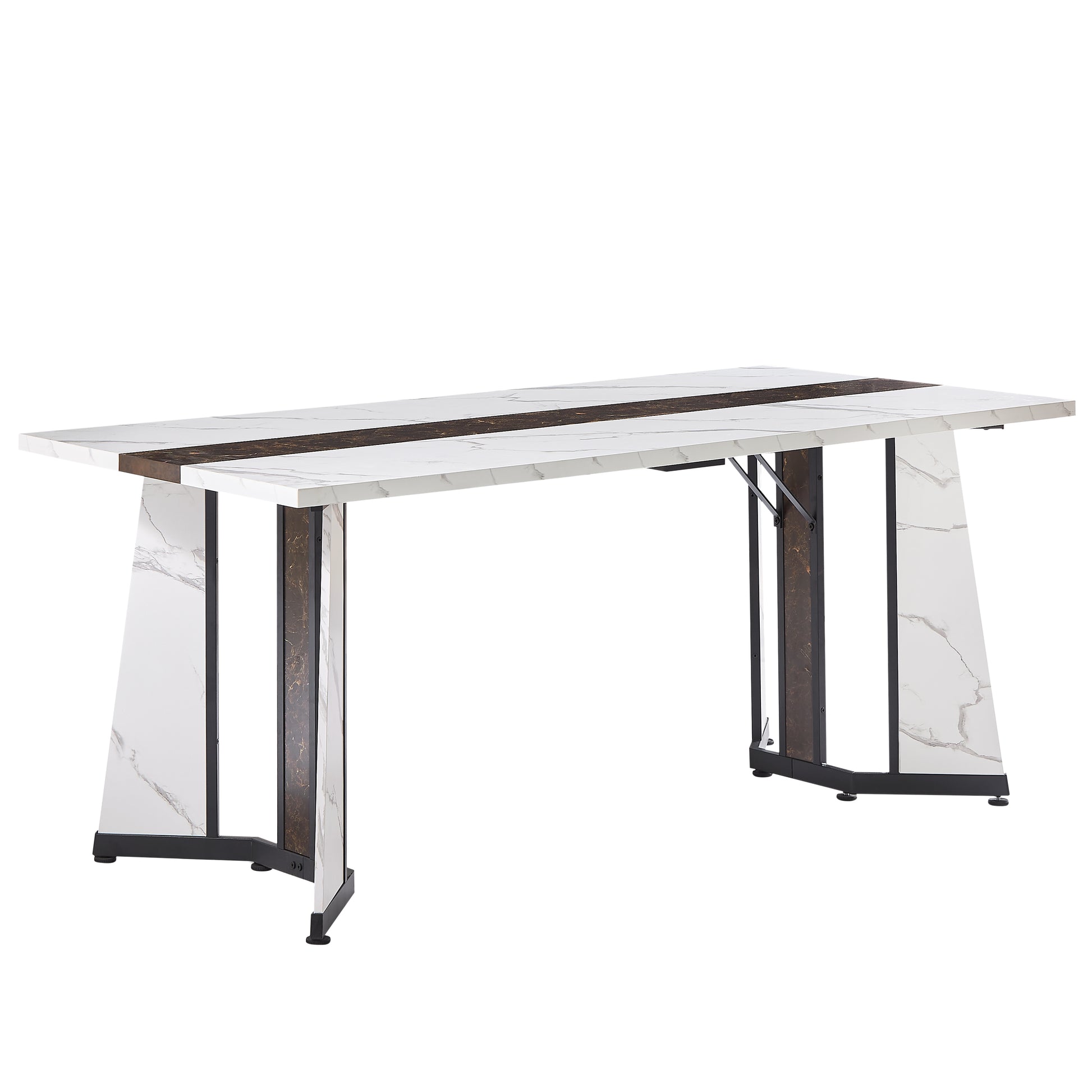 The Arden 70.9" dining table combines modern elegance with durability. Its spacious marble-grain MDF top, supported by a sturdy steel base with adjustable feet, comfortably seats up to eight people, making it ideal for family dinners, gatherings, or office meetings.