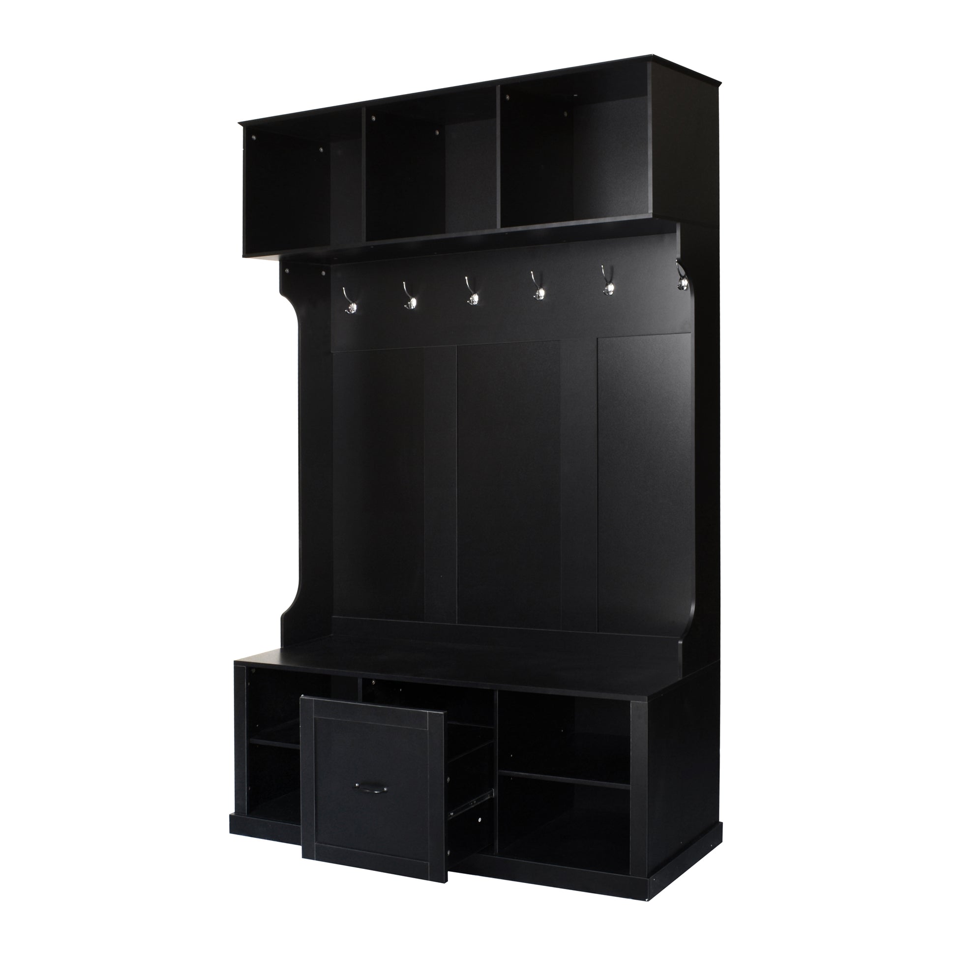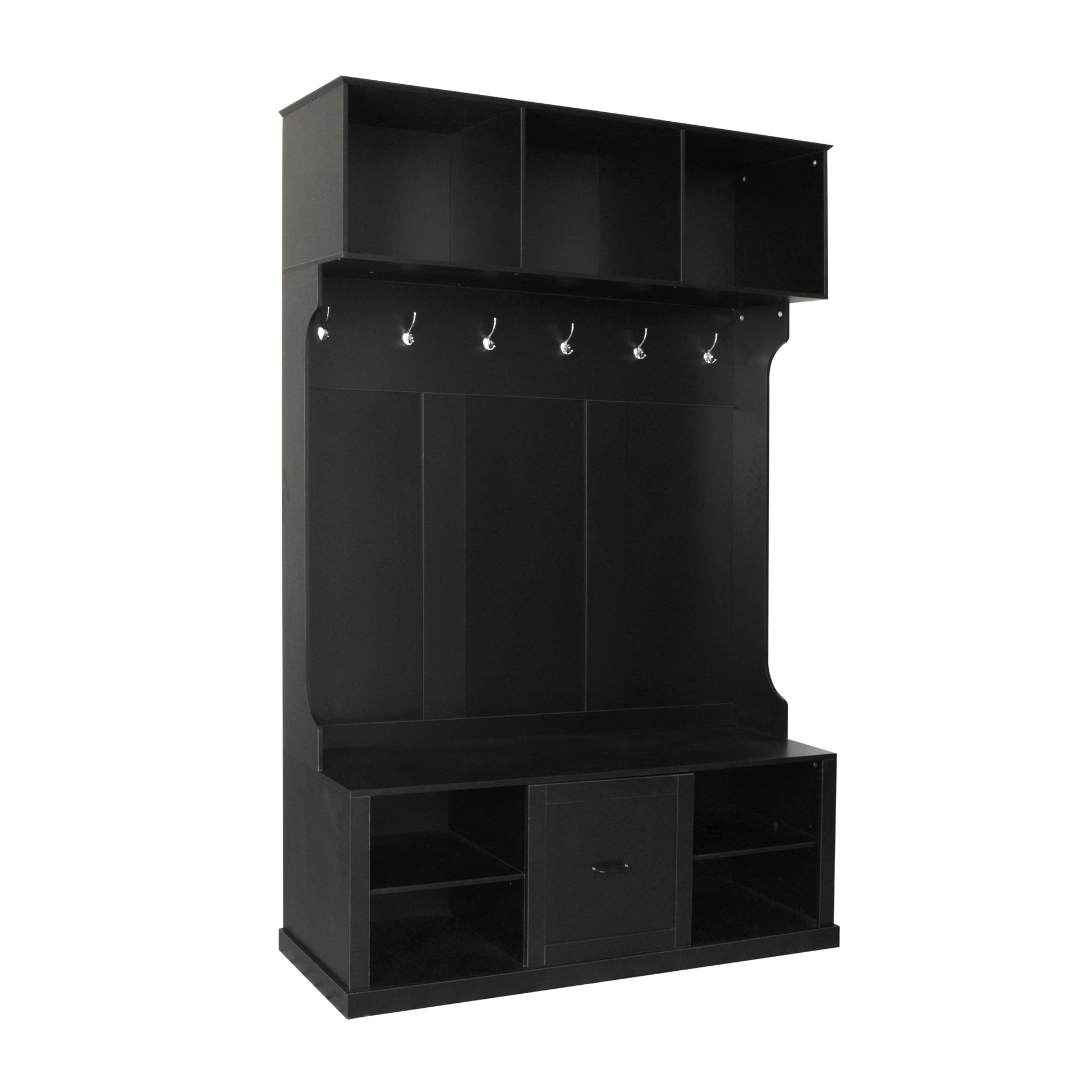 ATLAS 57" Modern Wood 3-in-1 Hall Tree Bench with Drawer and 6 Hooks