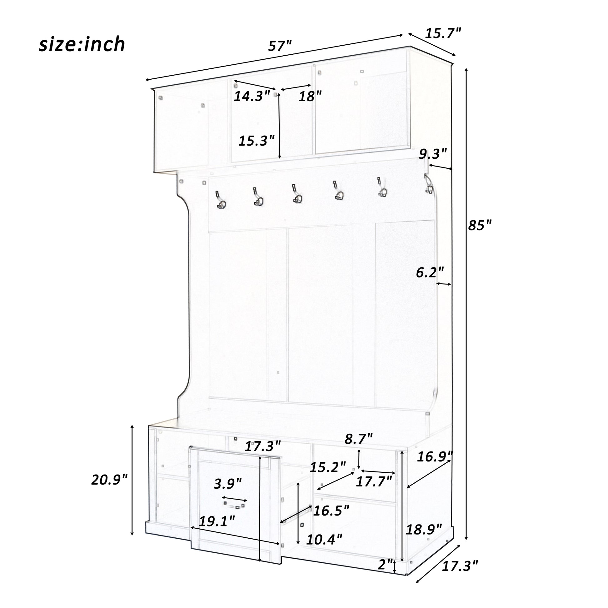 The ATLAS 3-in-1 hall tree blends modern design with everyday practicality. Featuring 6 hooks, a wide bench, open shelves, and a spacious drawer, it keeps your entryway organized and stylish while offering comfortable seating and durable performance.