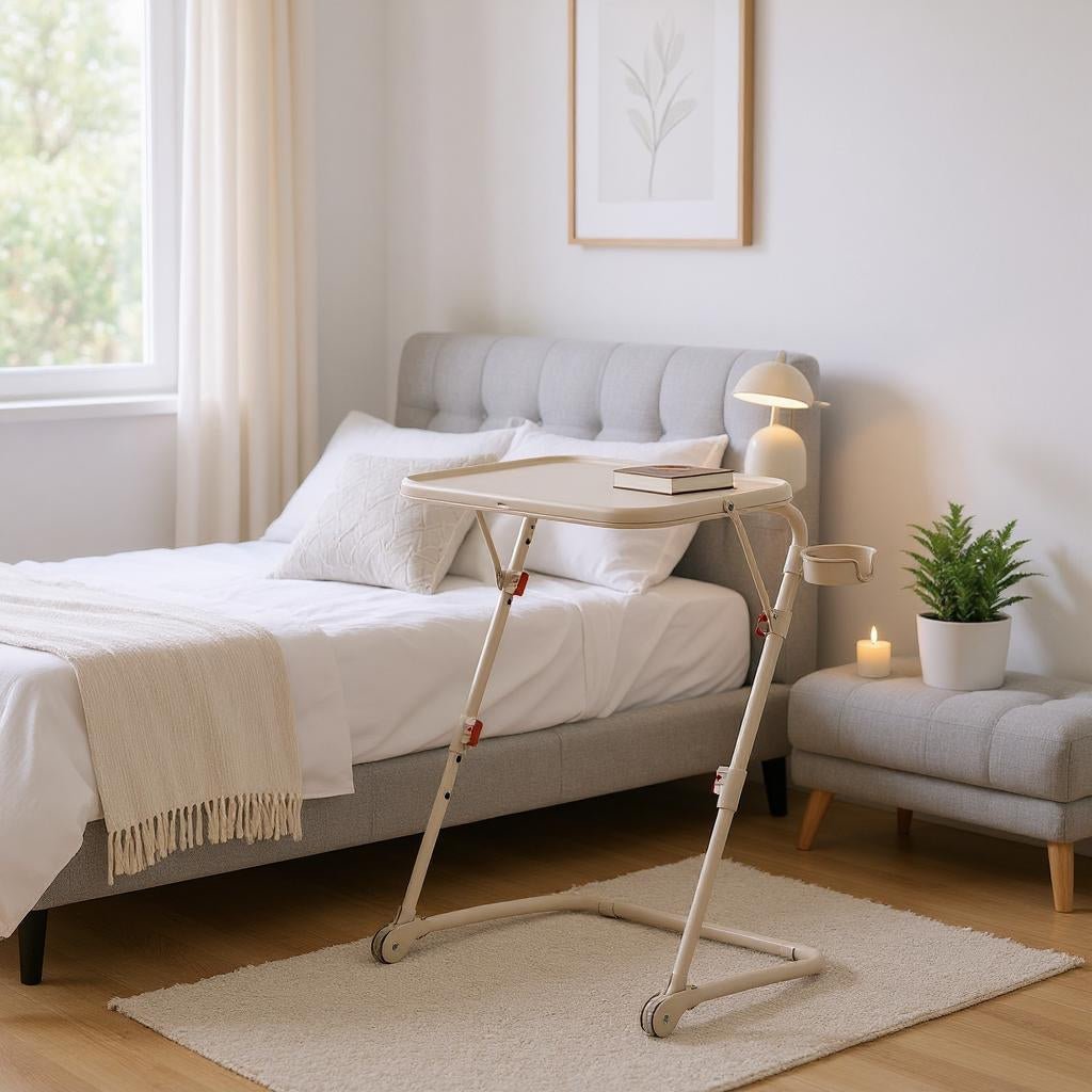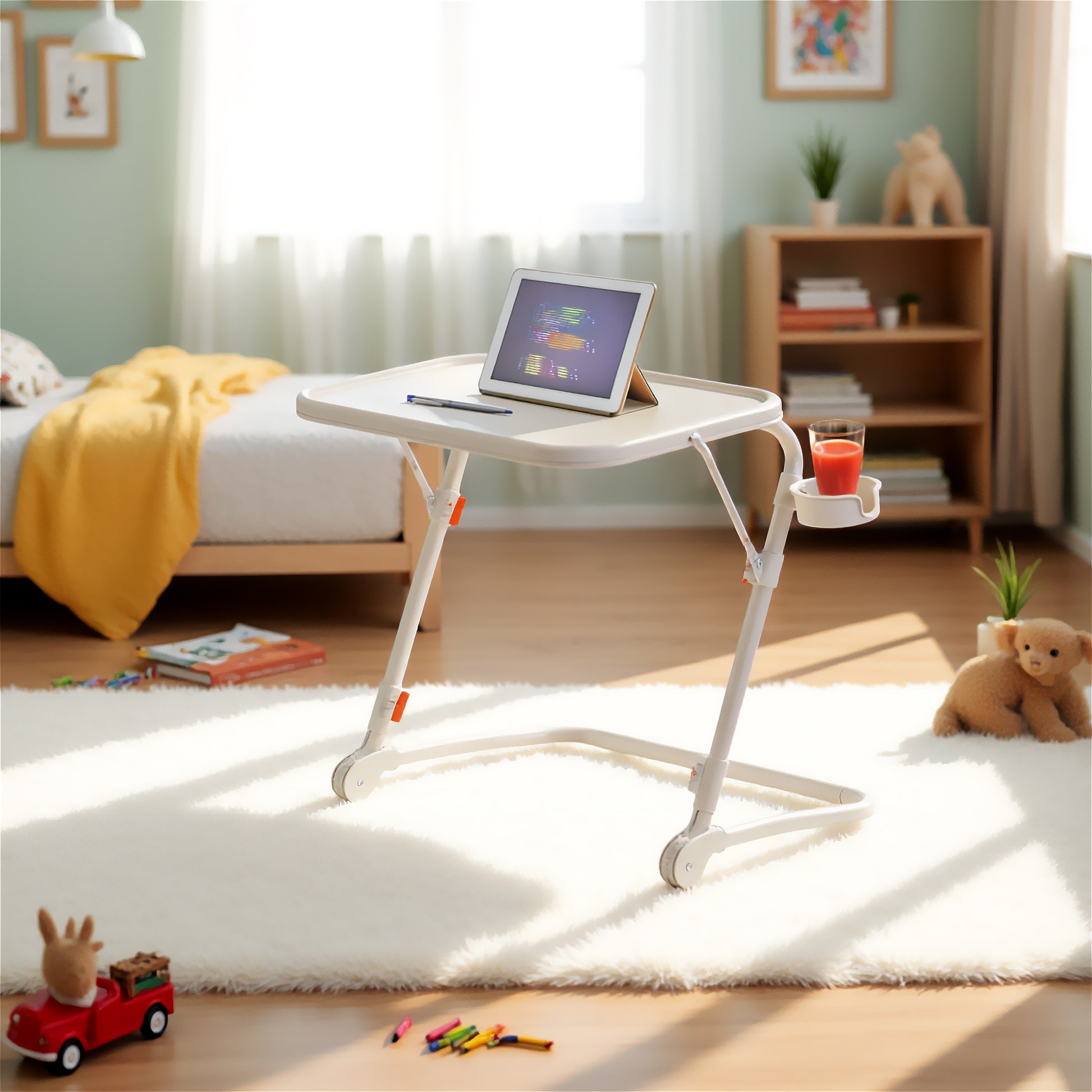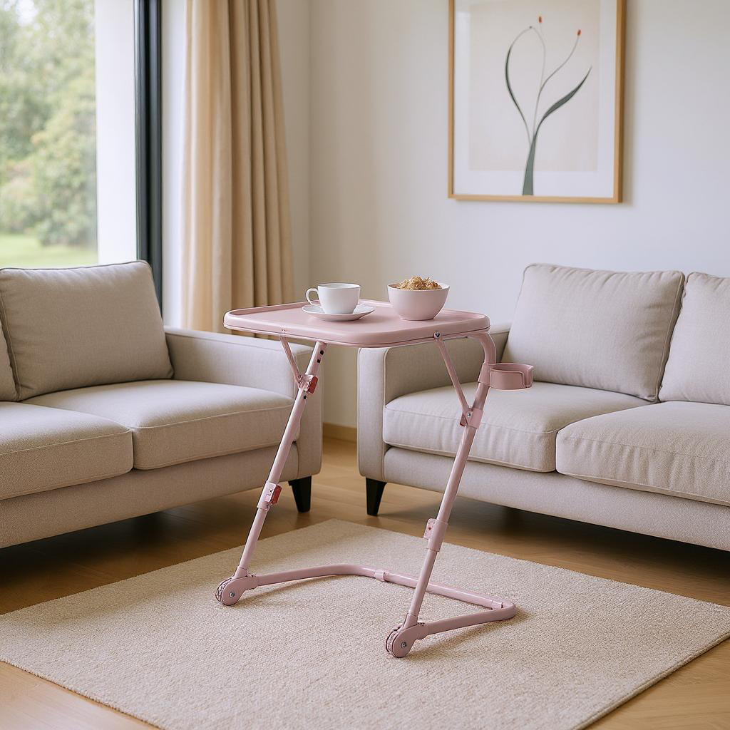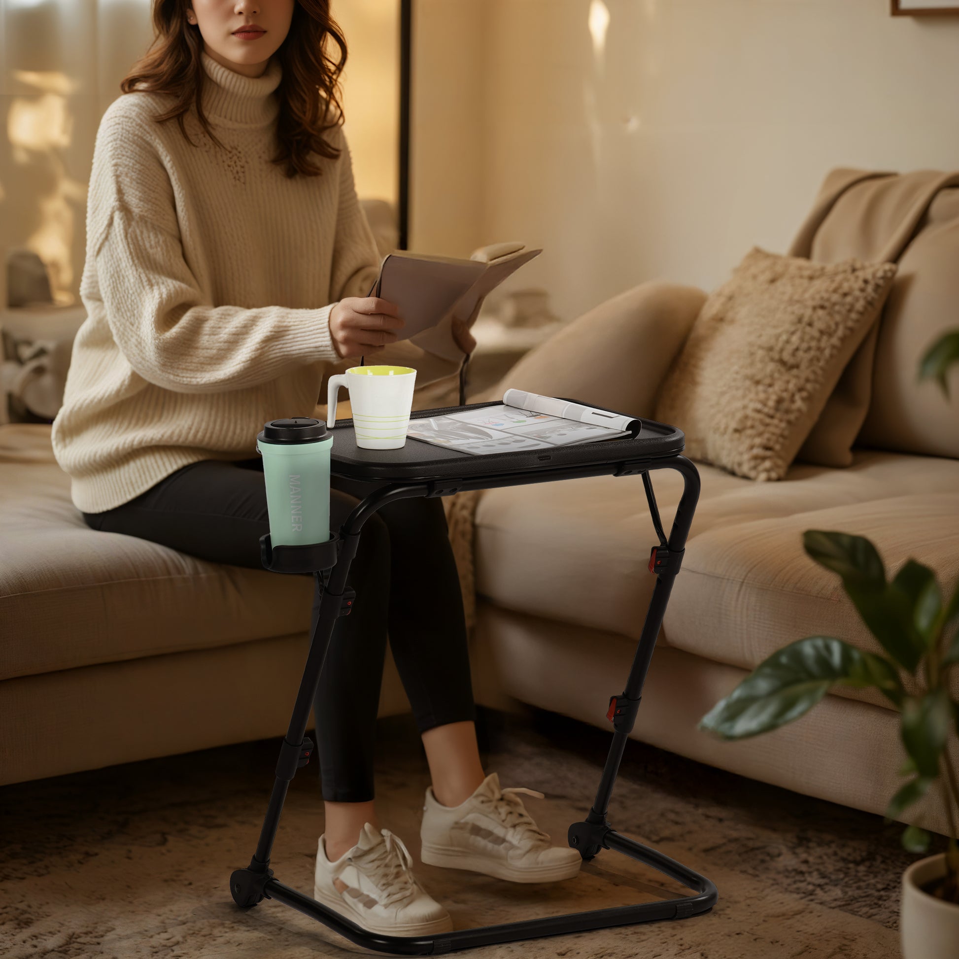 Compact yet versatile, this foldable adjustable tray table is your go-to solution for working, snacking, or crafting anywhere in the home. Lightweight, height-adjustable, and equipped with a built-in cup holder.