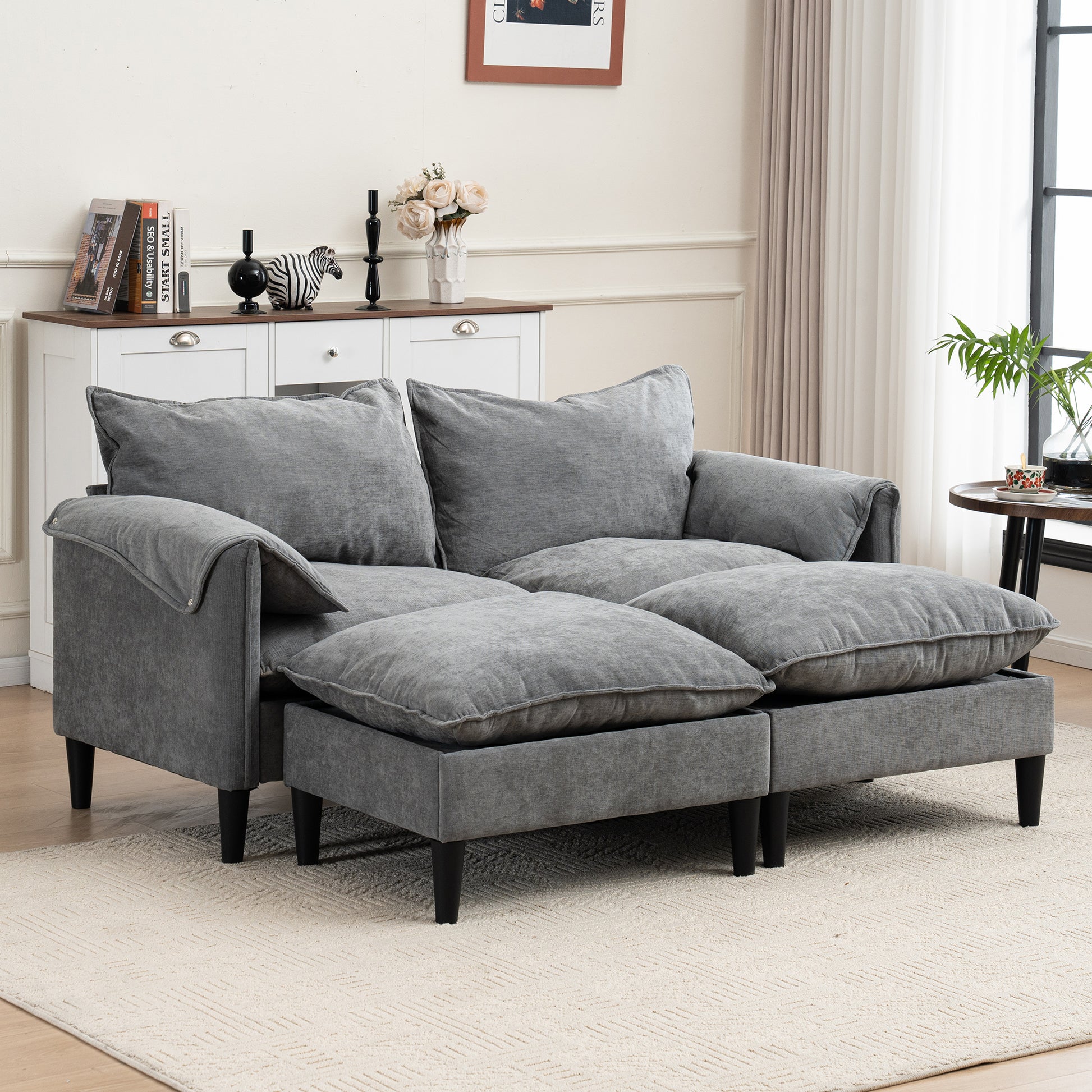 Belmont 2 Seaters Modern Fabric U Shaped Convertible Sofa With Storage