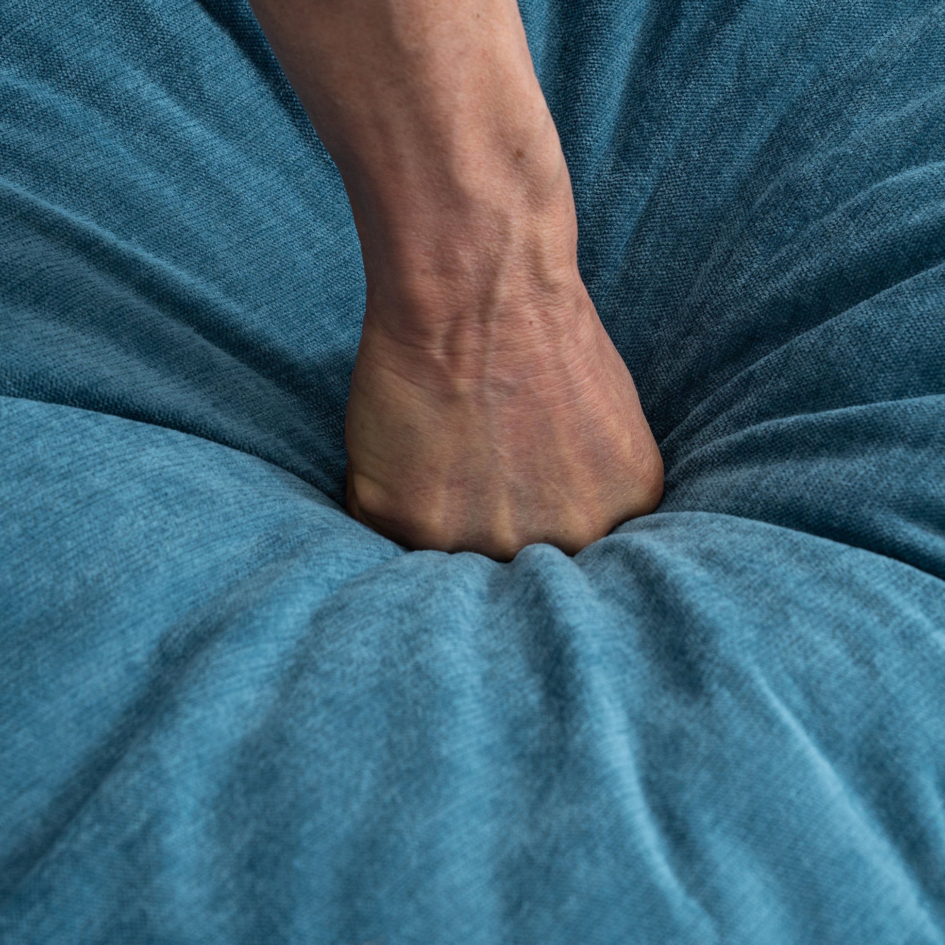 Designed for modern living, the Belmont U-shaped convertible sofa combines soft lake-blue fabric, hidden storage, and flexible comfort in a compact, stylish 2-seater form.