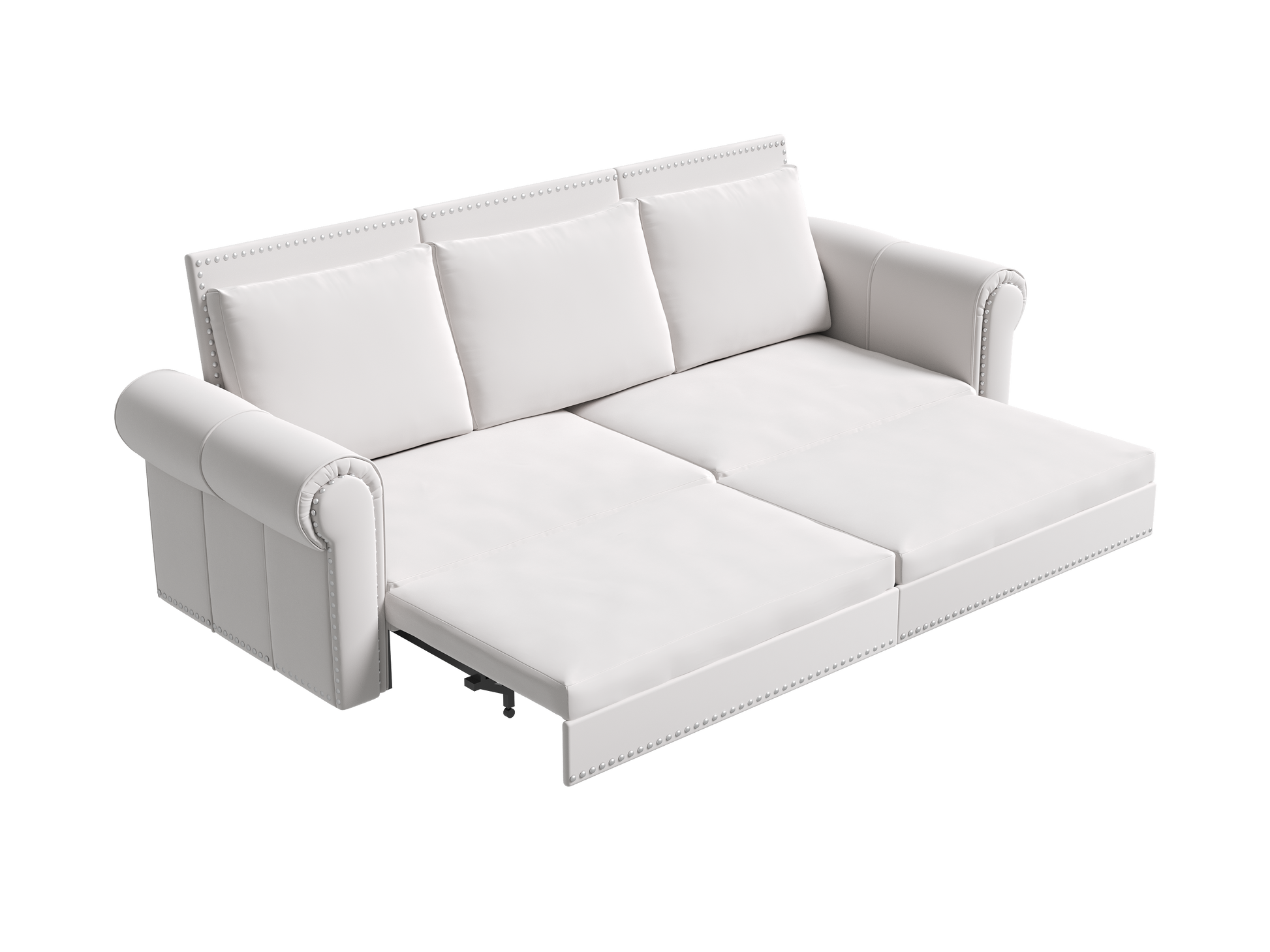 Chesterfield Sofa,93.7" King Pull Out Sofa Bed,3-in-1 Velvet Convertible Sleeper Sofa with Nailhead Trim & Rolled Arm,Multi-Functional Sofa Bed for Living Room,Bedroom,Beige/White(old sku:W1885S00036)