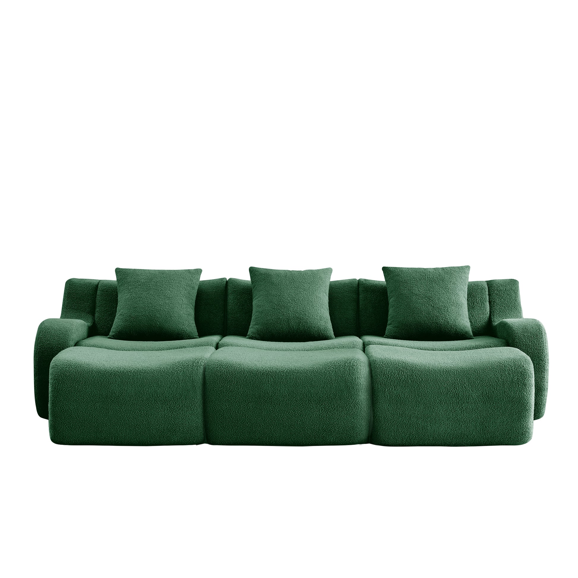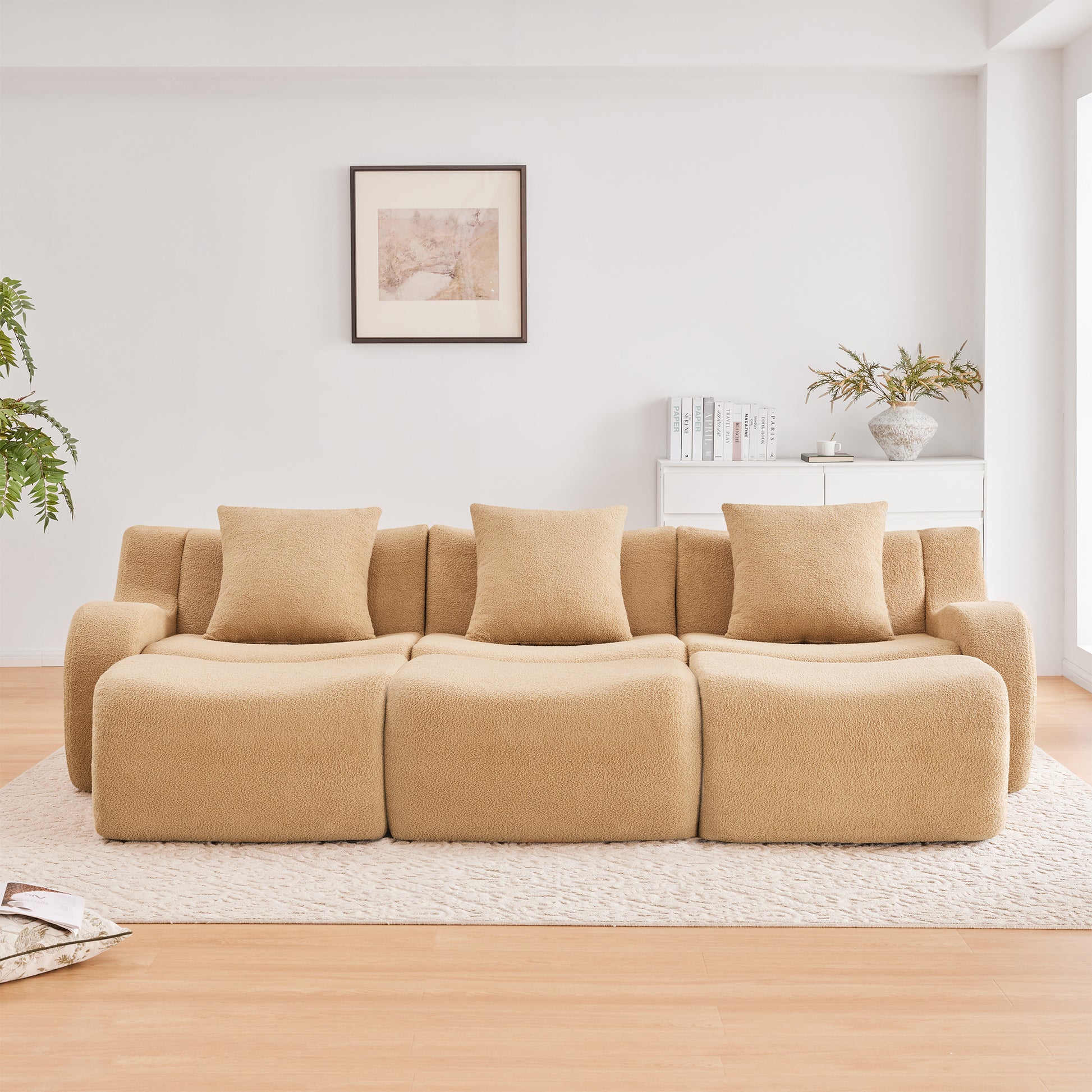 Chico 115" Modular Teddy Fabric 3-Seater Sofa with3 Ottomans