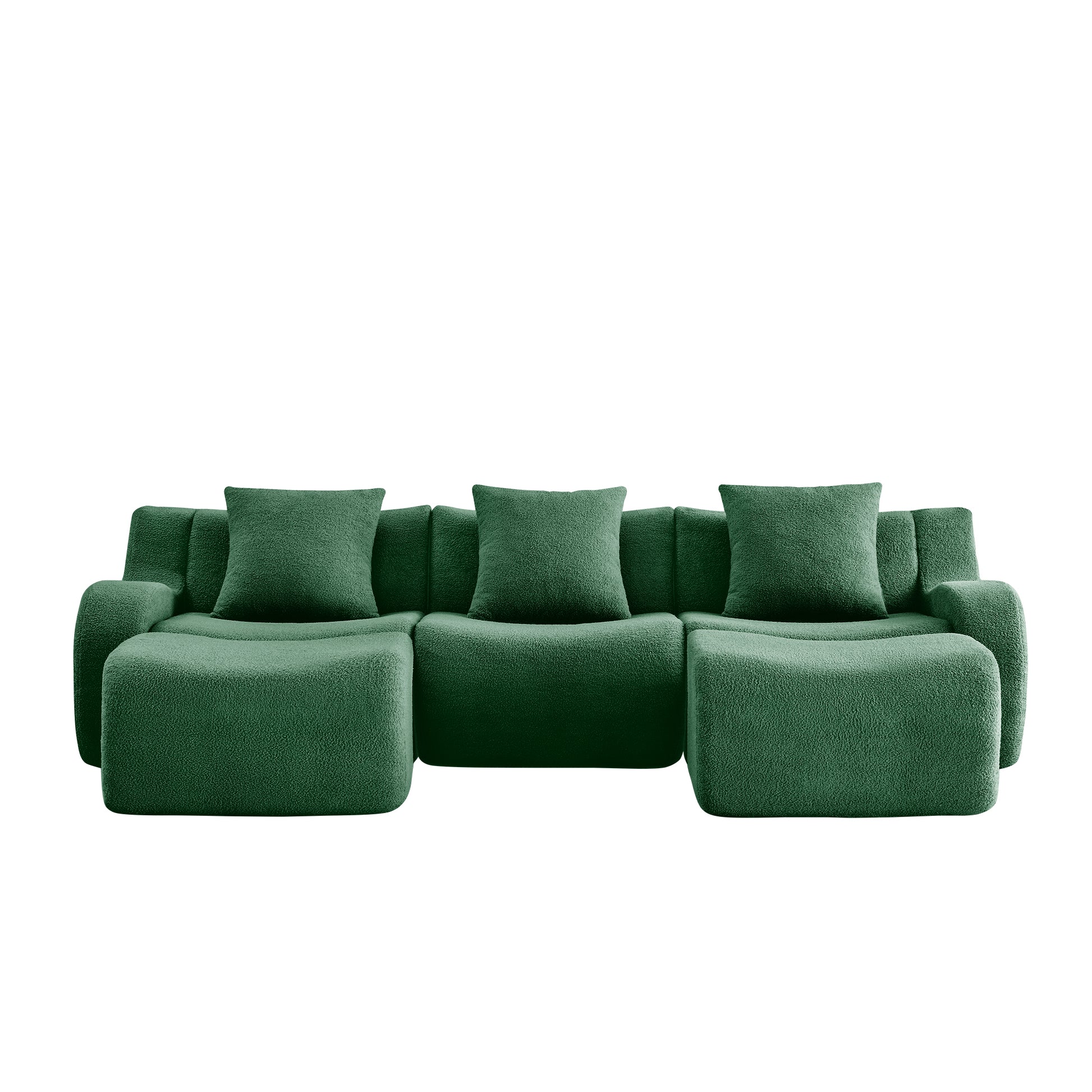 Chico 115" U-Shaped Modular Teddy Fabric U-shaped Sectional Sofa with 2 Movable Ottomans