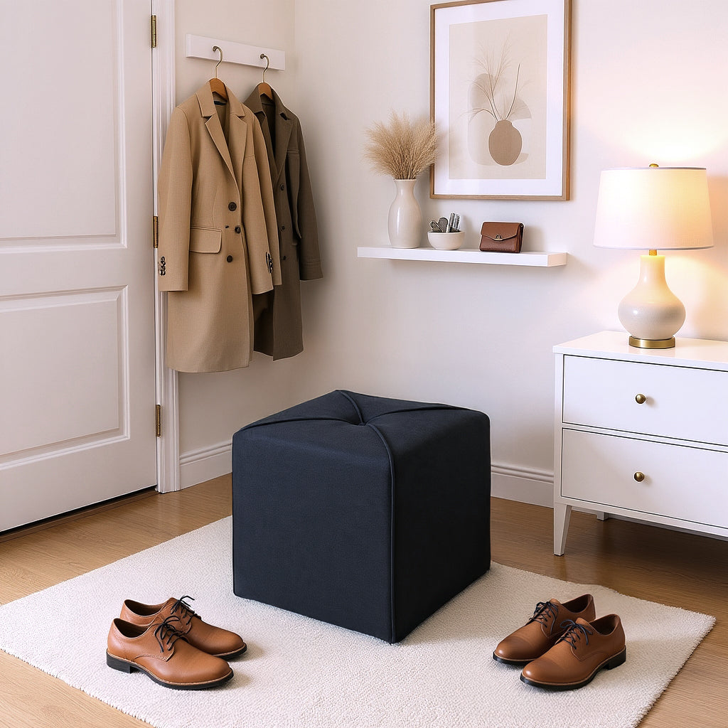 A versatile dark charcoal ottoman that works as extra seating, a footrest, or a stylish accent piece. Compact yet functional, Arlo adds comfort and modern character to any living space.