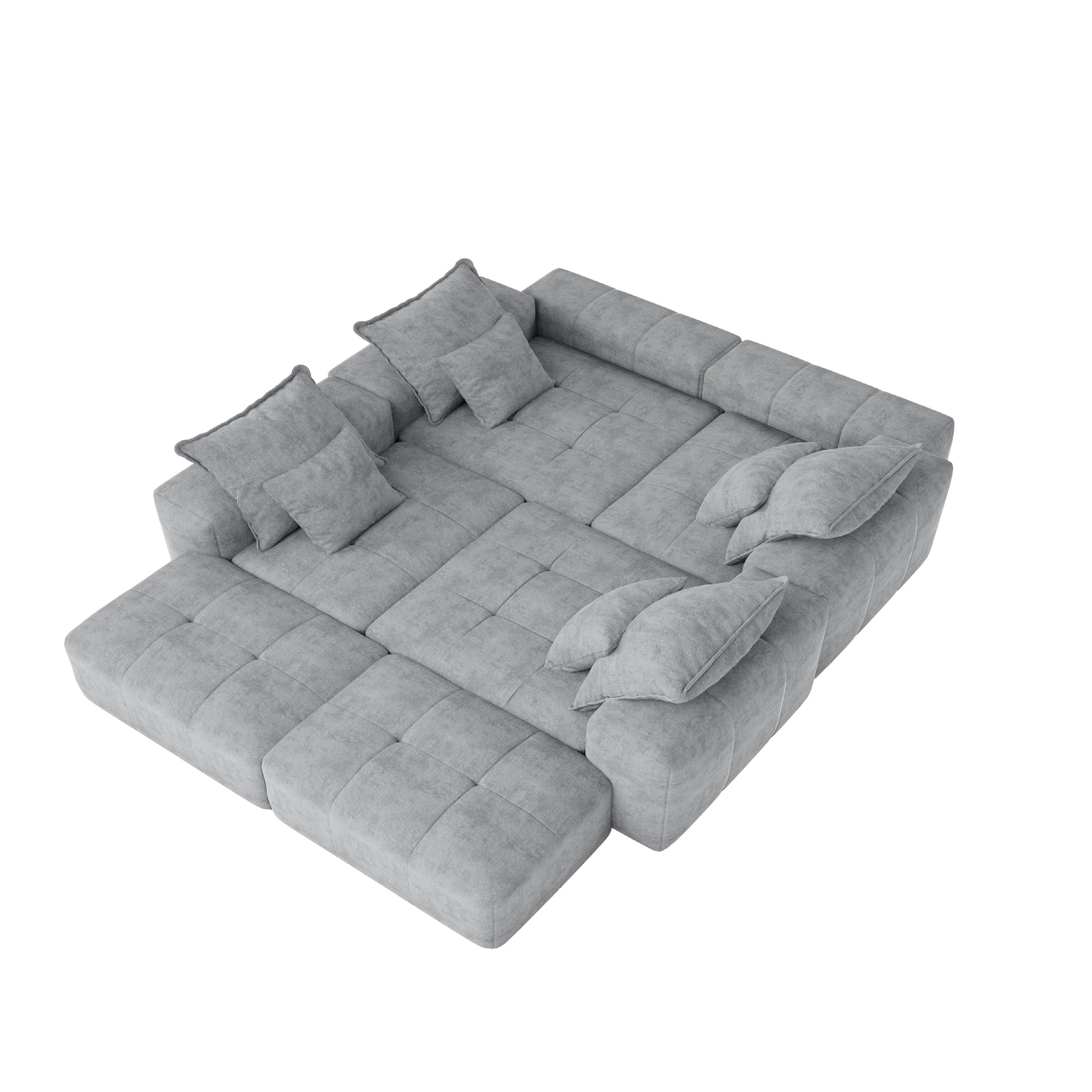 Denver 198" Oversized Chenille Tufted Modular Sectional Sofa with 8 Pillows