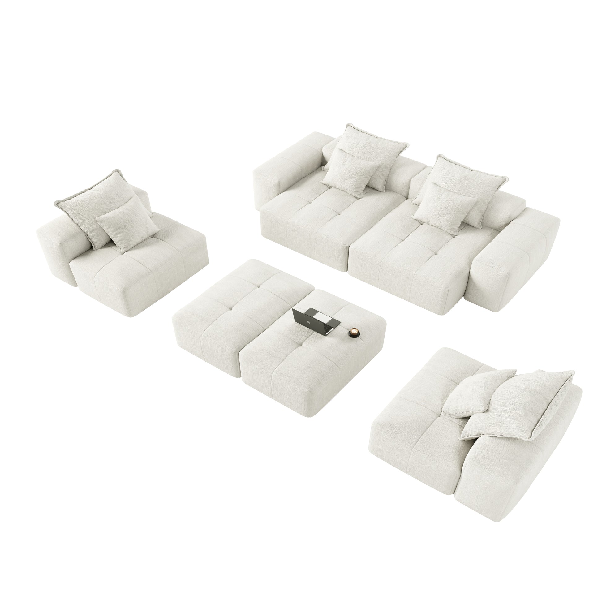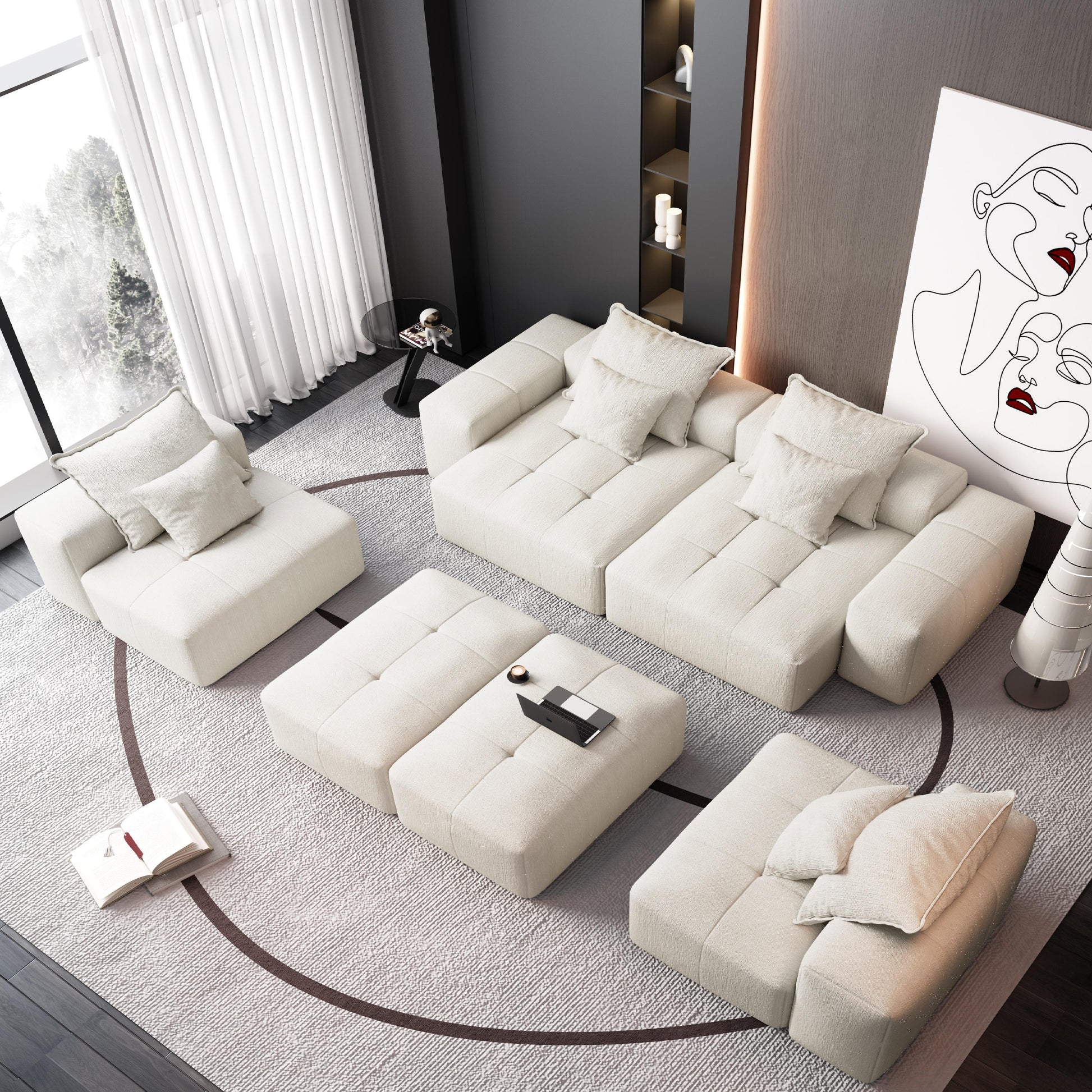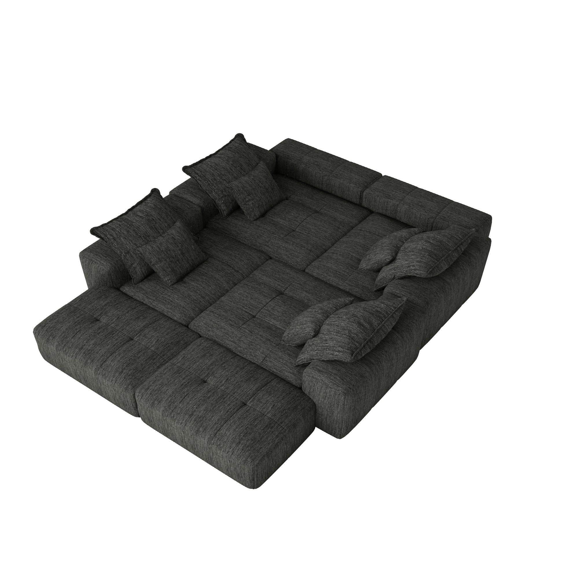 This oversized modular sectional sofa features plush tufted chenille upholstery, deep foam and spring support, and flexible configurations for modern living rooms seeking comfort, scale, and design freedom.