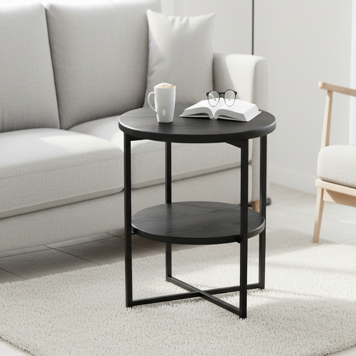 Maximize style and function in any space with this small round black side table, featuring two tiers for extra storage, a compact footprint, and a versatile design perfect for bedrooms, living rooms, or offices.