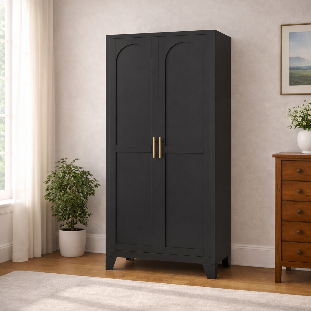 The Elva 71" Storage Cabinet offers spacious, customizable storage with adjustable shelves and a sleek steel design, perfect for organizing any room while saving space and maintaining a modern look.