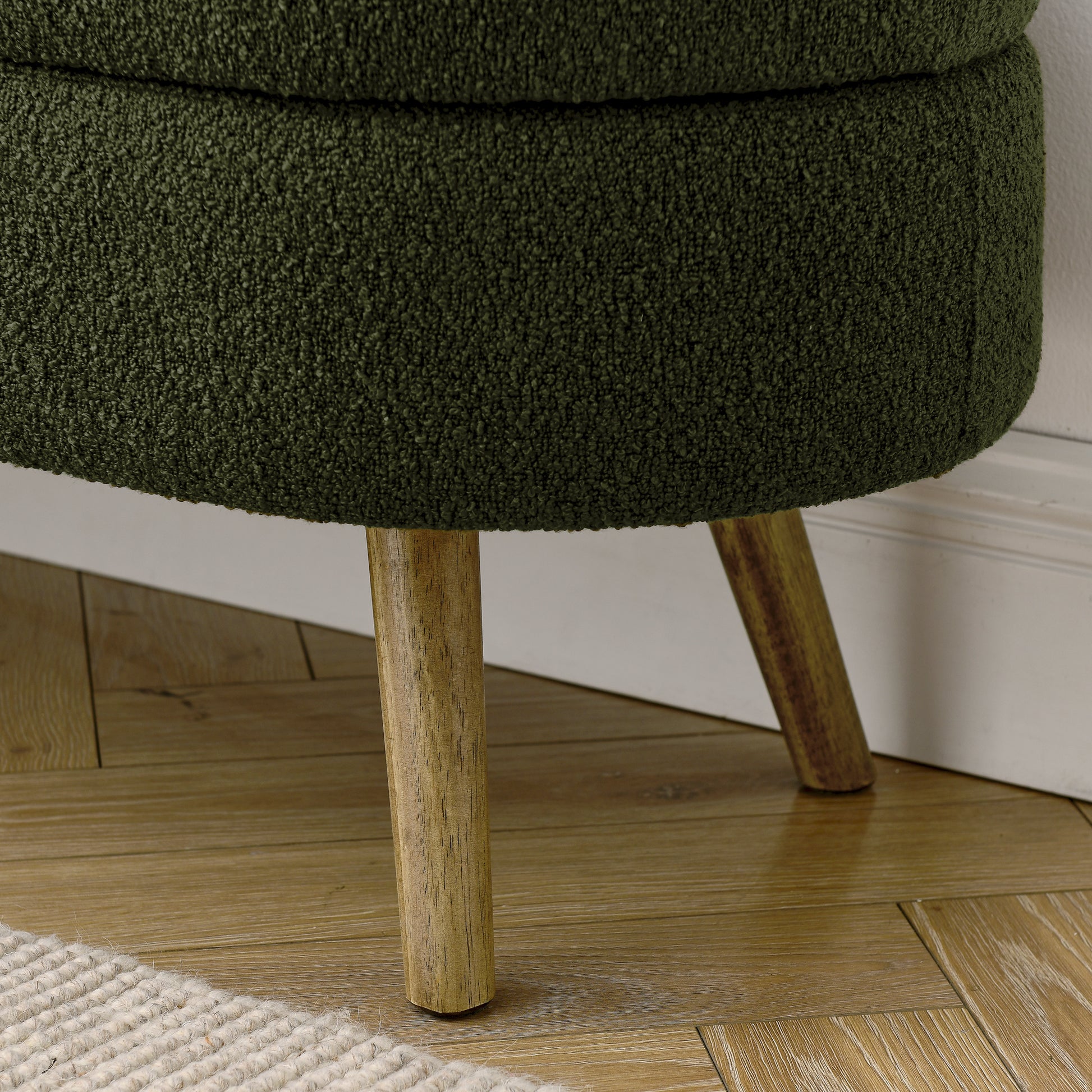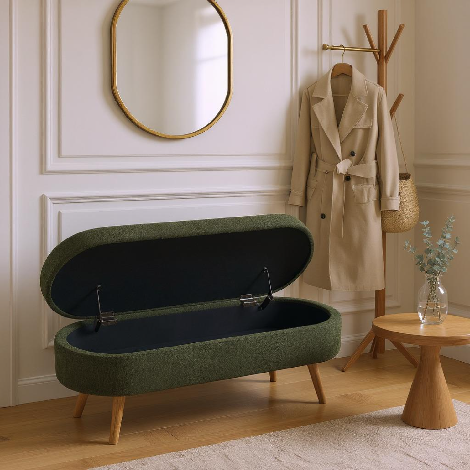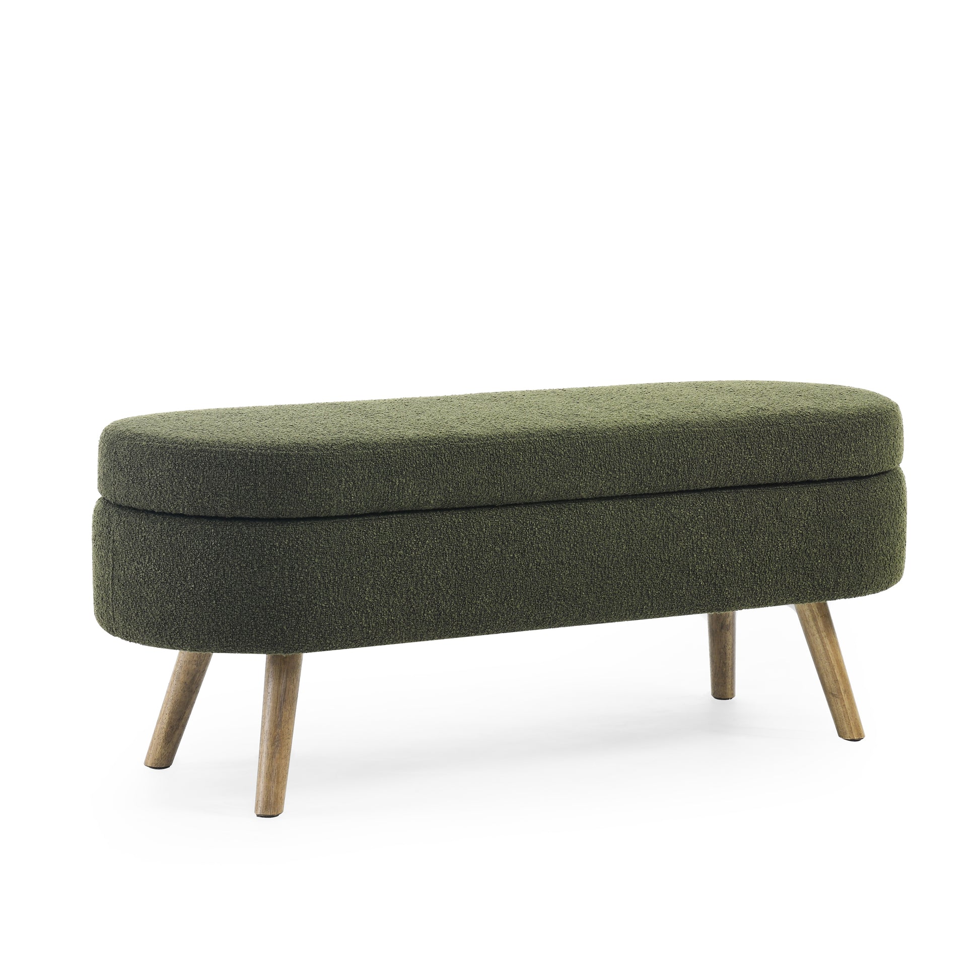 Add style and storage to your space with this green oval ottoman bench, featuring soft upholstery, hidden storage, and sturdy rubber wood legs.