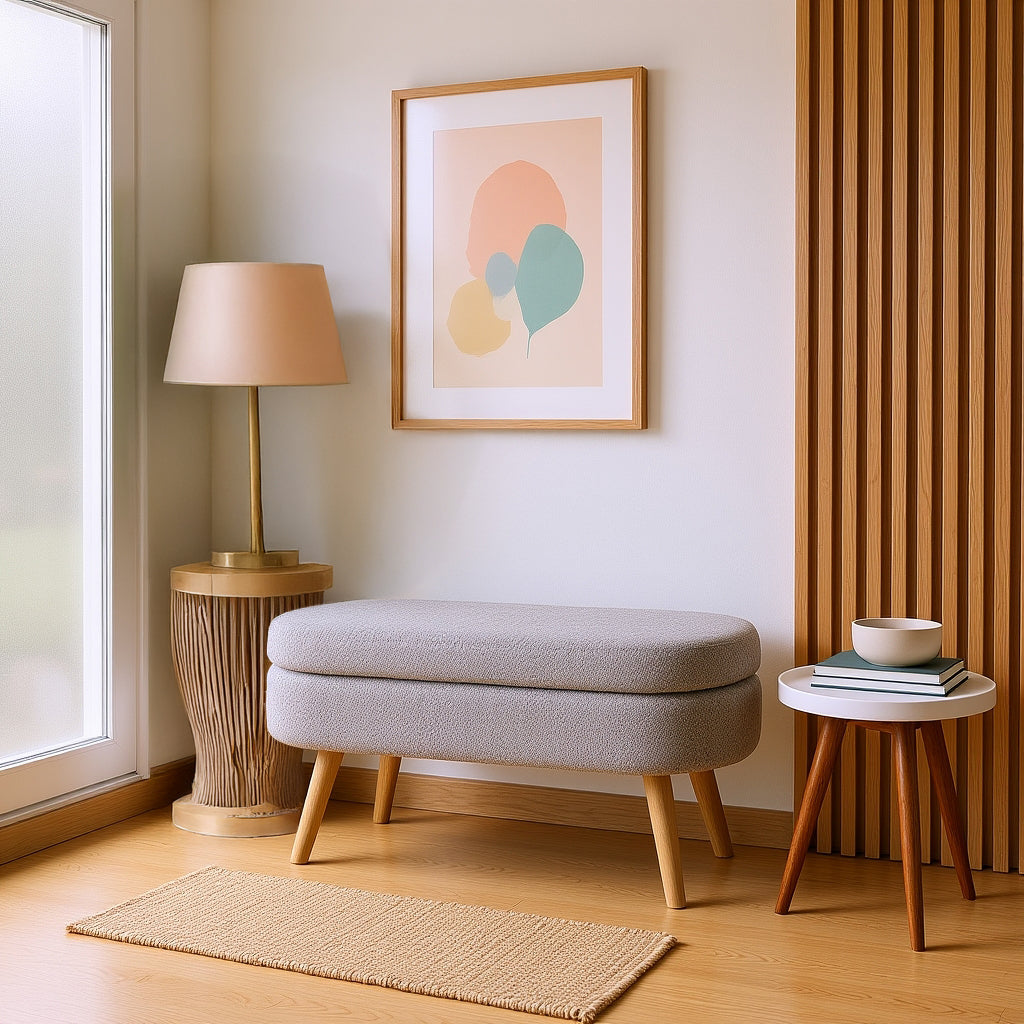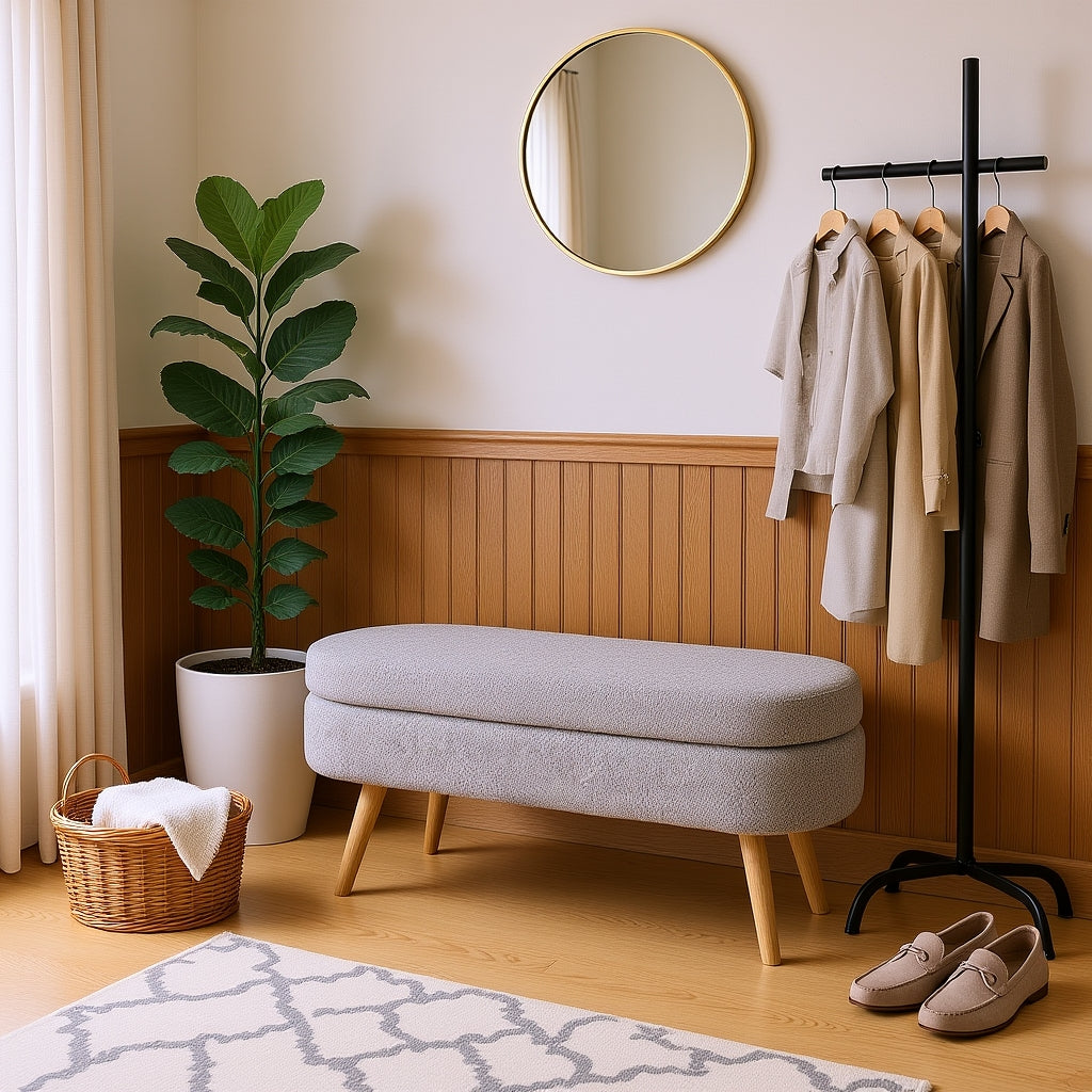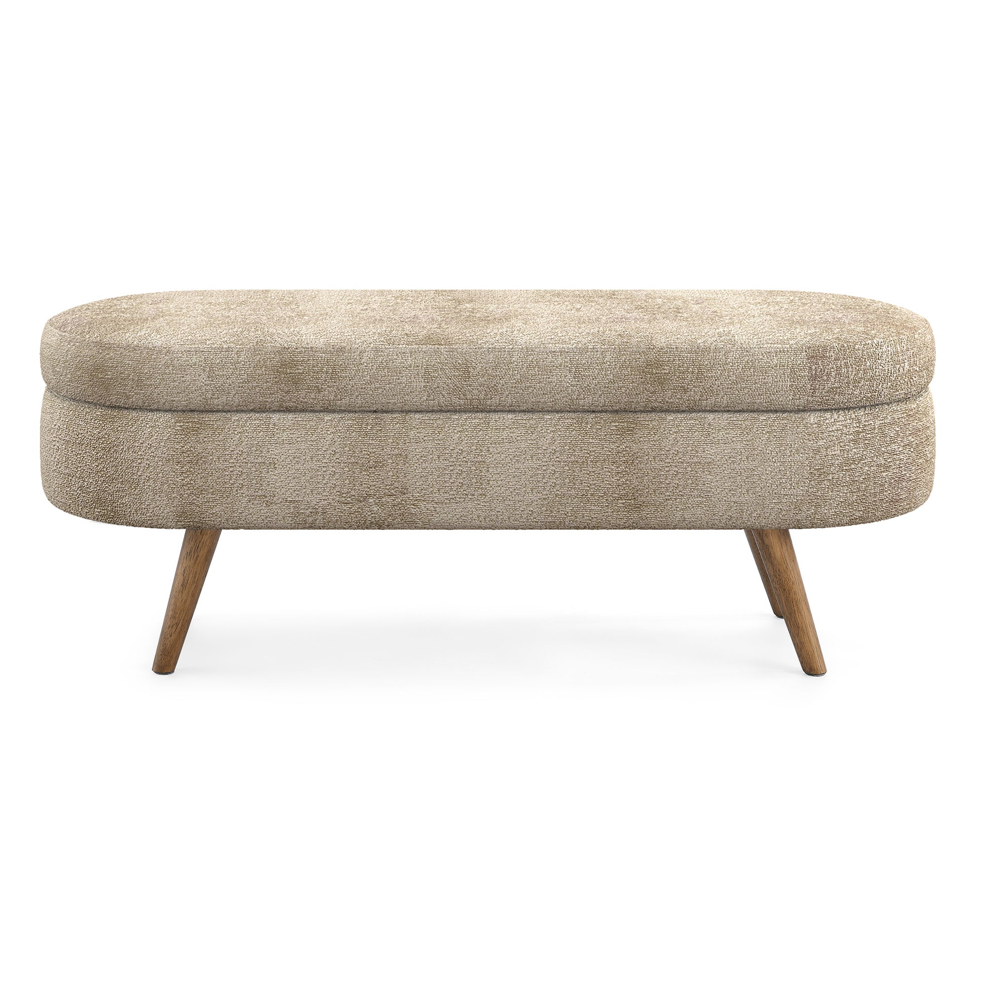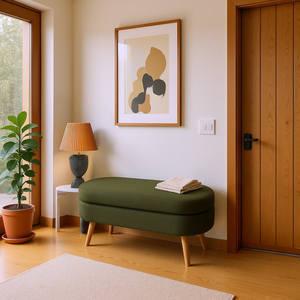 Add style and storage to your space with this green oval ottoman bench, featuring soft upholstery, hidden storage, and sturdy rubber wood legs.