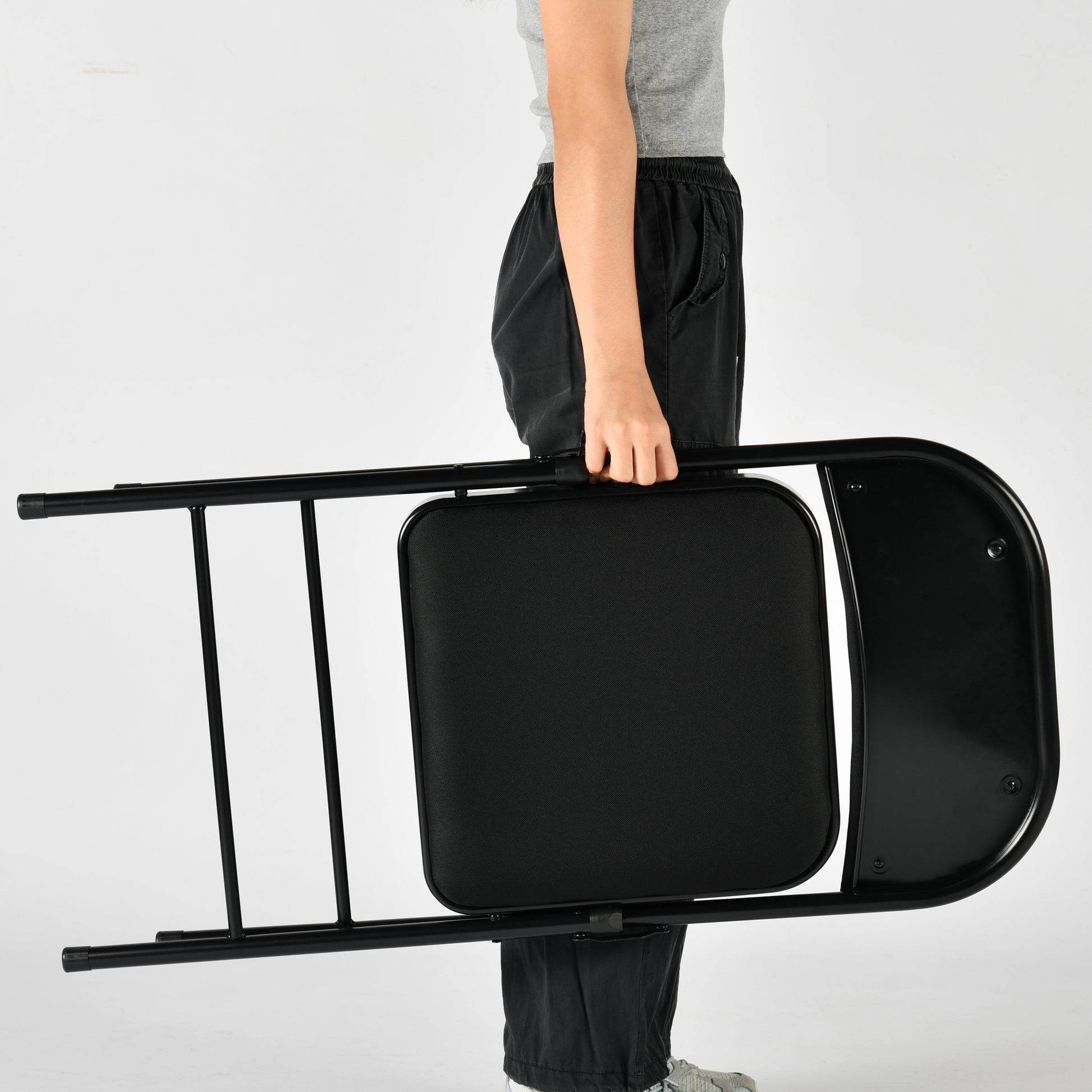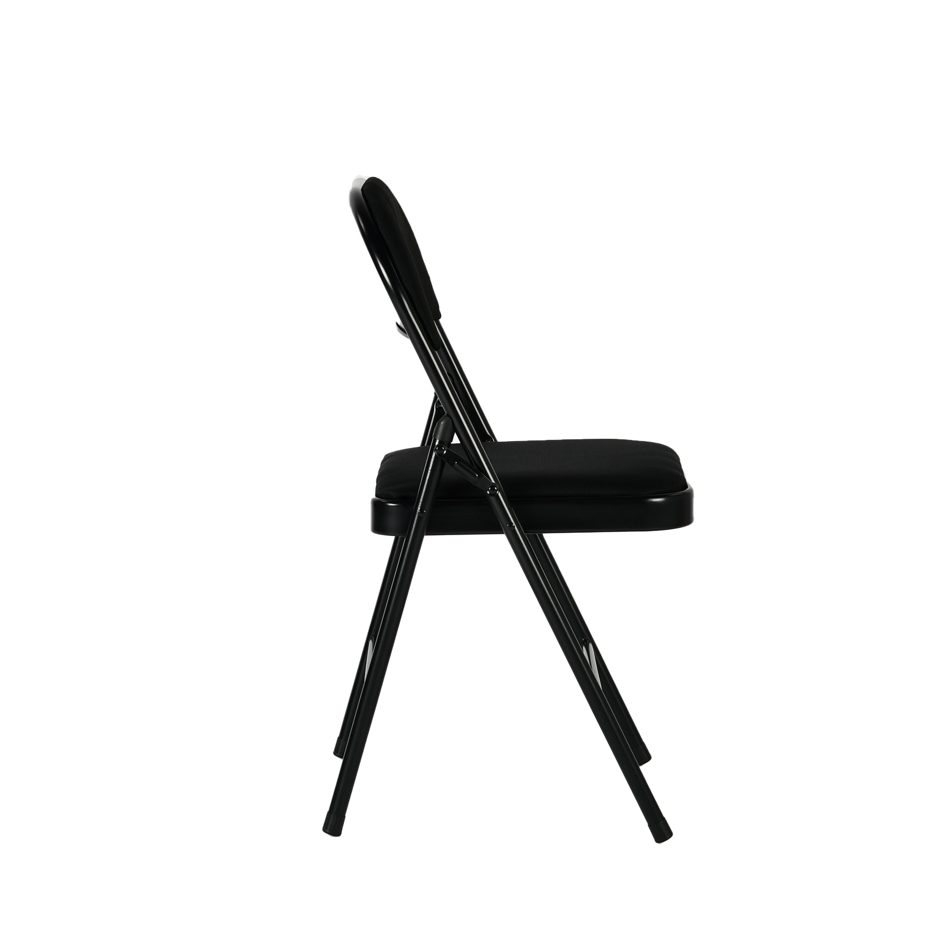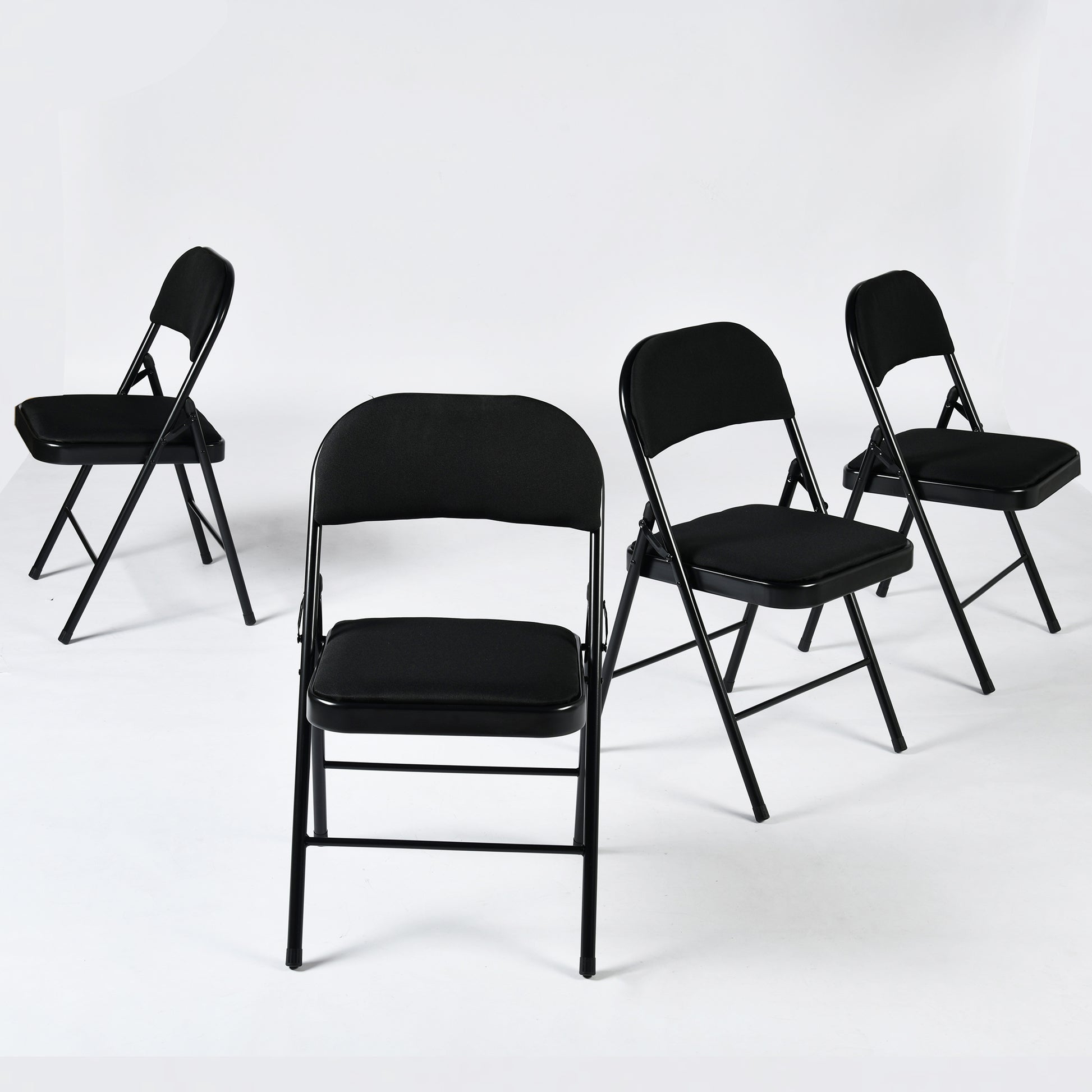 This folding dining set includes a PVC-covered MDF table and four Fair upholstered foldable chairs with linen fabric, cushioned seating, and matte black iron frames. A lightweight, space-saving solution designed for compact dining areas and flexible daily use.