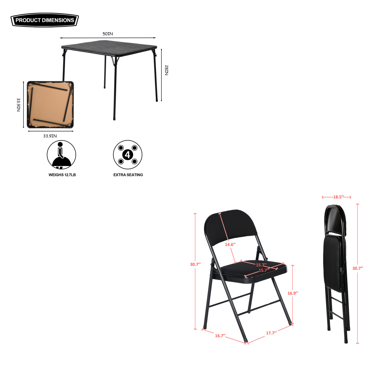Fern 5 Piece Folding Table Set with 4 Fair Upholstered Foldable Chairs