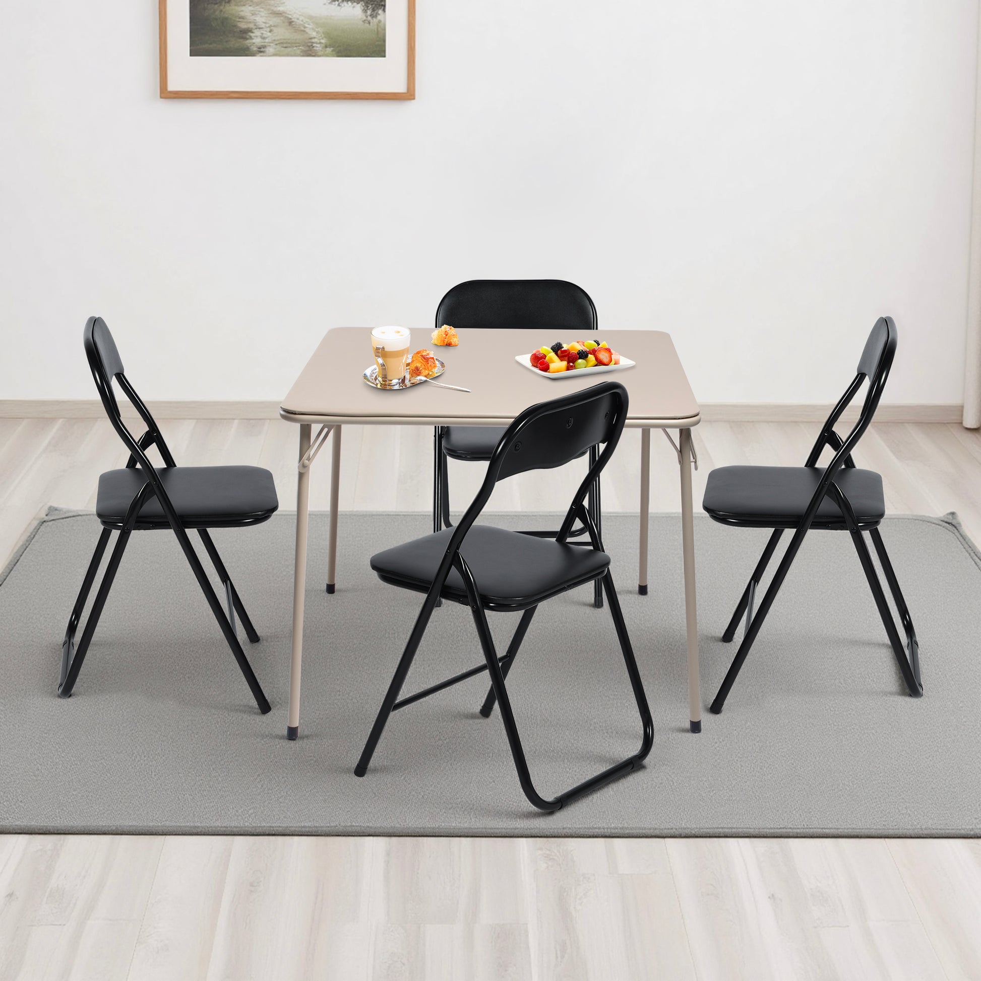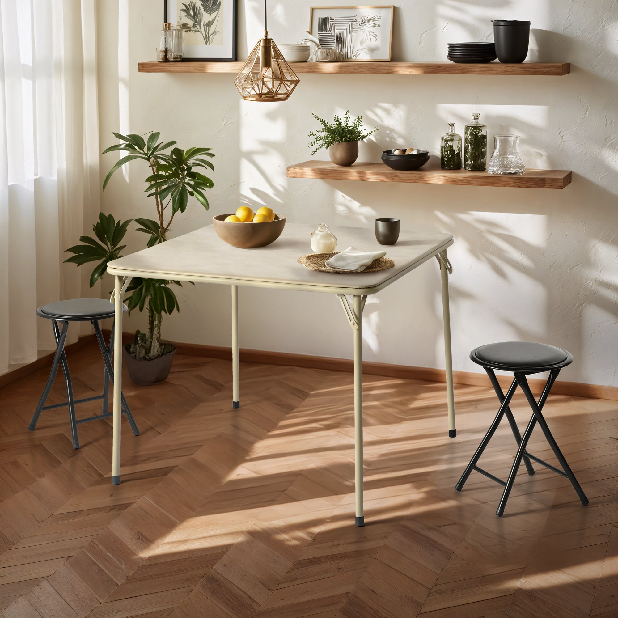 FERN Folding Square Card Table, 31.5" x 31.5", Easy-Clean PVC Top with Metal Folding Legs, Portable Dining and Game Table, Beige