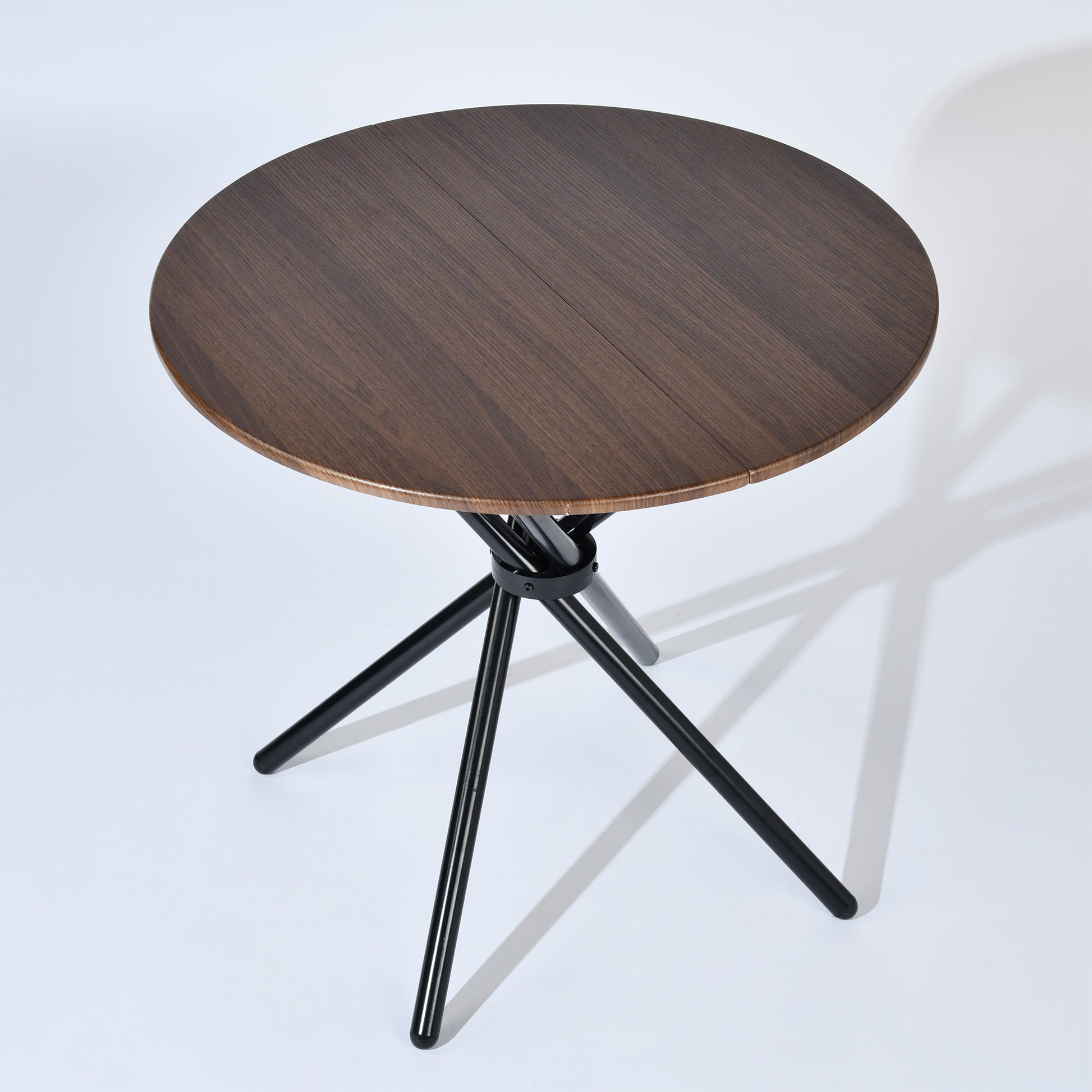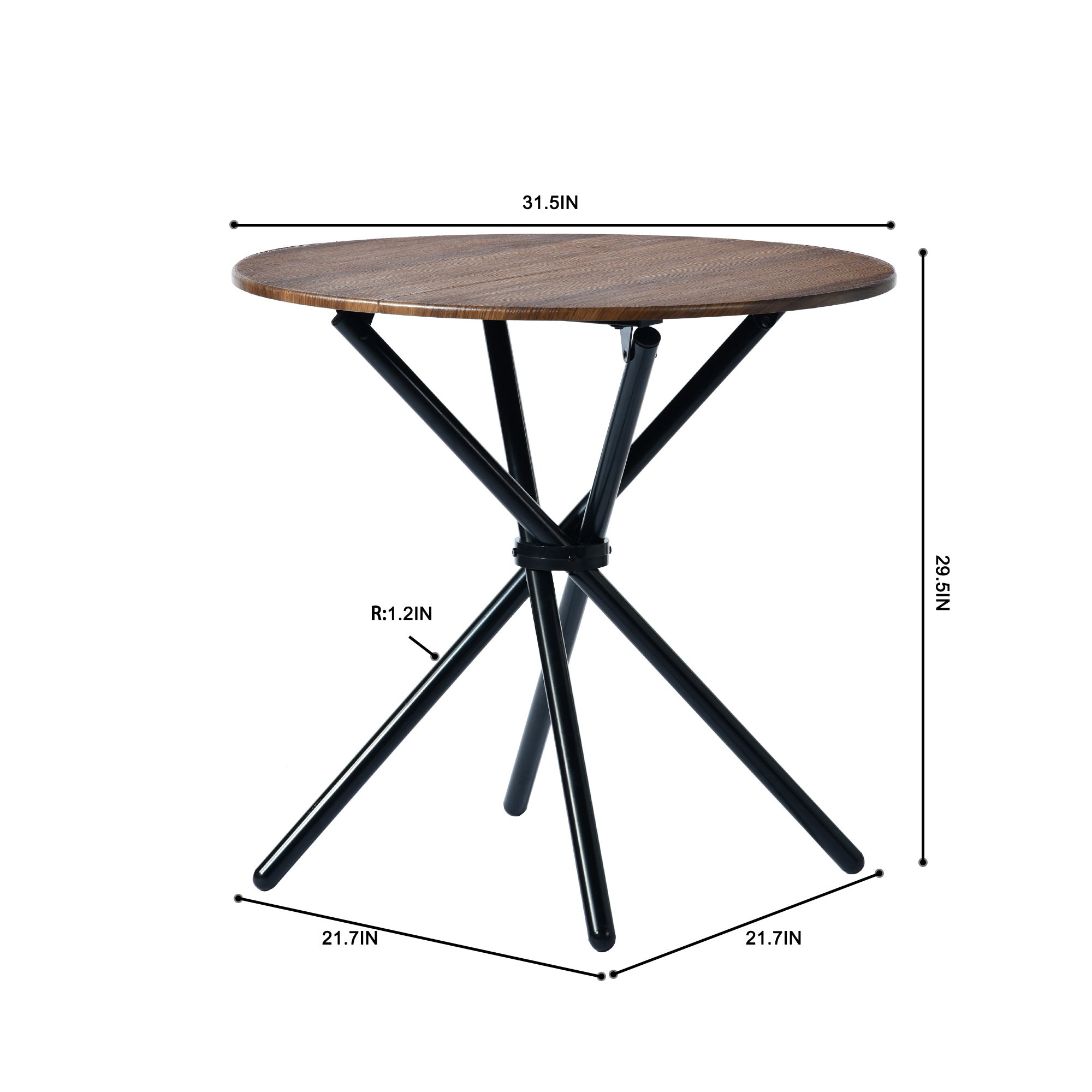A warm espresso round table paired with Charlton upholstered chairs in various finishes, ideal for cozy kitchens, apartments, and casual dining spaces.