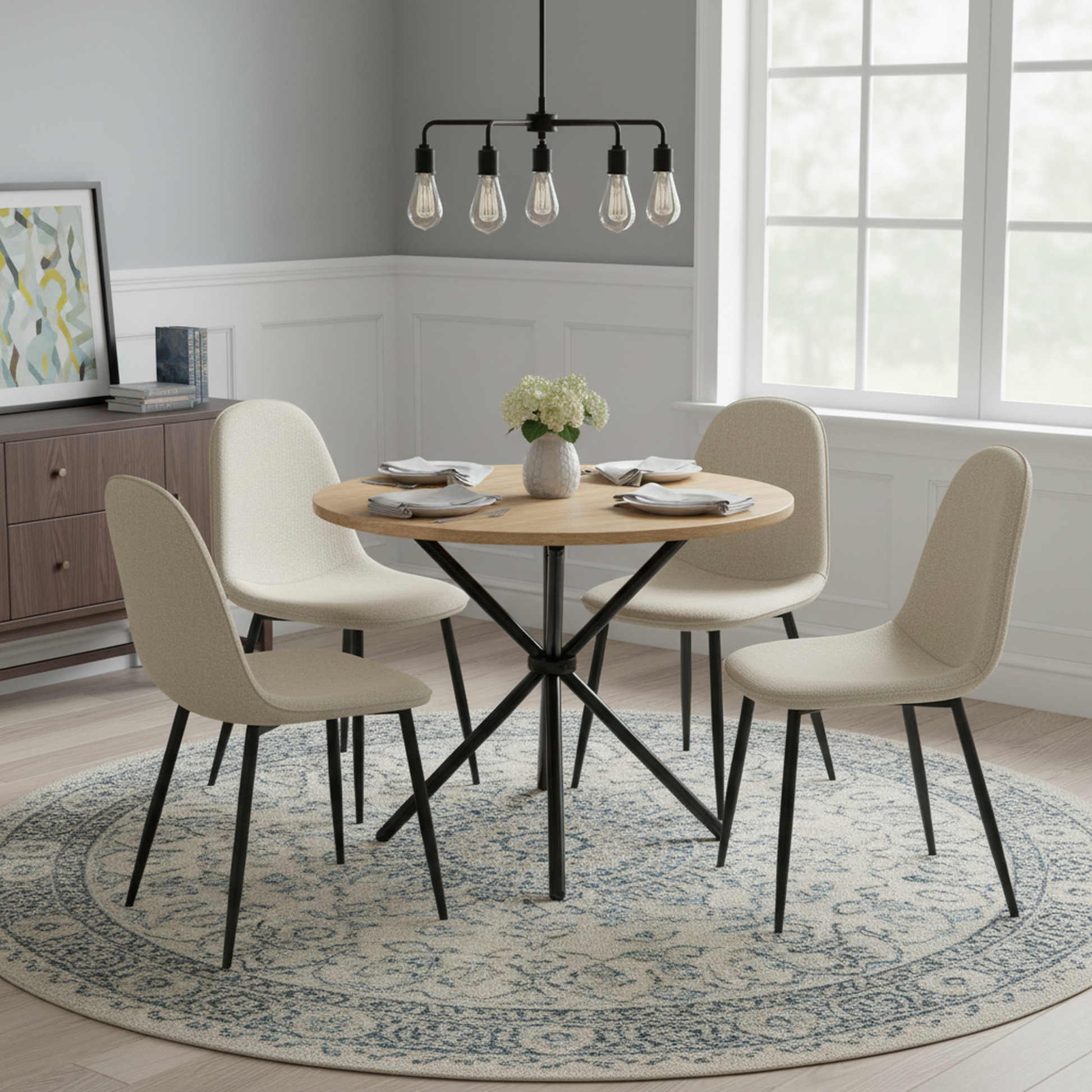 Fontana 5 Piece Oak Dining Table Set with 4 Charlton Upholstered Chairs