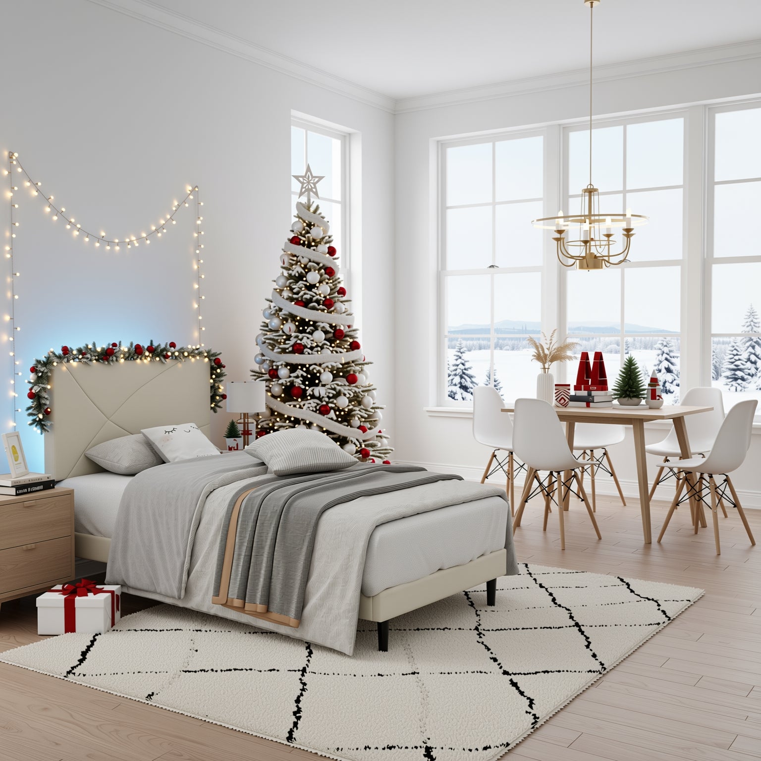 Modern style meets smart functionality in the Foothill upholstered platform bed. Featuring a sleek geometric headboard, USB and Type-C charging ports, and ambient RGB lighting, it’s a perfect blend of comfort, tech, and design for today’s bedrooms.