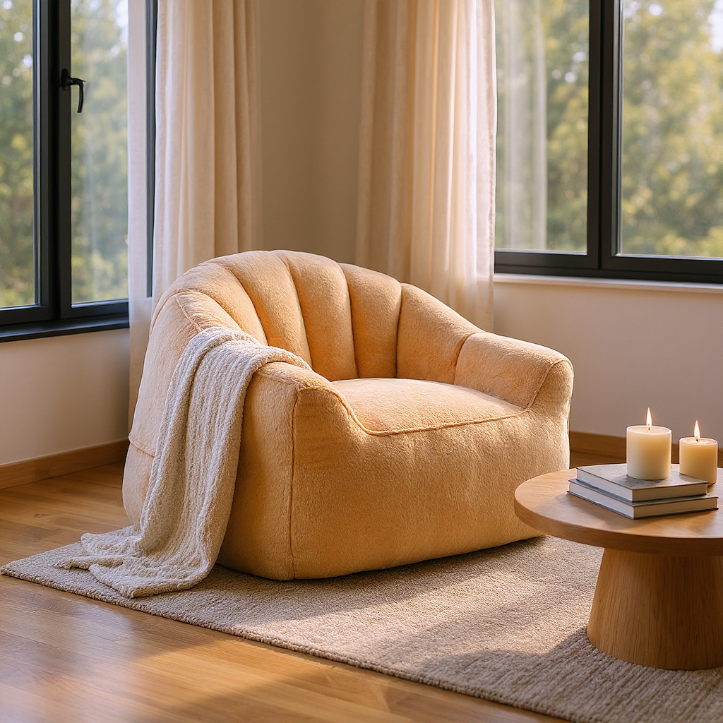 Plush teddy lounge chair for reading and relaxing. Generous 41.4 x 35 x 30.7 in size with 22 in seat depth and 17.7 in seat height for soft support at home.