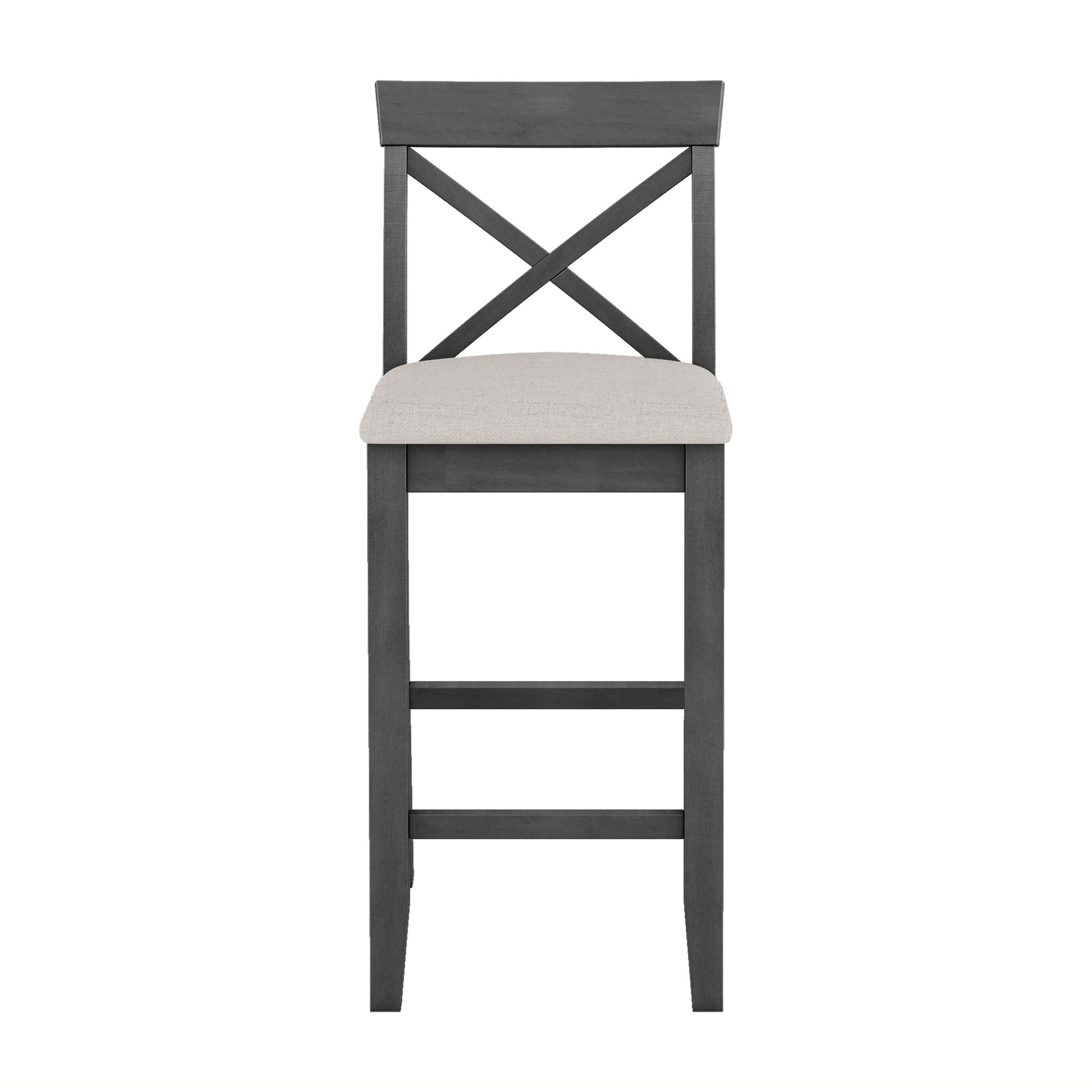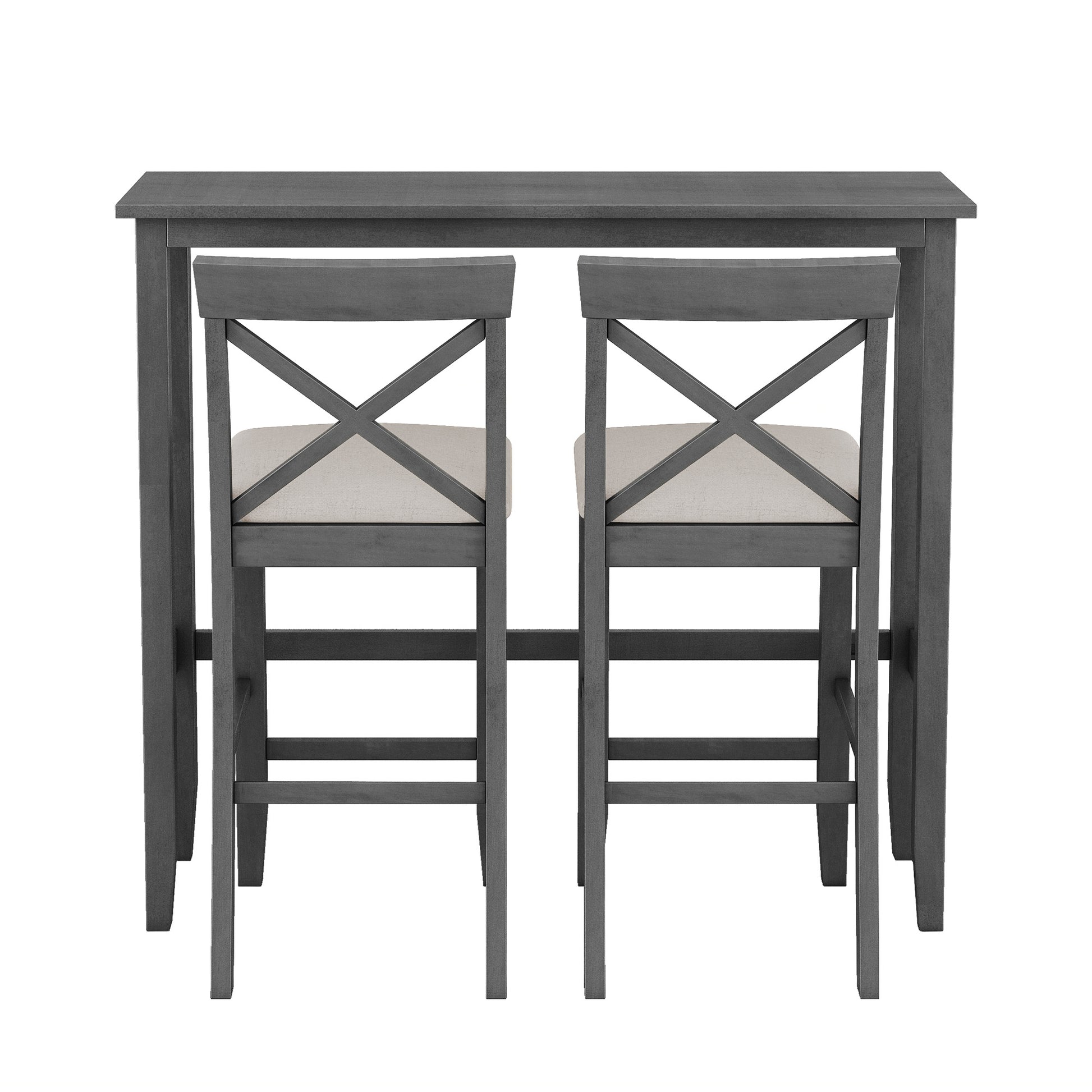Bring farmhouse charm and modern practicality to your home with the Harlow 3-piece bar height dining set. Crafted from solid acacia wood and MDF with an acacia veneer top, it includes a rectangular table and two upholstered bar chairs, perfect for cozy breakfasts, quick meals, or compact dining spaces.
