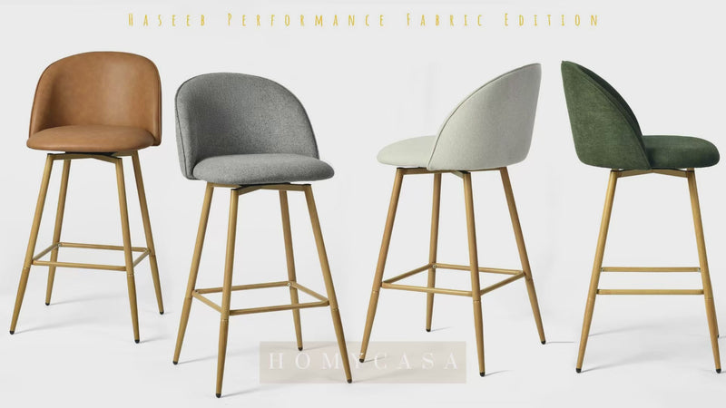 The HASEEB Performance Fabric Edition is designed for everyday counter seating where spills and little messes can happen. This upgraded upholstery helps resist spills and everyday stains, making quick wipe-downs easier while keeping a clean, elevated look. Curved back support, plush foam cushioning, and smooth 360°swivel bring comfort and effortless function to kitchen islands, breakfast bars, and modern dining nooks.