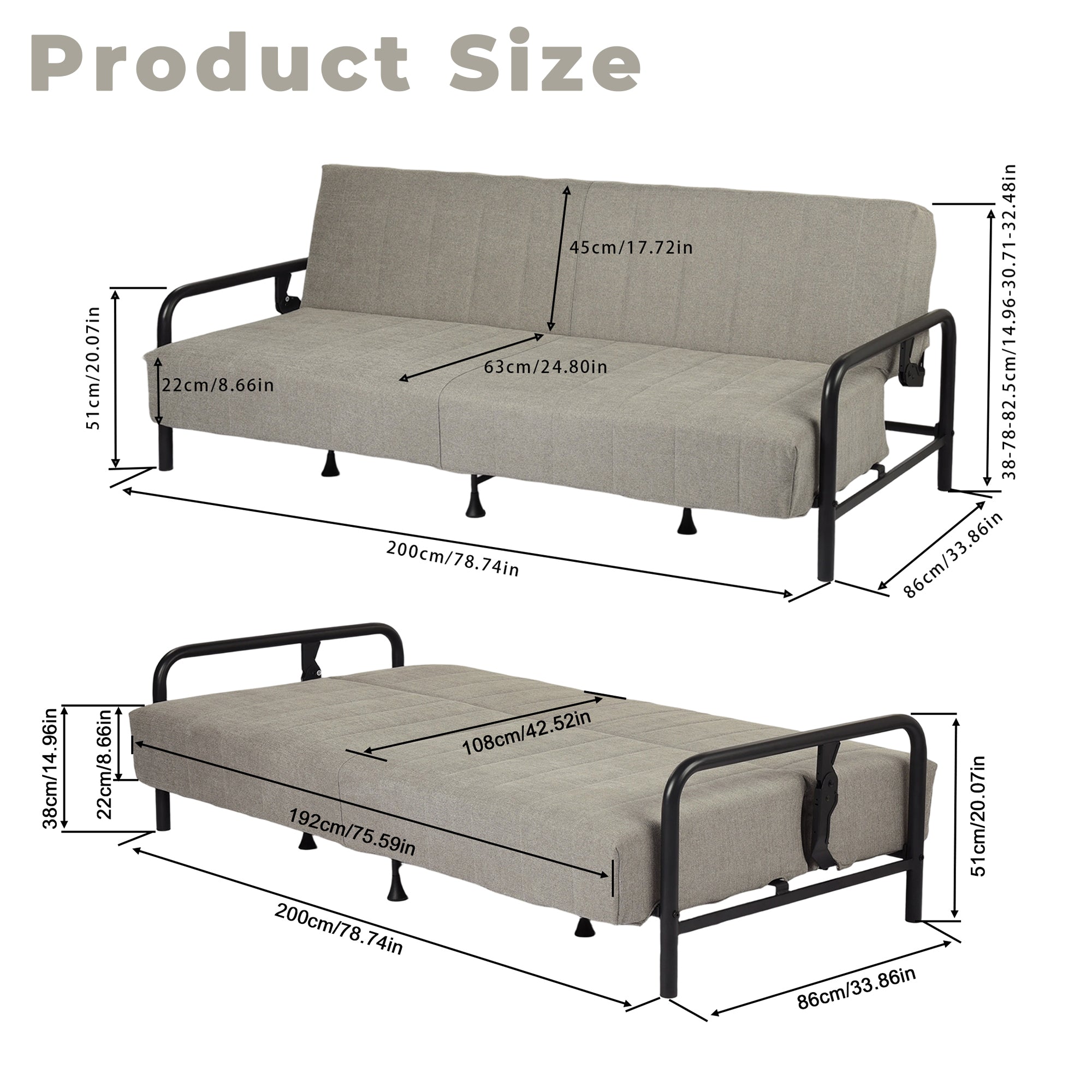【Convertible Sofa Bed】Quick fold design switches easily between sofa and wide sleeper bed.