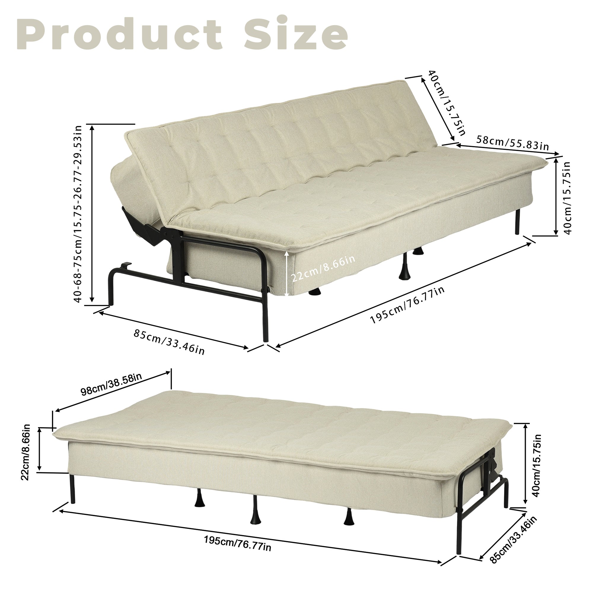 Independent spring units beneath each seat provide balanced support, pressure relief, and lasting comfort for both sitting and sleeping.