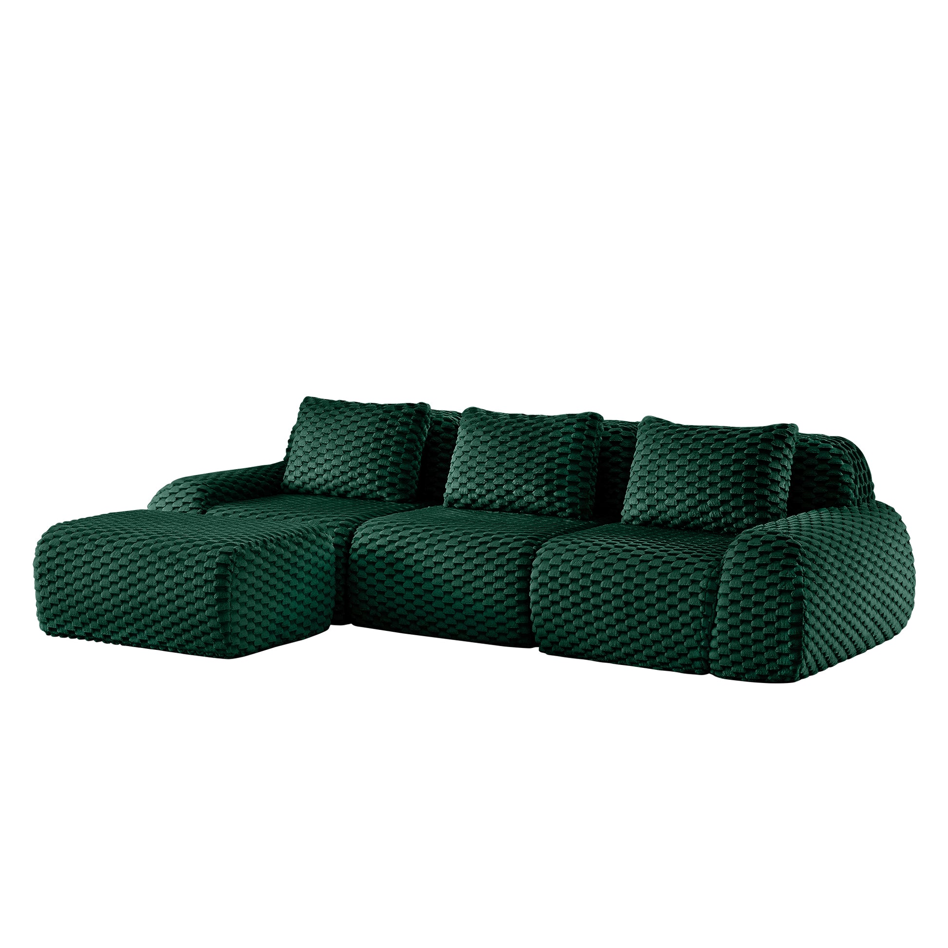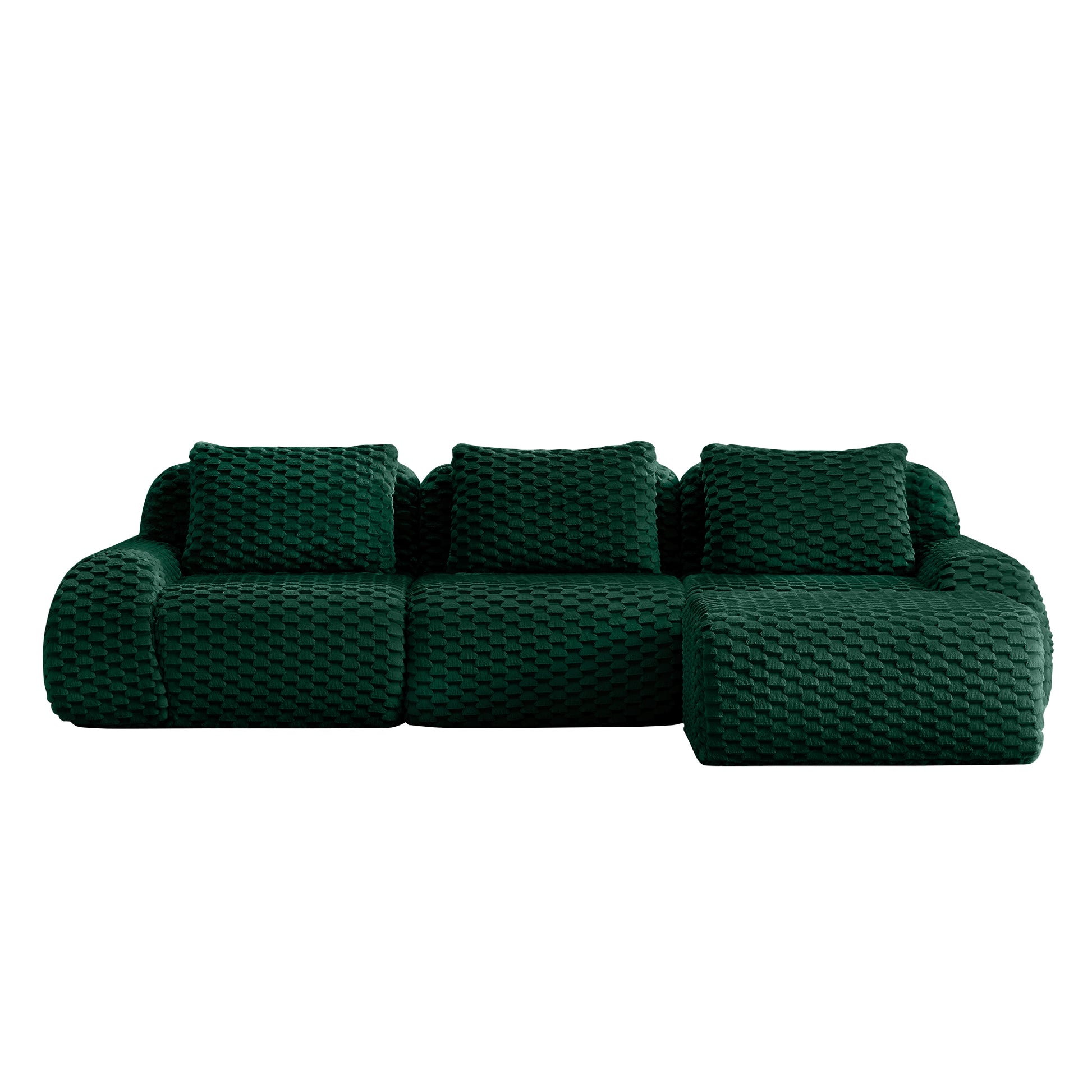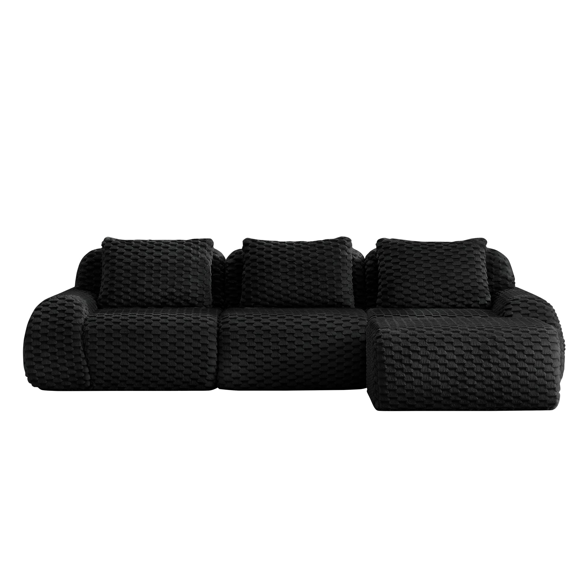 Olathe 114" Modular Flannelette Fabric L-Shaped Sectional Sofa with Movable Ottoman