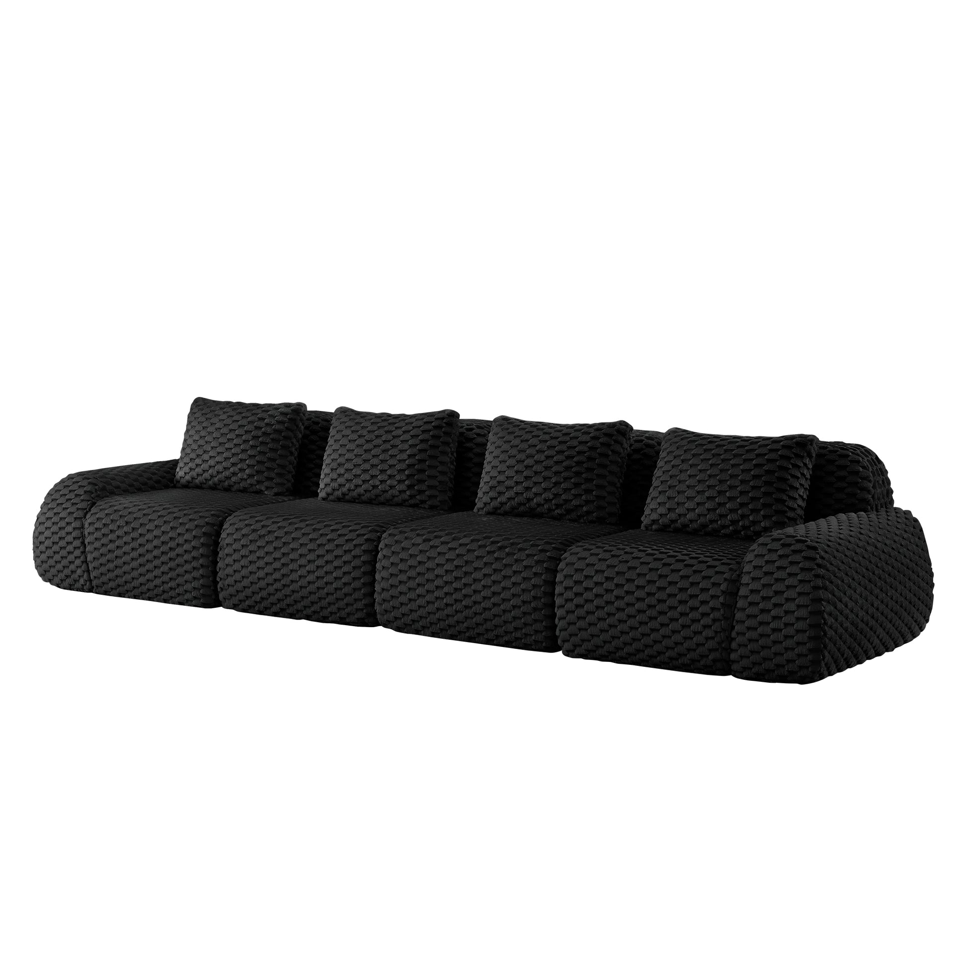 This modern modular sectional sofa features luxurious flannelette fabric, ergonomic deep seating, and a spacious four-seat design. Perfect for contemporary living rooms, it offers supportive comfort, stability, and effortless setup.